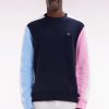 Ce sweatshirt zippé à col montant mise sur une construction tricolore équilibrée et des jeux de matières subtils. Le haut en molleton blanc cassé est rehaussé d’une bande rose pâle, tandis que le bas contraste en nylon marine, apportant structure et modernité. Se porte en sweatshirt comme en veste de mi-saison