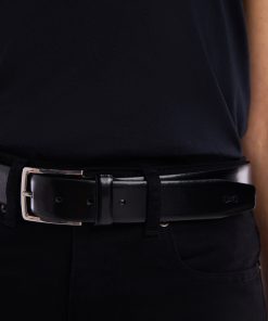 Eden Park Homme Accessoires Coffret Ceinture En Cuir Noire Et Deux Boucles En Métal Argenté