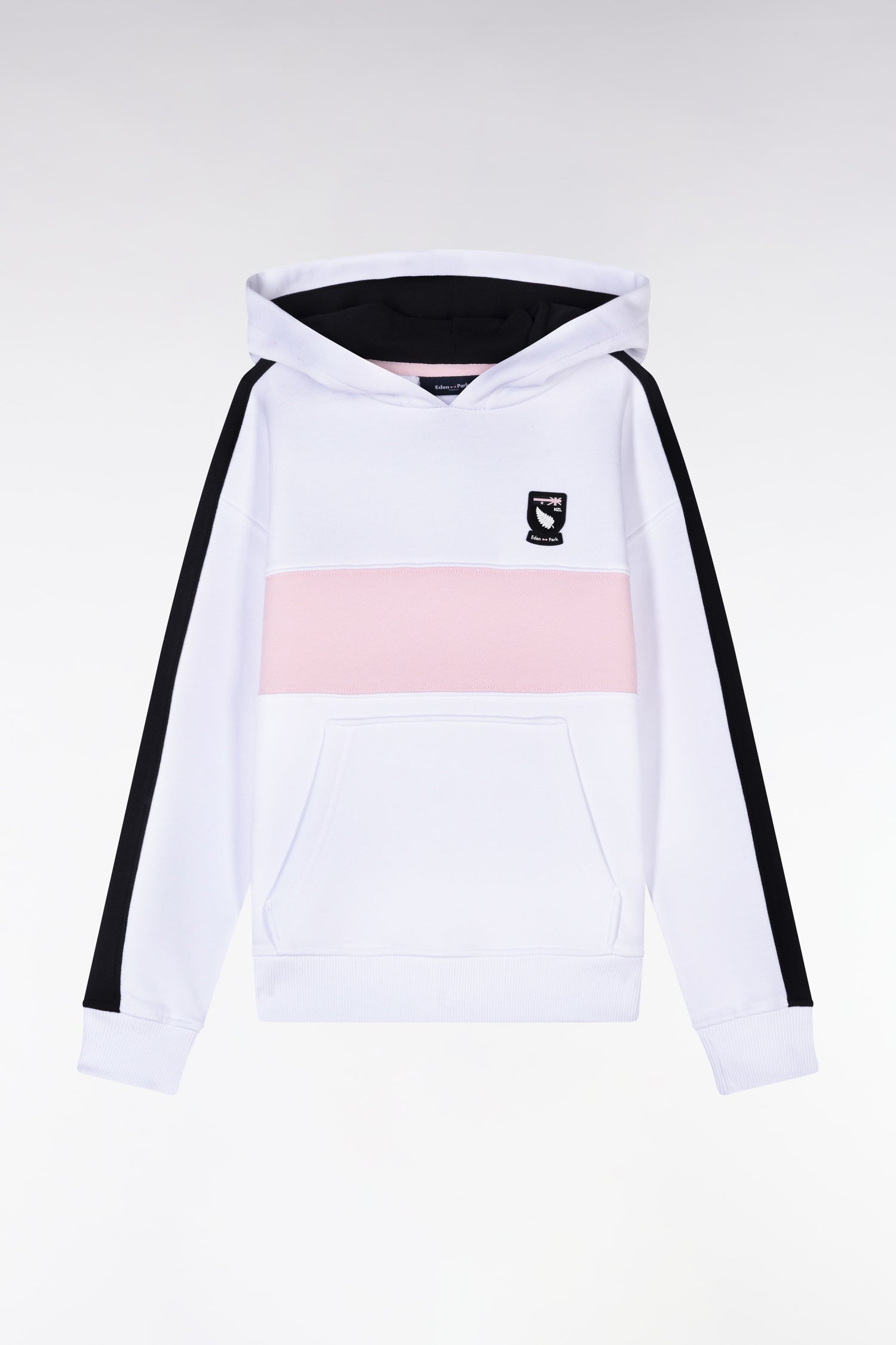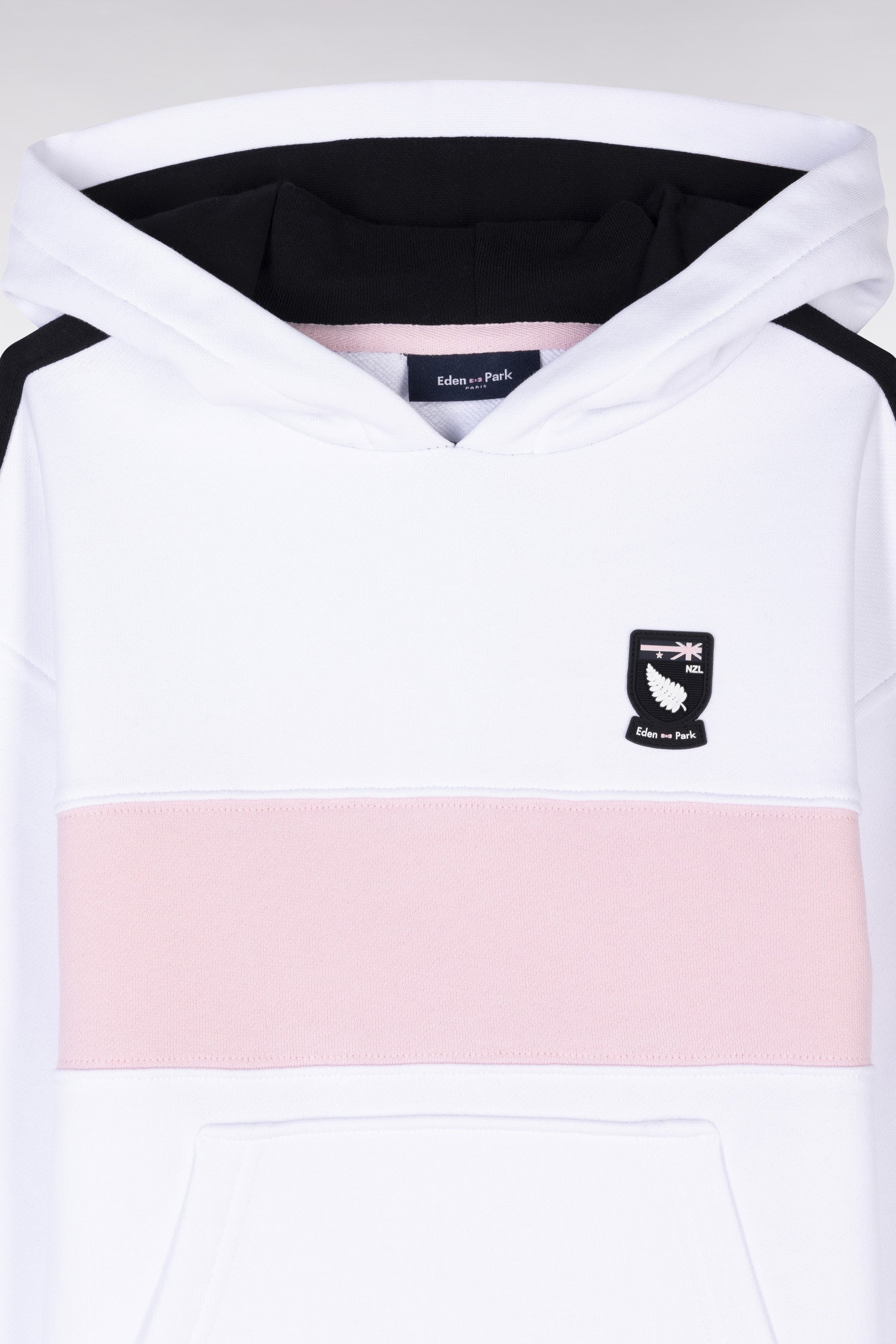 Hommage à l’héritage rugby Eden Park, ce sweatshirt enfant se distingue par sa bande rose contrastée sur fond blanc, ses détails noirs sur les manches, et l’inscription “New Zealand” au dos de sa capuche. Parfait pour les passionnés de rugby, quel que soit leur âge ?