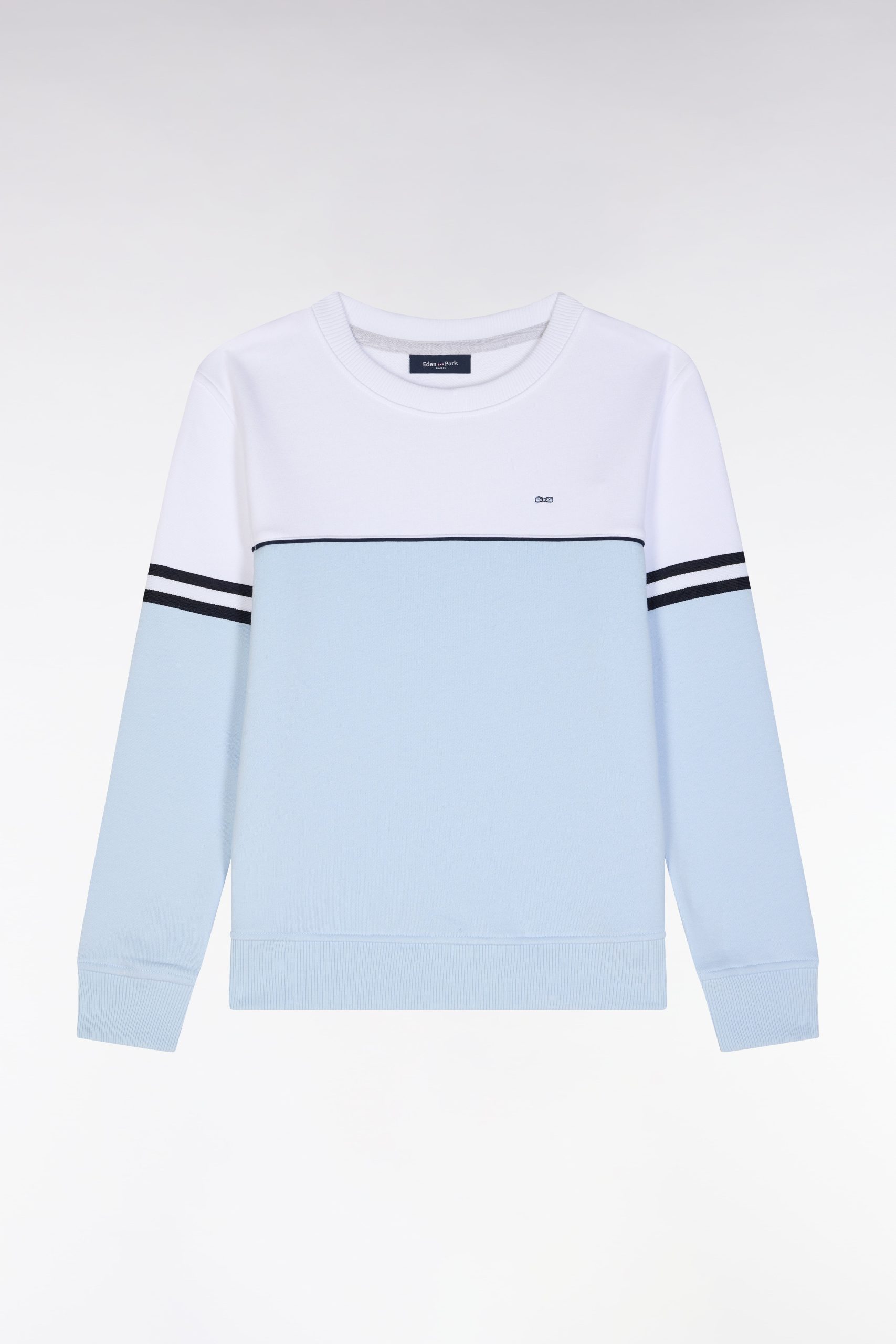 Ce sweatshirt pour enfant en molleton doux reprend les codes du vestiaire de l’adulte pour prêter aux plus petits la même élégance French Flair que leurs ainés. Ce modèle bicolore, offert en jaune solaire ou en bleu ciel, est mis en valeur par ses détails de passepoils et rayures contrastés.