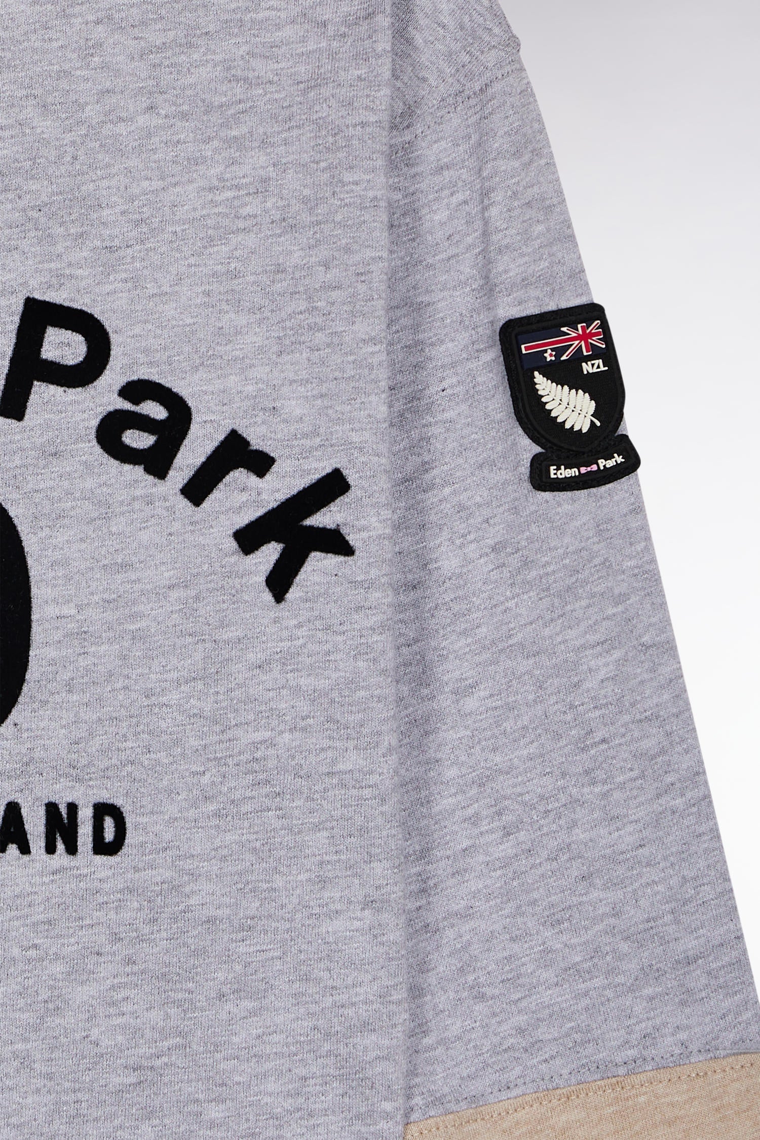 Ce T-shirt à manches longues en coton est pensé comme un vrai jeu de style pour les plus jeunes. Les manches camel contrastent avec le corps gris pour un effet de superposition dynamique. Un logo Eden Park hommage à la Nouvelle Zélande à effet velours anime le devant, tandis qu’un badge Nouvelle-Zélande vient signer sa manche