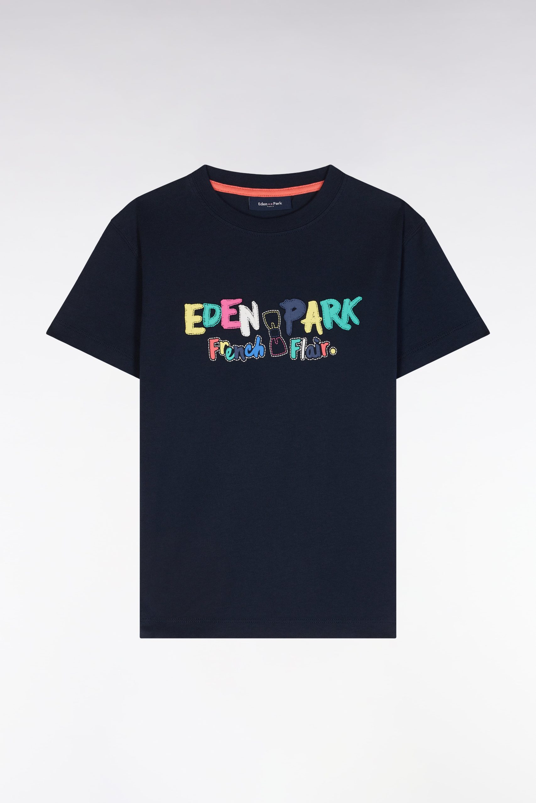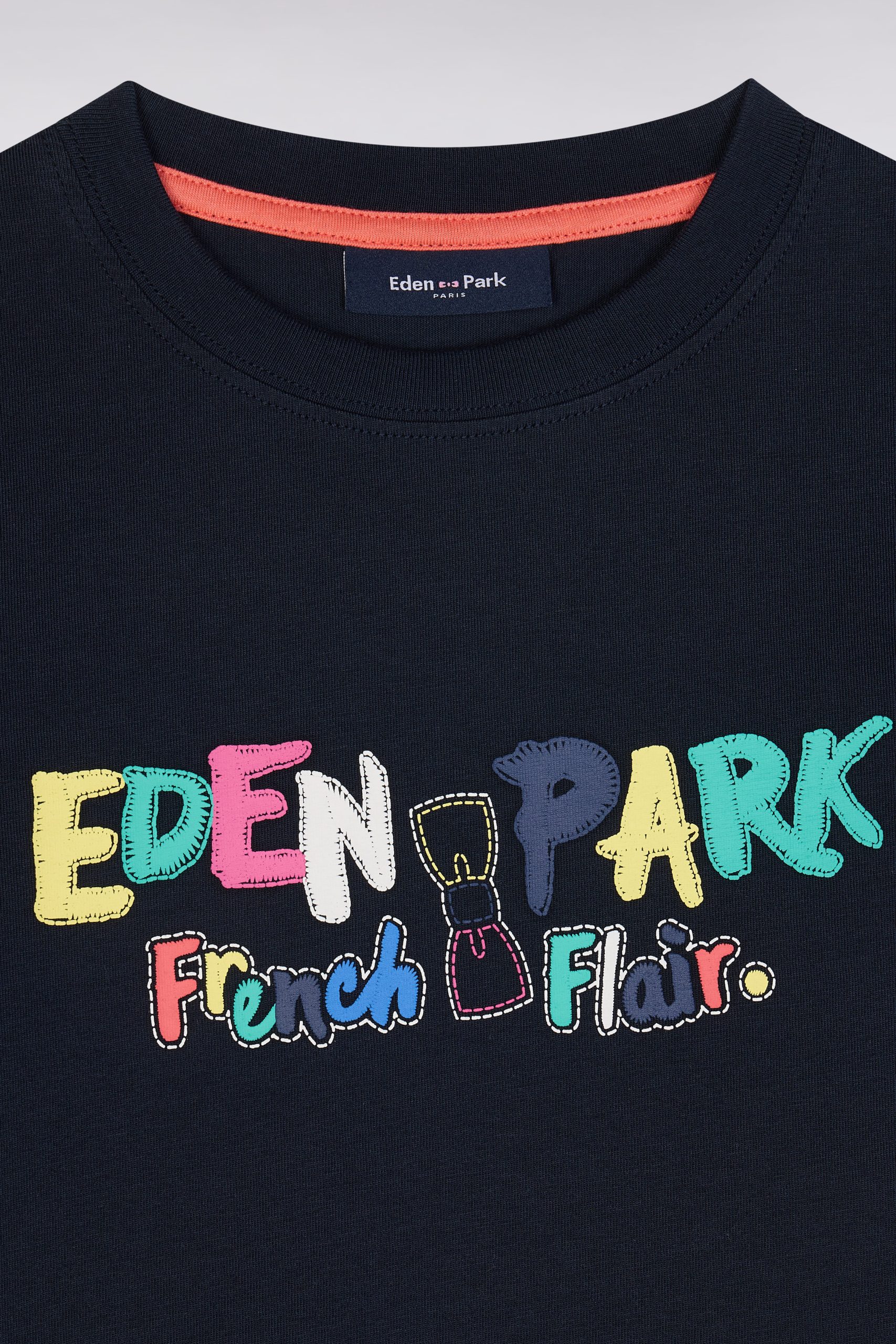 Apportez une touche ludique et colorée aux tenues estivales de vos enfants avec ce T-shirt marine en coton doux. Sa sérigraphie multicolore exclusive à la Maison, réinvente l’esprit rugby avec un style résolument pop et moderne. Un essentiel confortable et vibrant pour l’été.