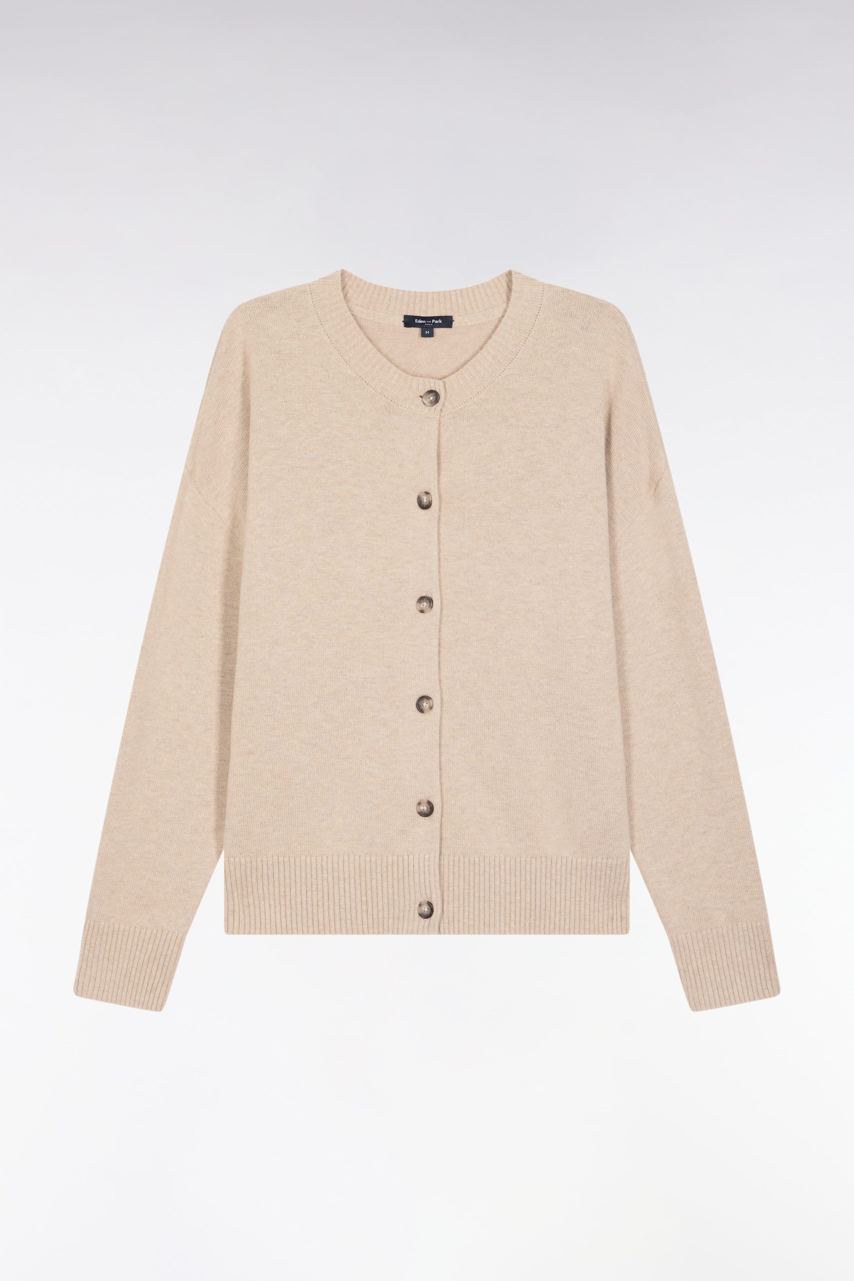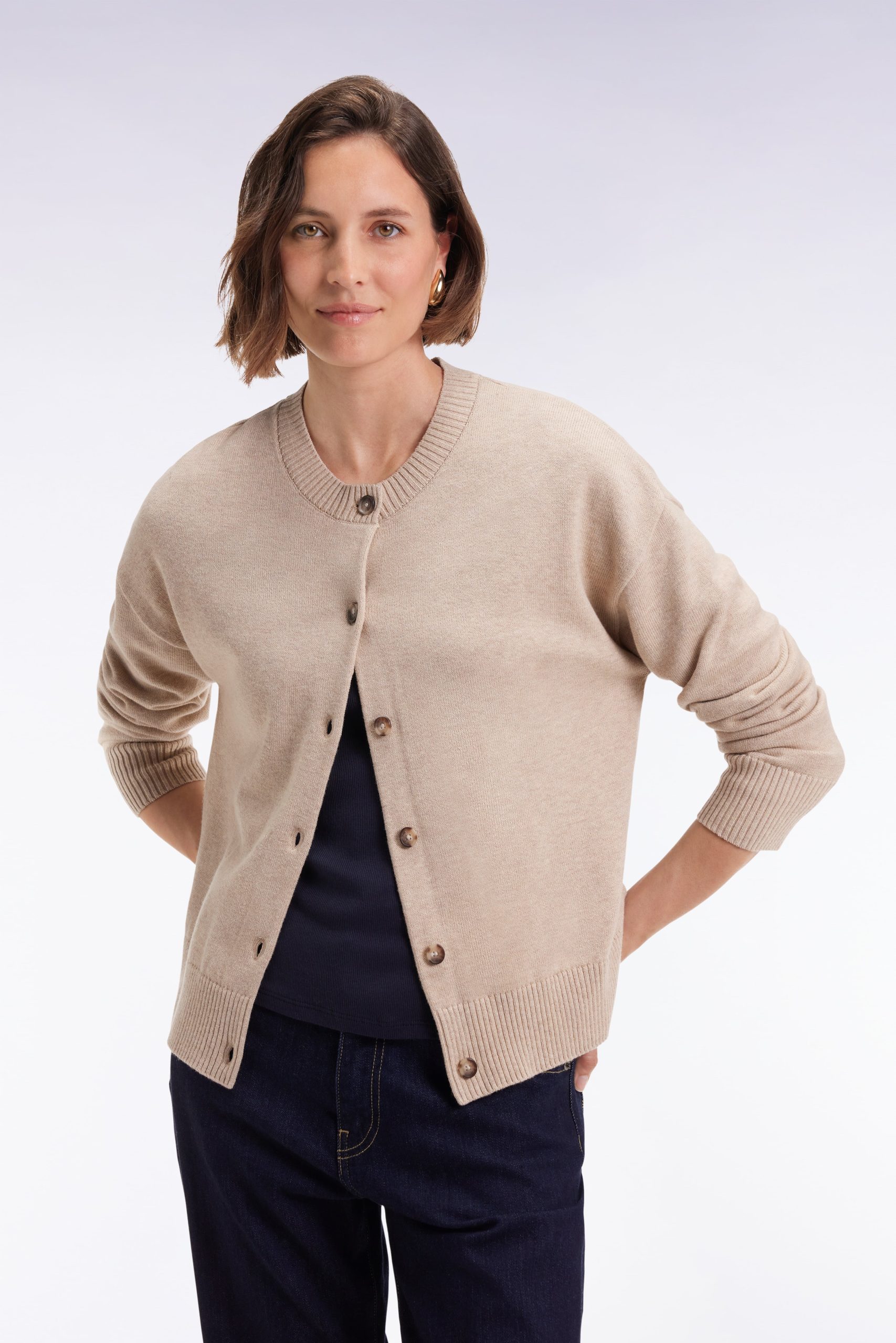 Craquez pour l’alliance de douceur et d’élégance caractérisant ce cardigan à col rond, mêlant laine et coton dans une maille fine au charme discret. Le nœud papillon brodé et les finitions en bord-côtes de ce cardigan épuré soulignent son élégance intemporelle. Un must-have offert en marine ou en beige dans une coupe légèrement ample