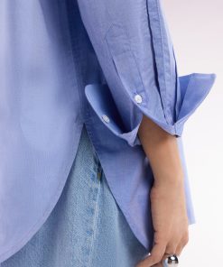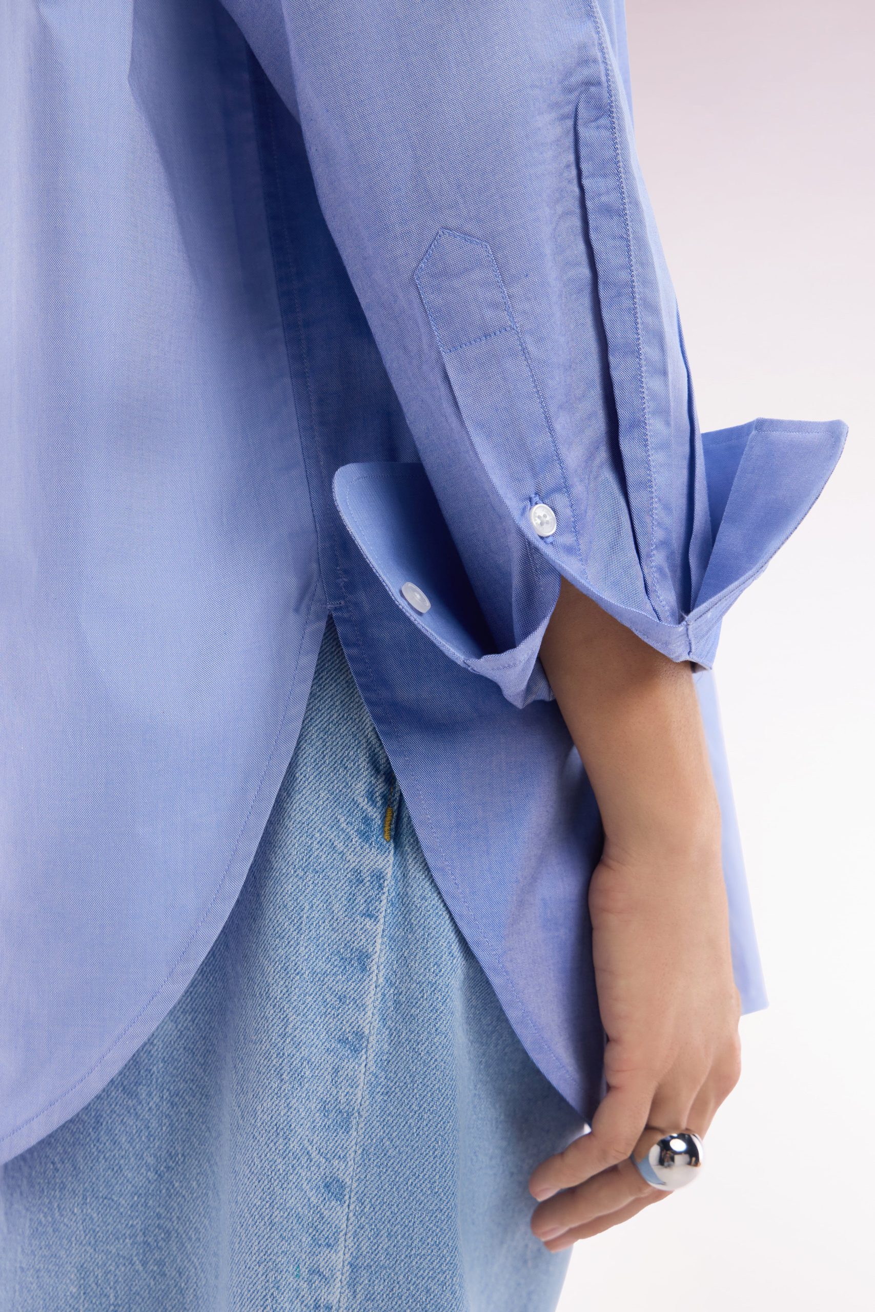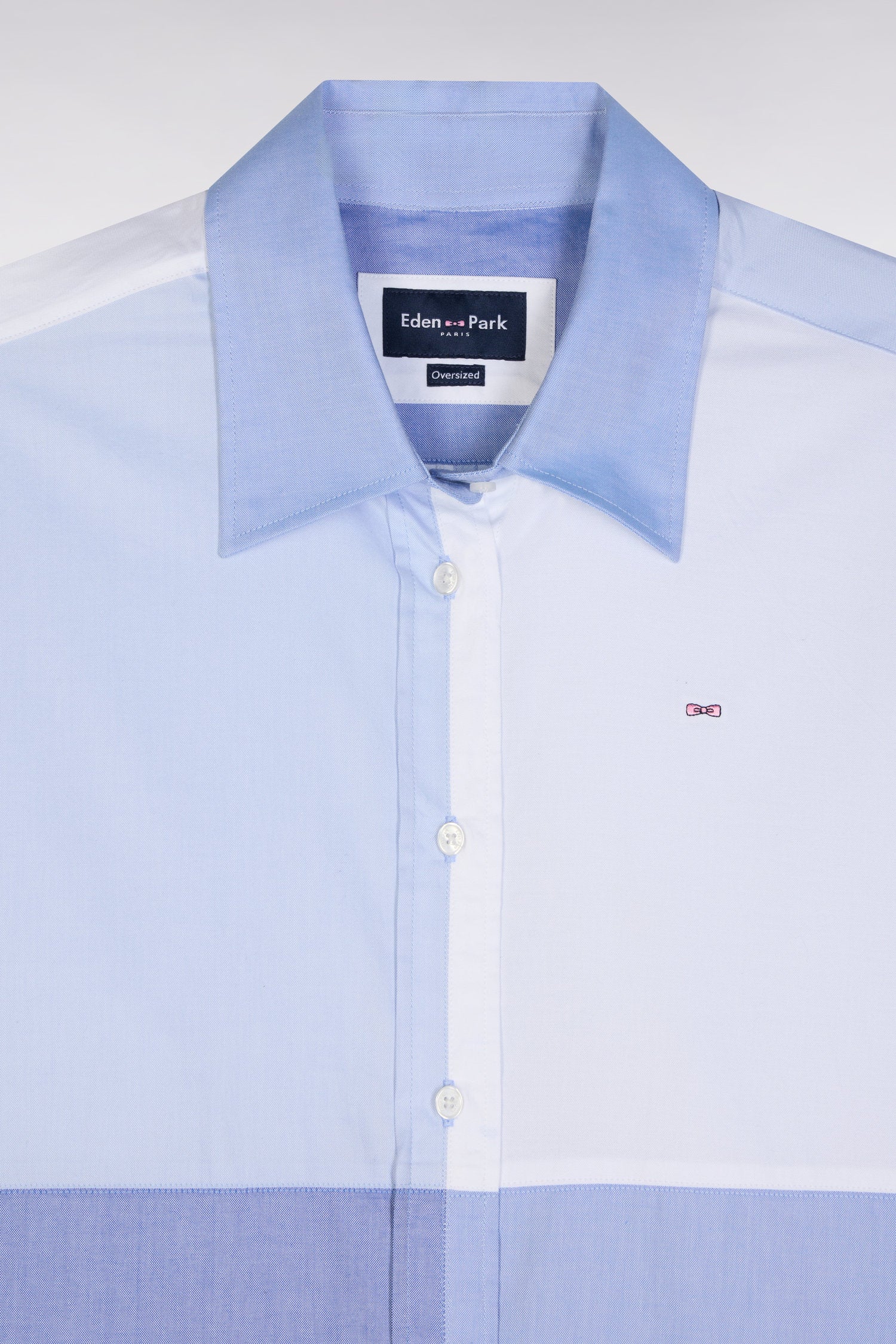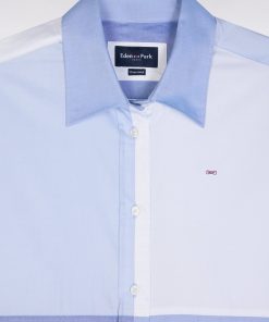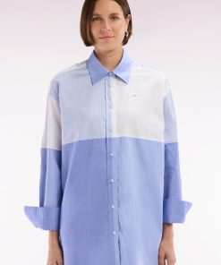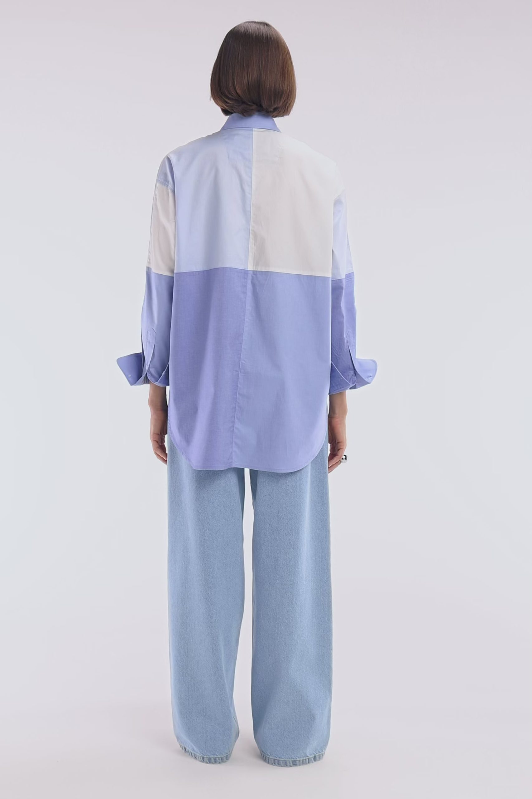 Adoptez une allure moderne et audacieuse avec cette chemise en popeline de coton. Sa coupe oversized et son design colorblock patché en dégradé de bleus façon maillot coupé-cousu en font une pièce unique et tendance. Idéale pour une silhouette affirmée, elle s’associe aussi bien à un jean qu’à un pantalon fluide.