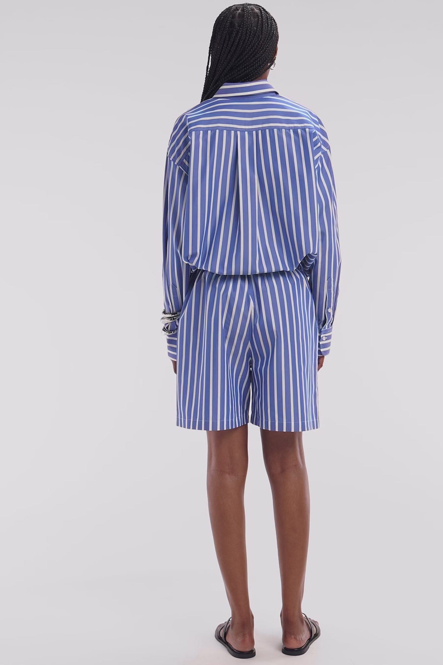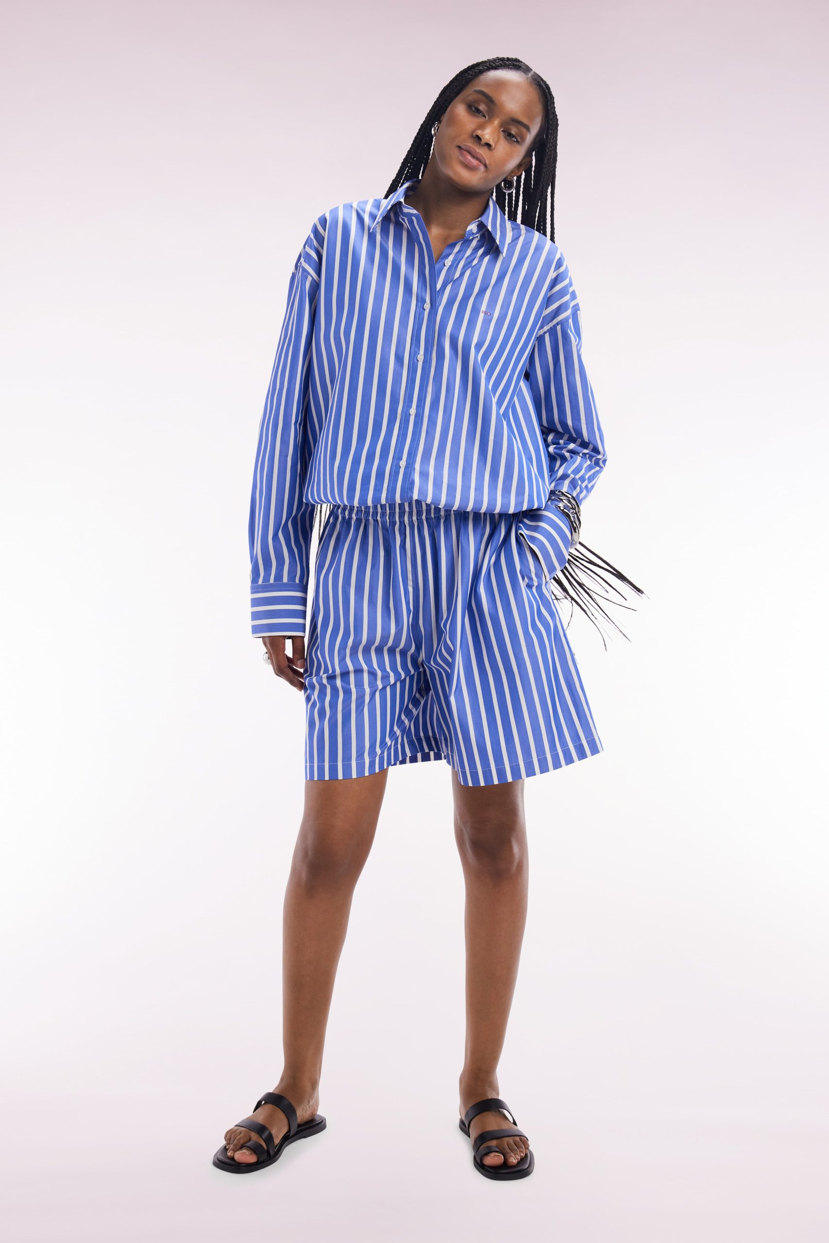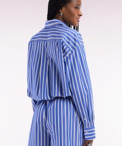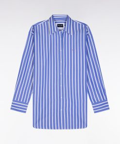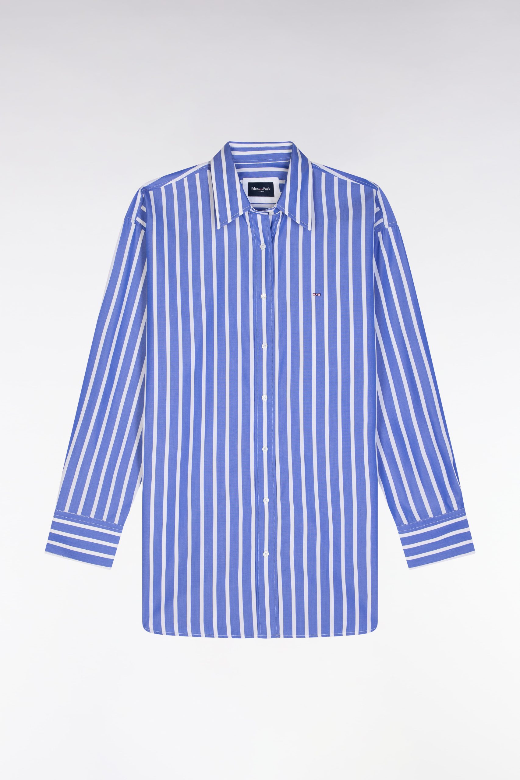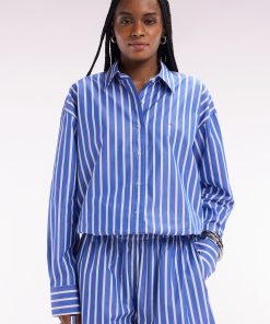 Optez pour un style graphique et raffiné avec cette chemise en coton bleu aux rayures blanches. Sa coupe droite et légèrement ample garantit un confort absolu tout en conservant une allure élégante. Le col classique et les boutons ovales siglés Eden Park ajoutent une finition soignée, tandis que les rayures verticales allongent la silhouette. Portez-la seule avec un jean pour une tenue chic et décontractée, ou associez-la au short rayé assorti pour un look coordonné affirmant l’esthétique sport-chic de nos collections. Cette chemise intemporelle est également disponible en version blanche à rayures bleues.