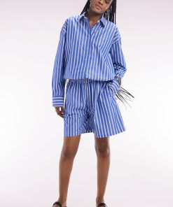 Optez pour un style graphique et raffiné avec cette chemise en coton bleu aux rayures blanches. Sa coupe droite et légèrement ample garantit un confort absolu tout en conservant une allure élégante. Le col classique et les boutons ovales siglés Eden Park ajoutent une finition soignée, tandis que les rayures verticales allongent la silhouette. Portez-la seule avec un jean pour une tenue chic et décontractée, ou associez-la au short rayé assorti pour un look coordonné affirmant l’esthétique sport-chic de nos collections. Cette chemise intemporelle est également disponible en version blanche à rayures bleues.