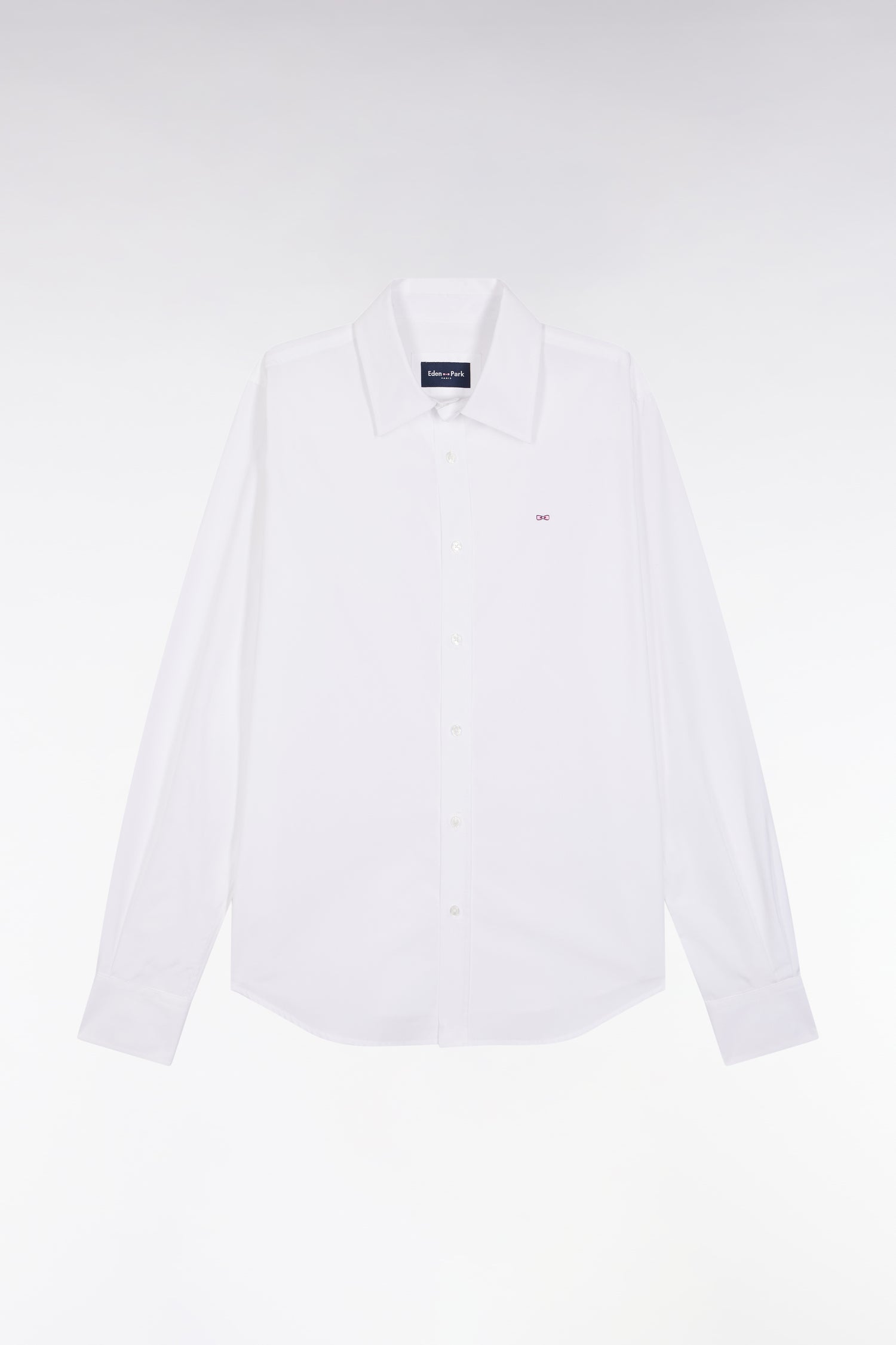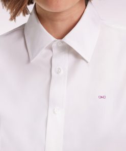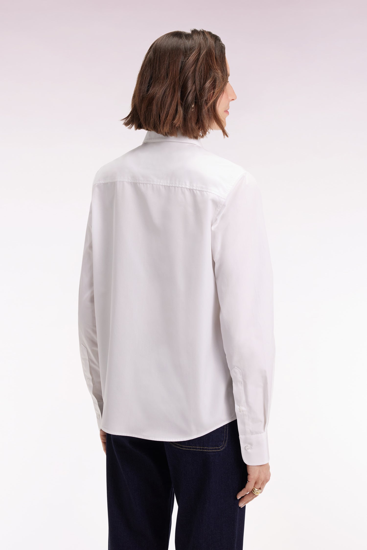L’intemporelle chemise en coton blanc adopte une coupe slim seyante pour un porté féminin flatteur. Cette chemise femme arbore les finitions typiques du vestiaire Eden Park, de sa broderie nœud papillon à sa patte de boutonnage dotées de boutons ovales siglés, rappel subtil de la forme d’un ballon de rugby