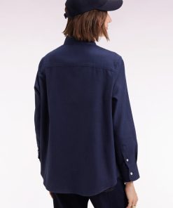 Cette chemise femme en popeline de coton marine ou écru adopte une coupe Relaxed légèrement ample et deux poches plaquées pour une allure résolument contemporaine. Une pièce intemporelle facile à mixer à votre vestiaire, entre chic épuré et décontraction maîtrisée