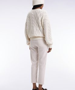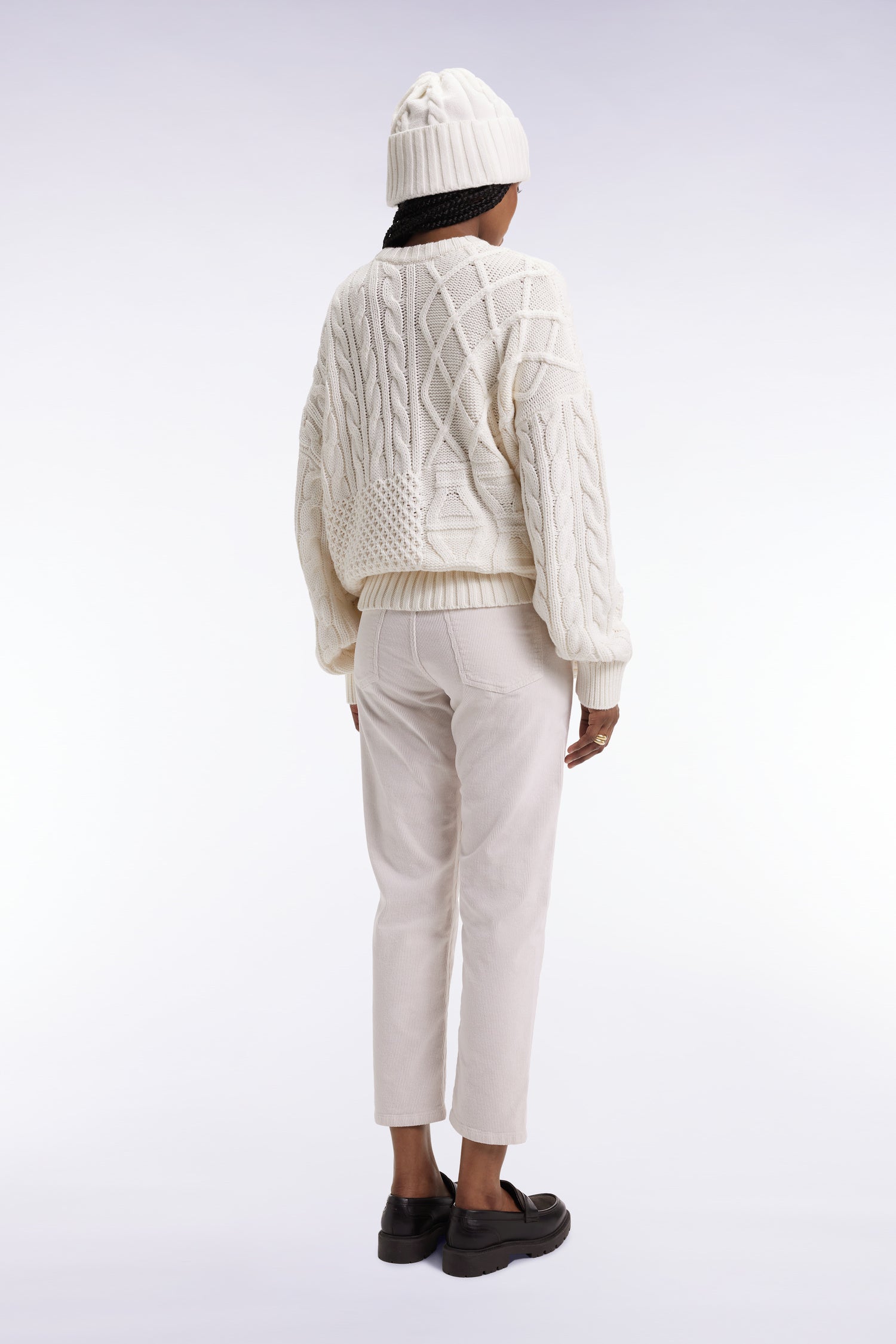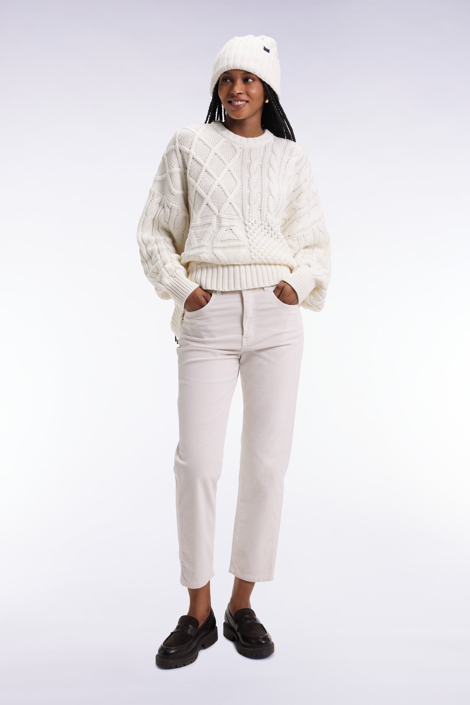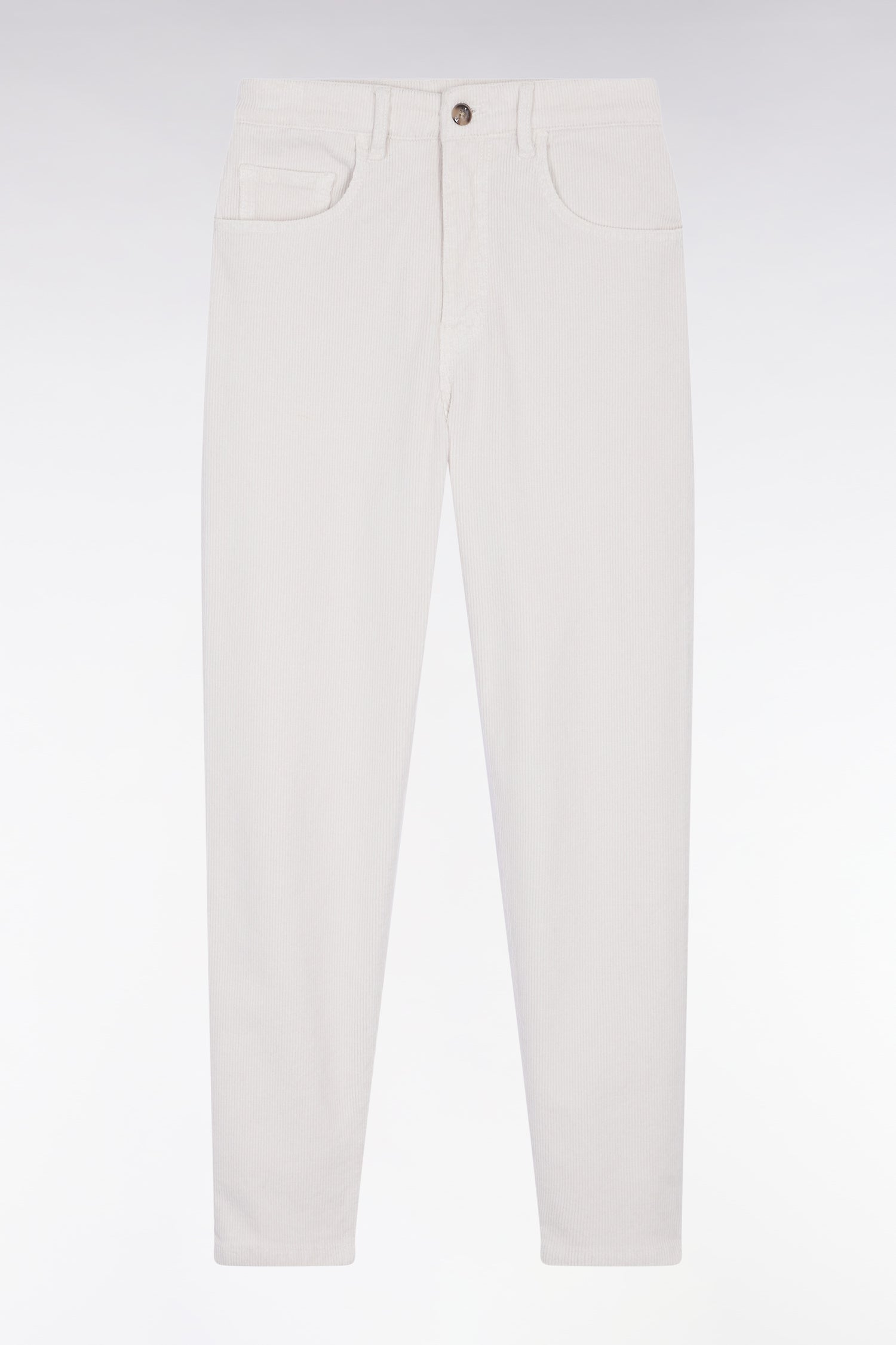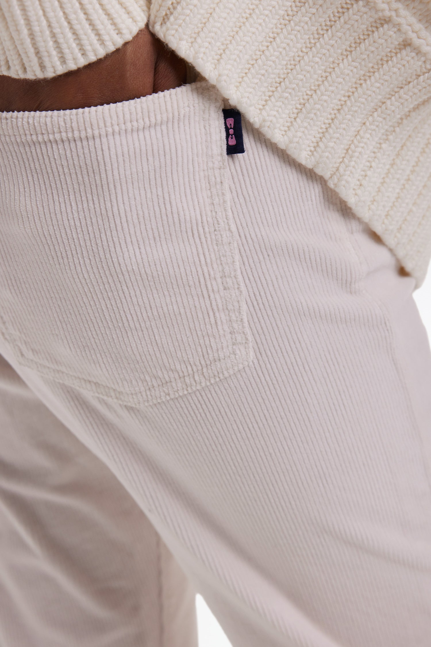 Alternative chic-décontractée au denim, ce pantalon 5 poches en velours côtelé se décline en écru ou noir pour une allure workwear tout en douceur. Sa longueur 7/8 et sa coupe ajustée en font une pièce facile à porter, idéale pour traverser l’automne-hiver avec style