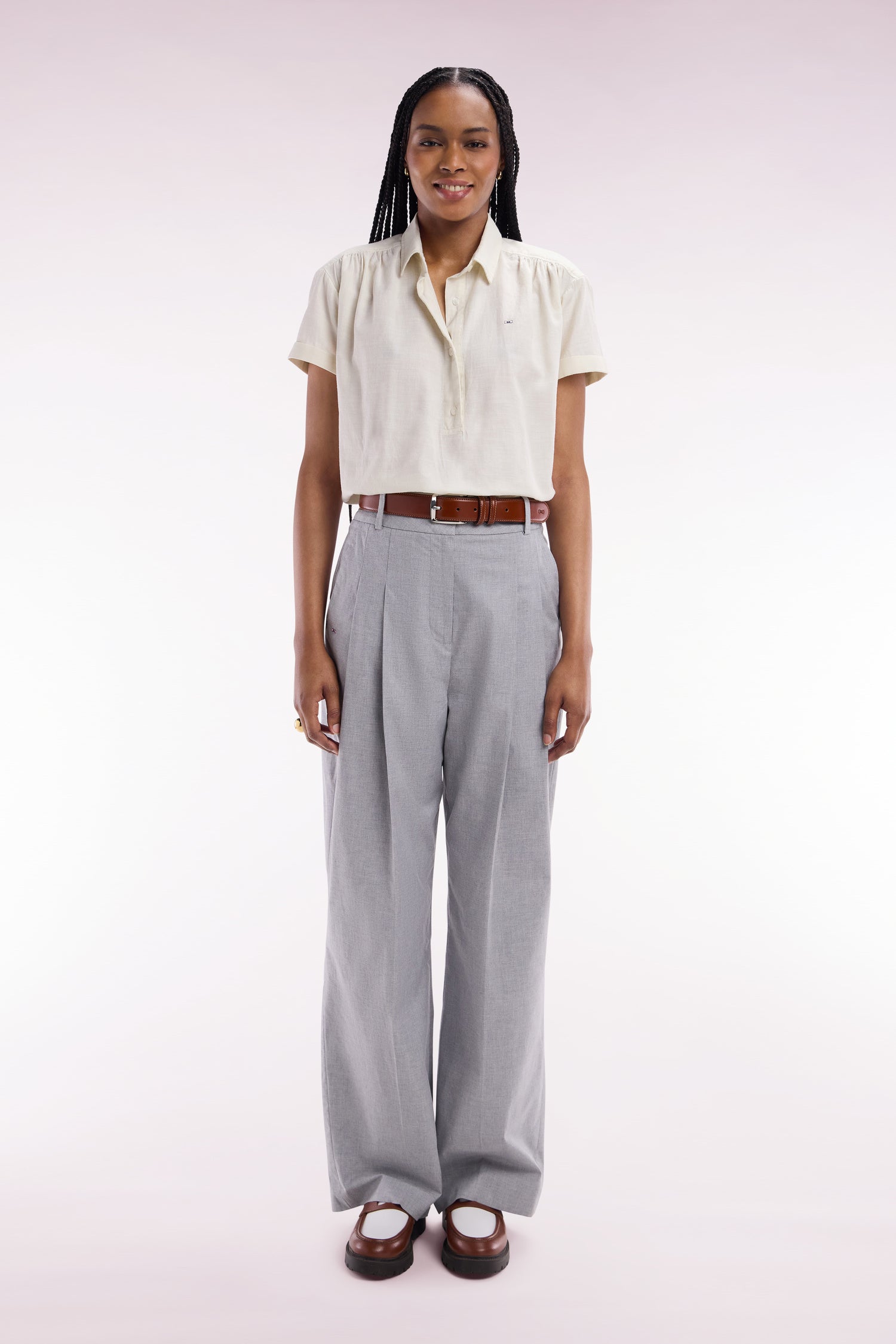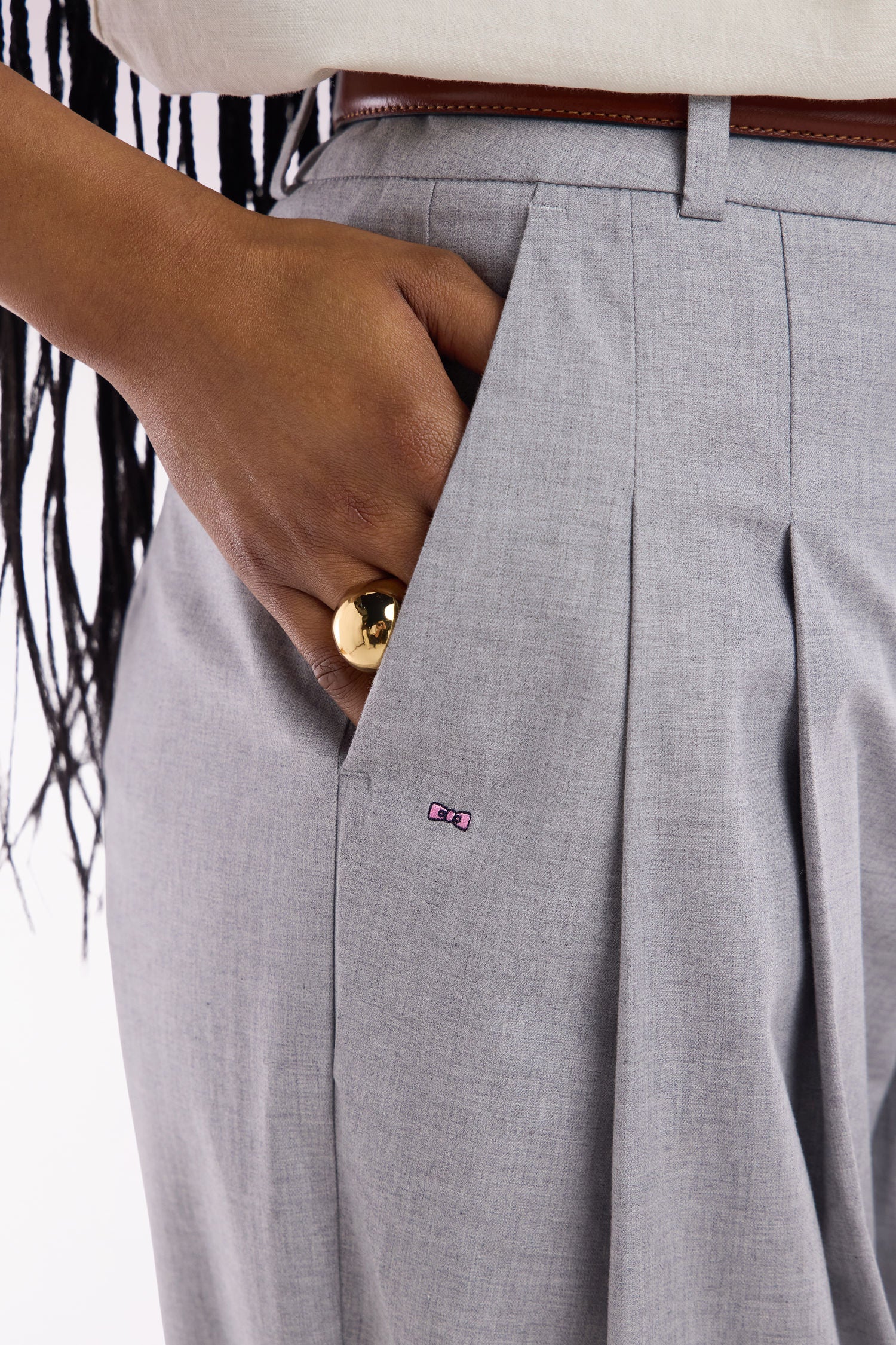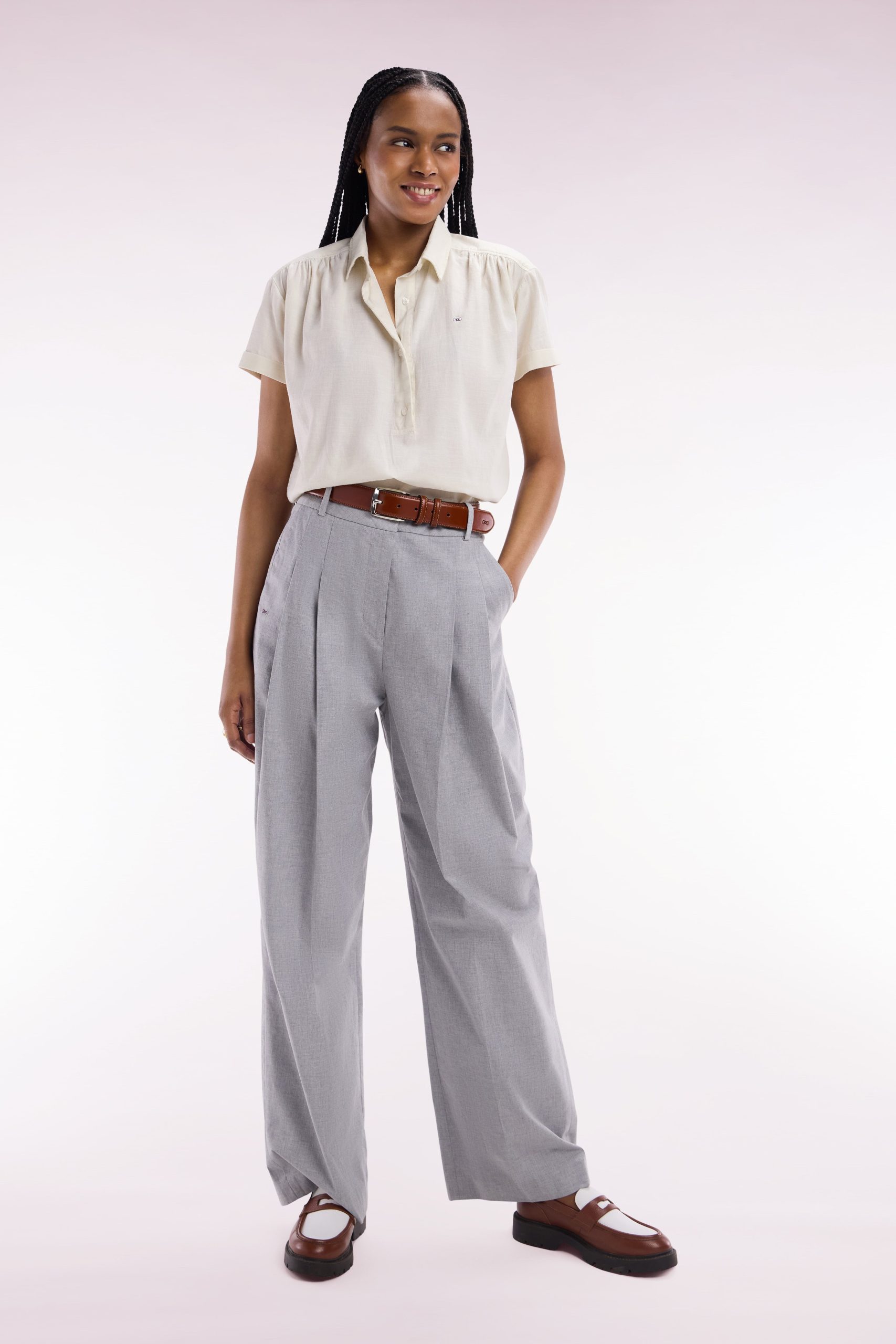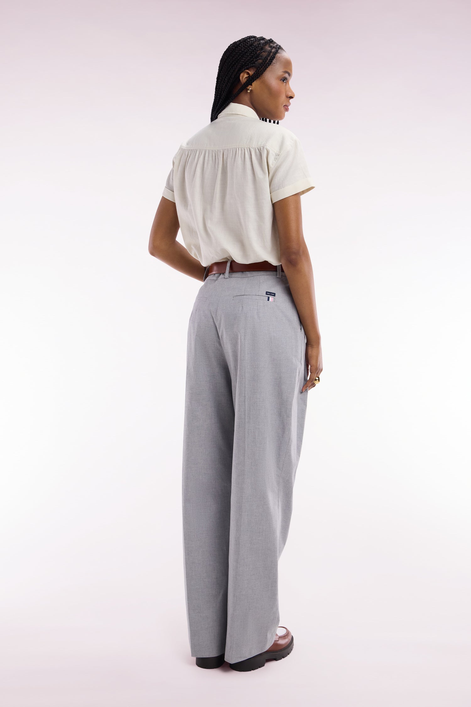 Adoptez une silhouette contemporaine avec ce pantalon oversized en coton stretch gris, pensé pour conjuguer confort et élégance. Sa coupe ample et fluide offre une allure décontractée tout en restant sophistiquée, parfaite pour une journée active ou une sortie chic. Les finitions soignées et la qualité des matériaux témoignent du savoir-faire de notre Maison. Associez ce pantalon à une chemise structurée pour un contraste de volumes ou à un top ajusté pour une silhouette parfaitement équilibrée. Une pièce polyvalente, idéale pour composer des tenues modernes et intemporelles.