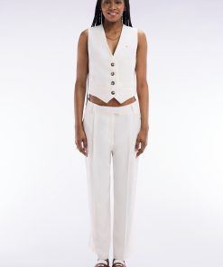 Eden Park Femme Men’s Pantalon À Jambes Larges Fluide Écru