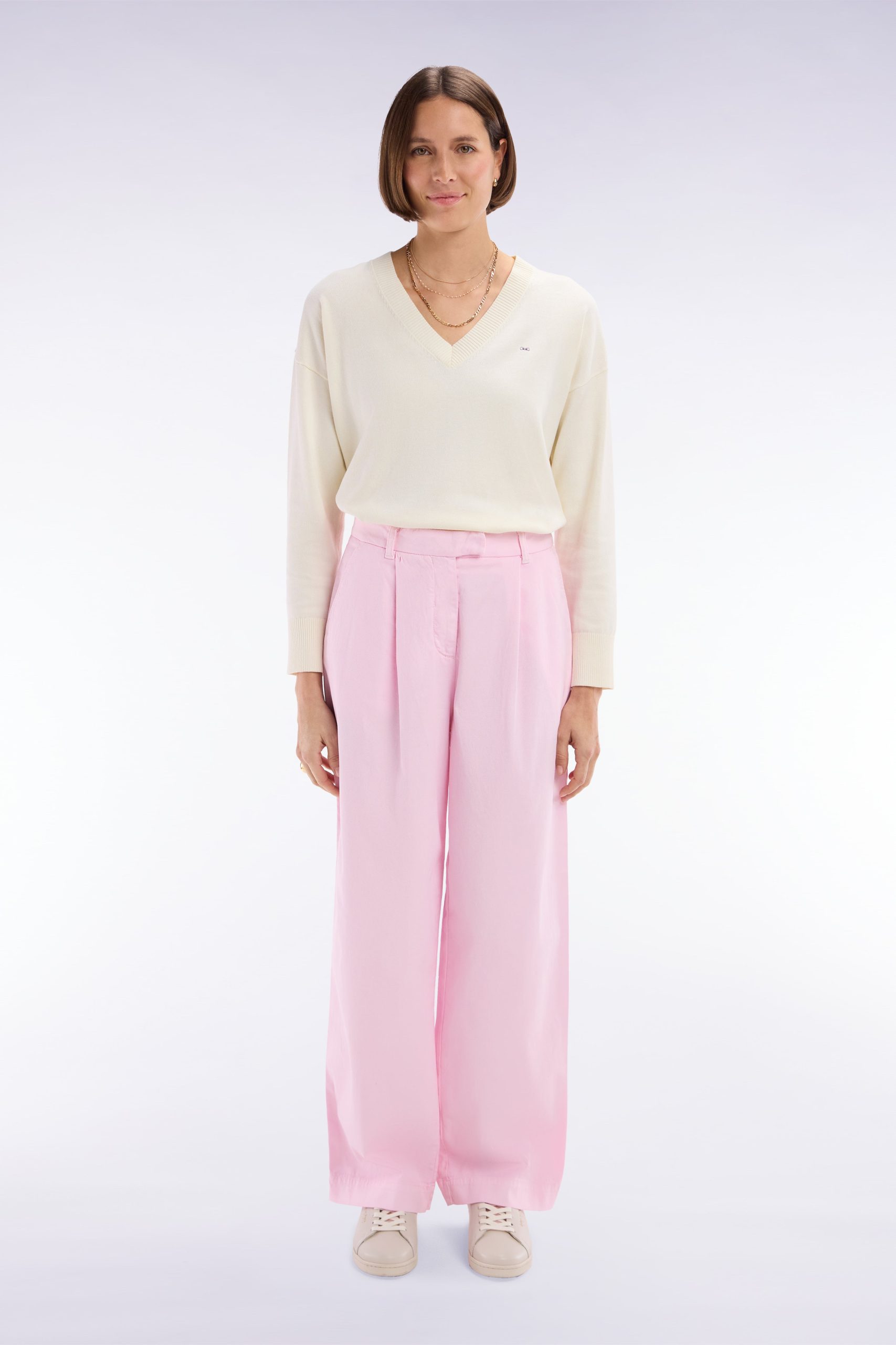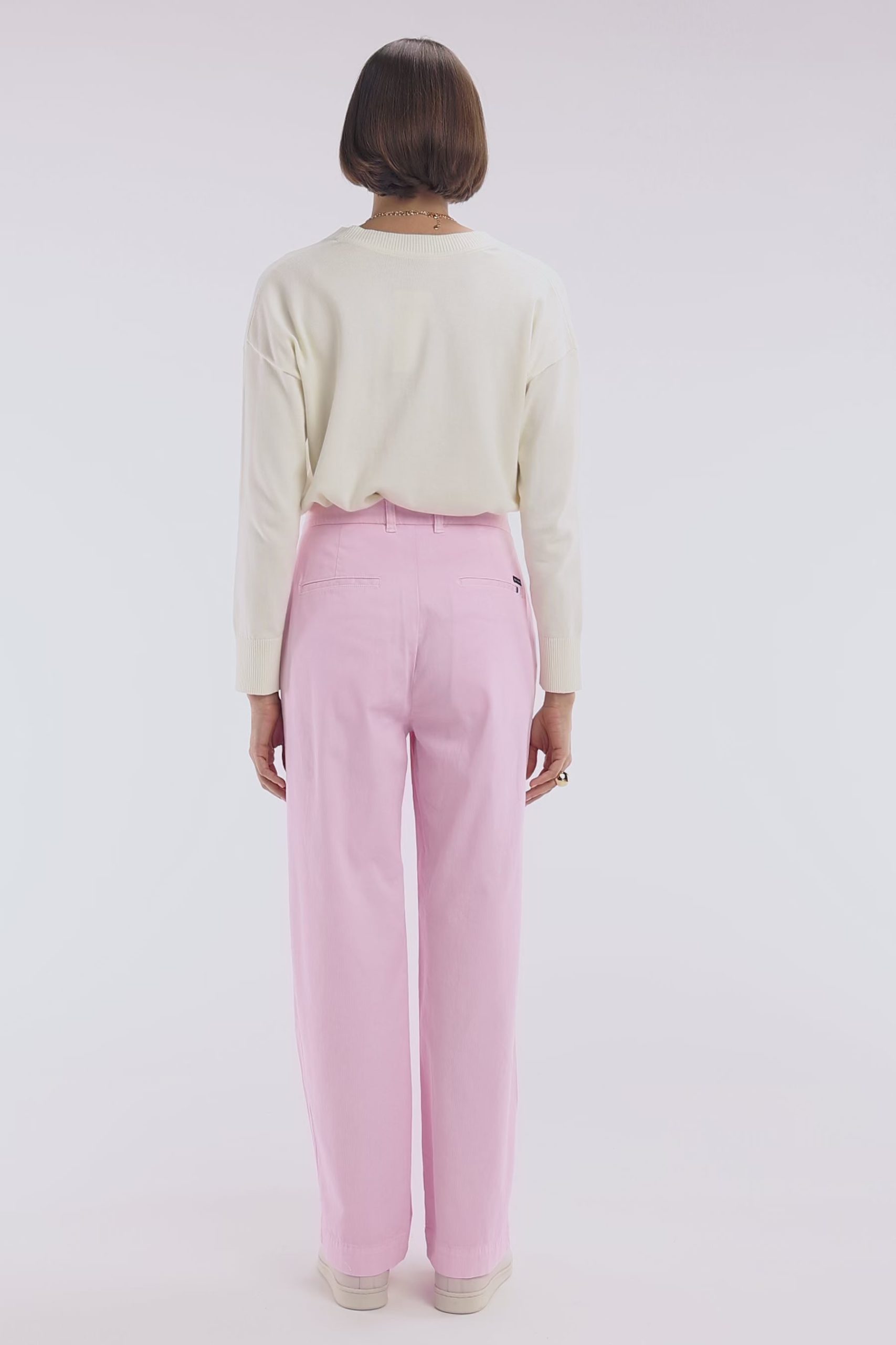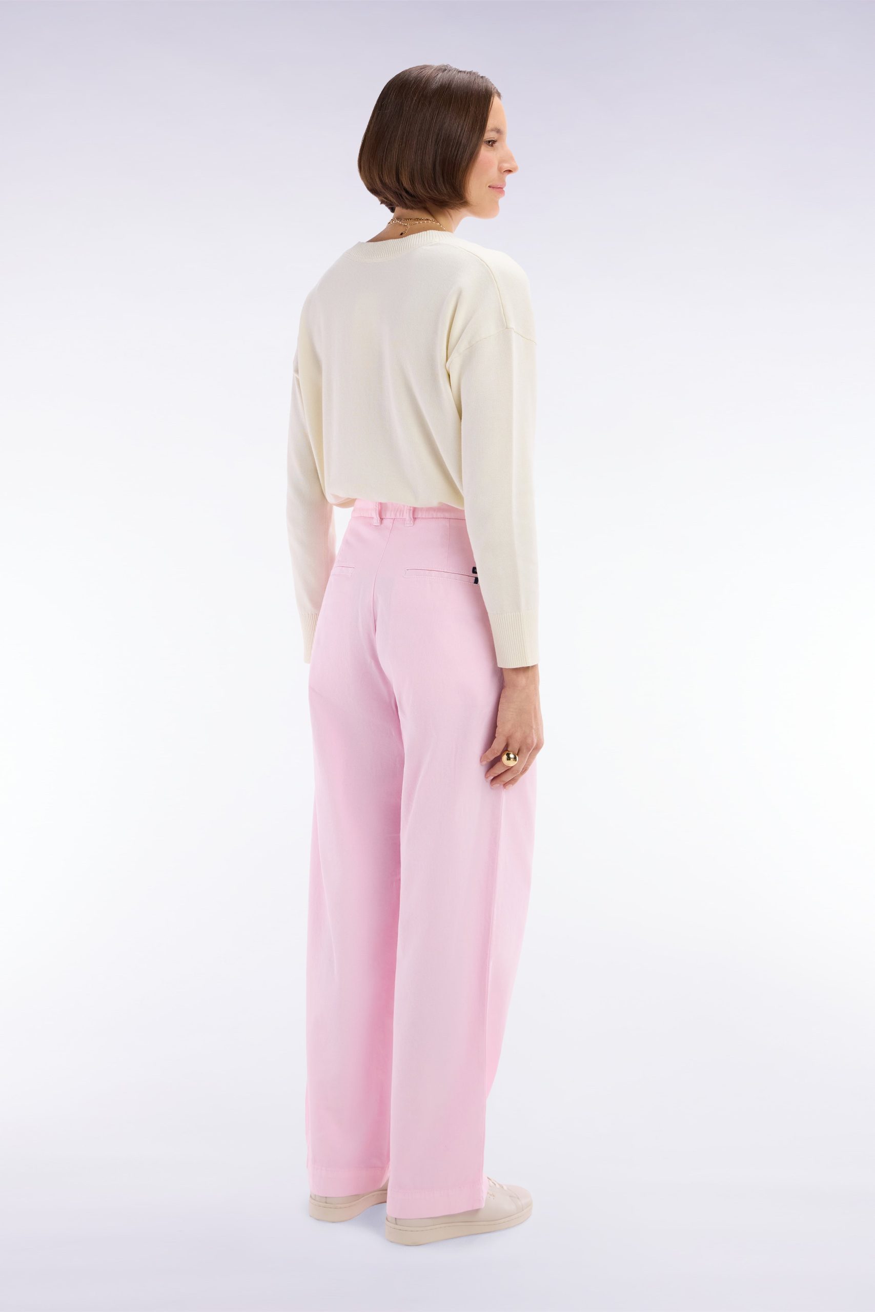Apportez une note de douceur et de féminité à toutes vos tenues avec ce pantalon en coton stretch rose. Sa coupe décontractée et sa teinte lumineuse le rendent idéal pour des silhouettes variées et intemporelles. Associez-le à une chemise claire et des mocassins pour une élégance sophistiquée ou optez pour un t-shirt et des sneakers pour une allure estivale décontractée mais chic. Polyvalent et confortable, ce pantalon incarne parfaitement l’équilibre entre style casual et raffinement.