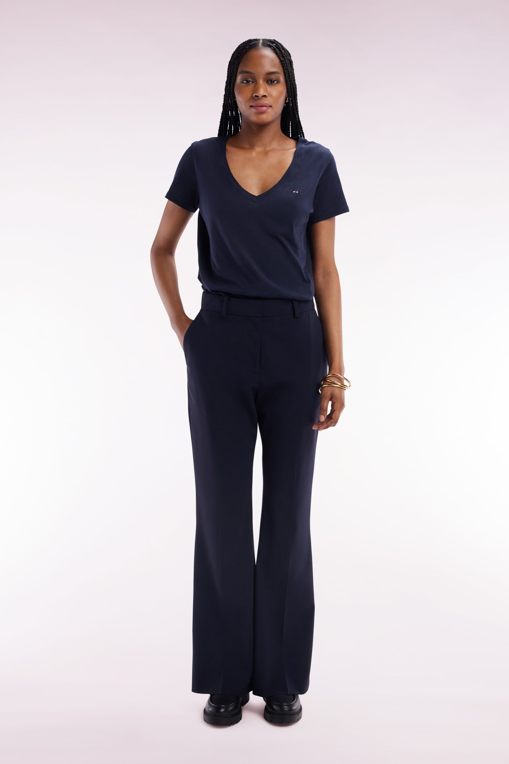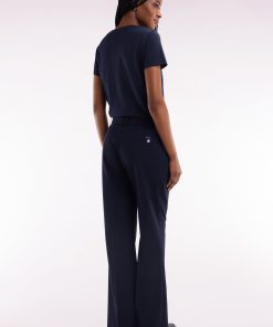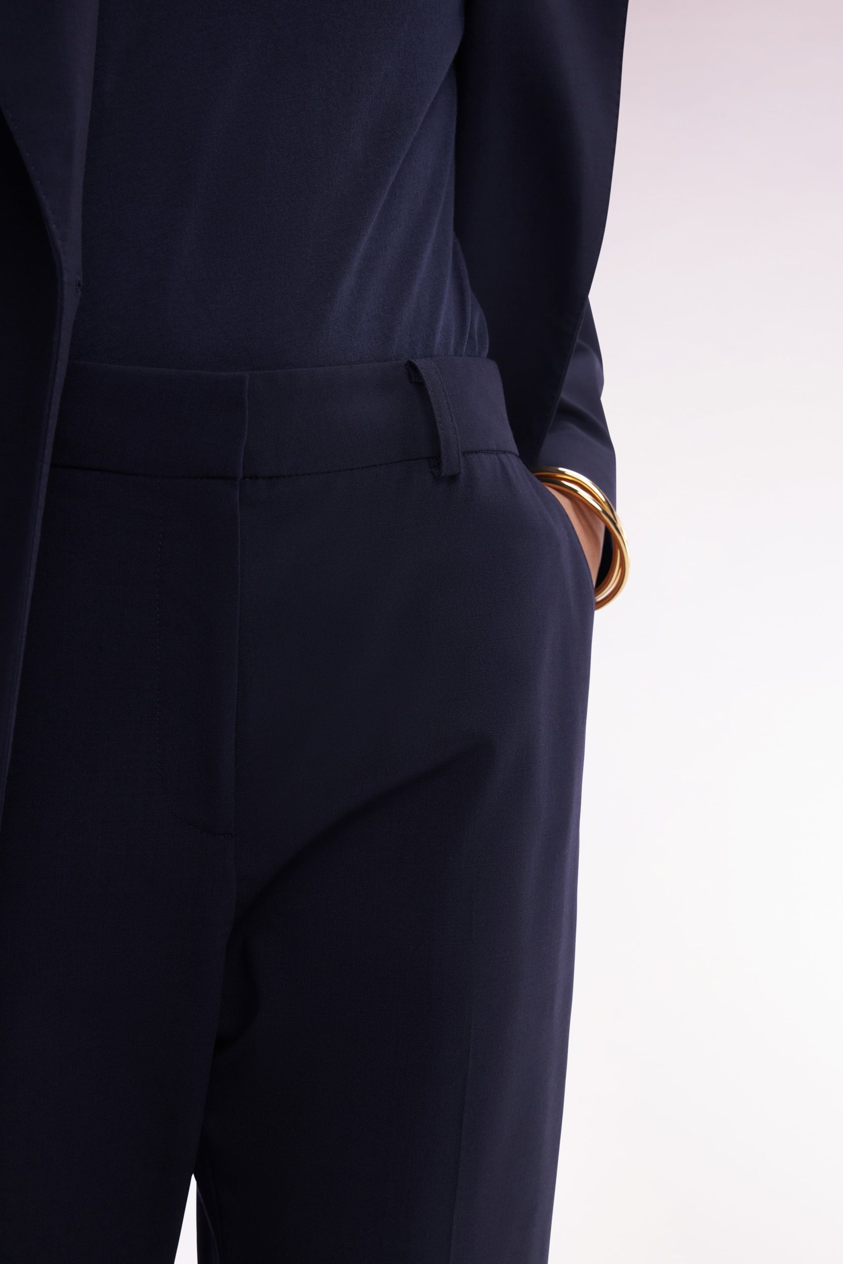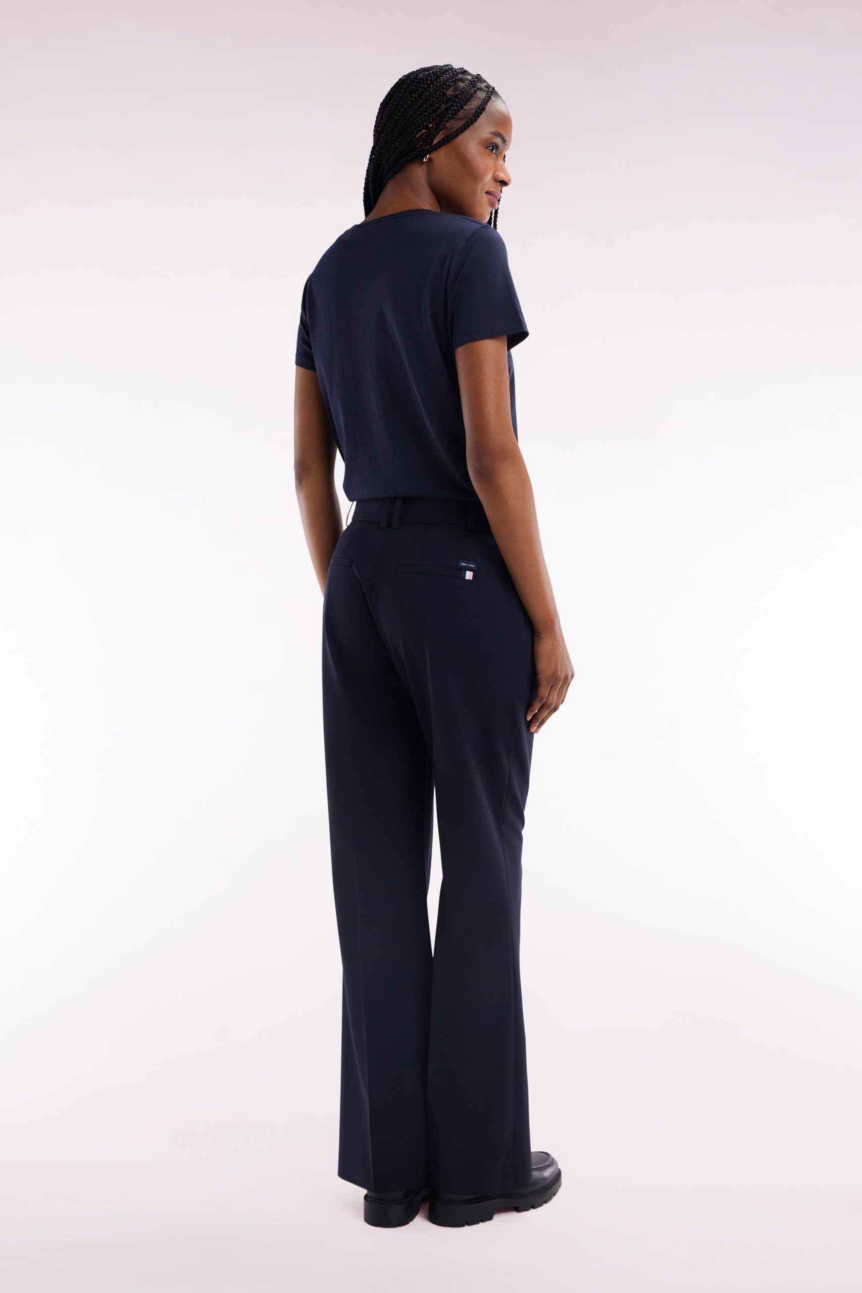 Confectionné en laine vierge marine, ce pantalon pour femme témoigne de l’excellence des matières nobles et du savoir-faire de notre Maison. Sa laine de haute qualité garantit une douceur incomparable et une tenue parfaite. Sa coupe droite, à la fois flatteuse et intemporelle, sublime la silhouette tout en offrant un confort optimal. Idéal pour composer une tenue professionnelle élégante ou un look sophistiqué, ce pantalon se marie aisément avec une chemise fluide ou une veste assortie. Une pièce raffinée, pensée pour traverser les saisons avec style et modernité.