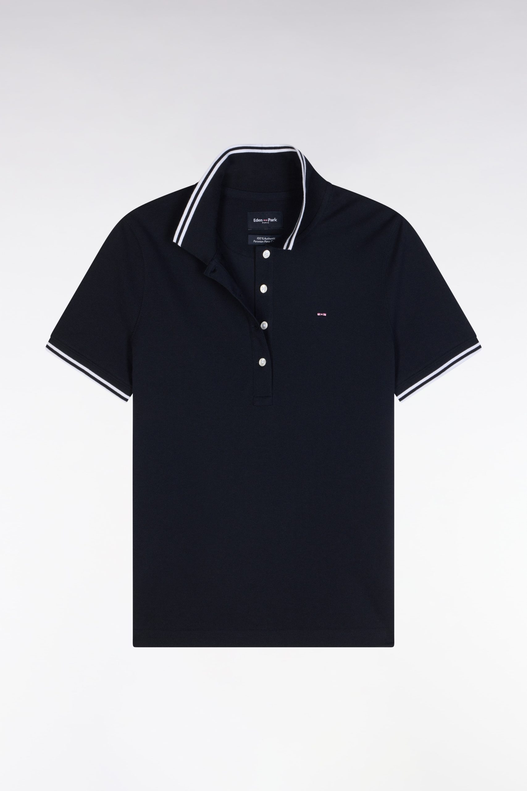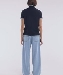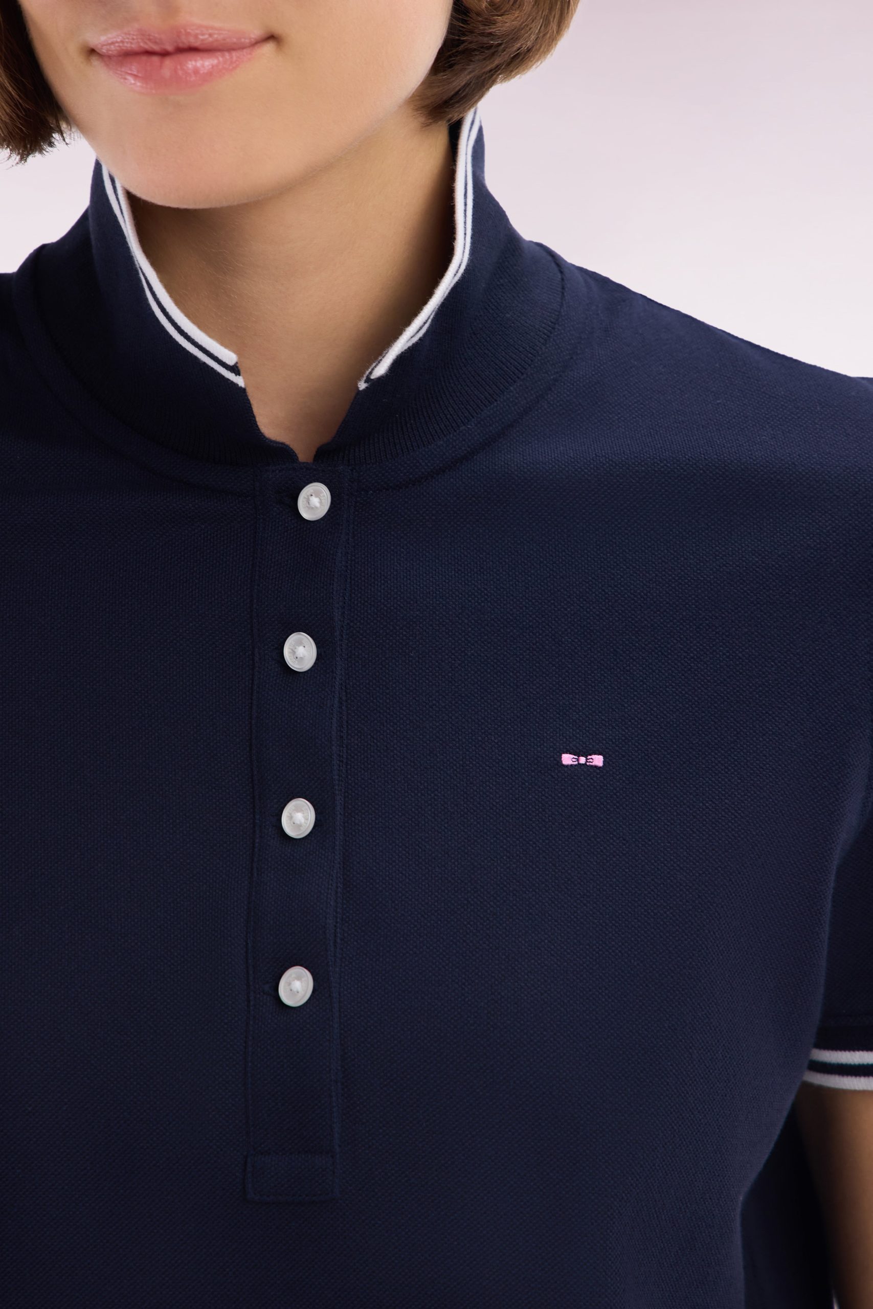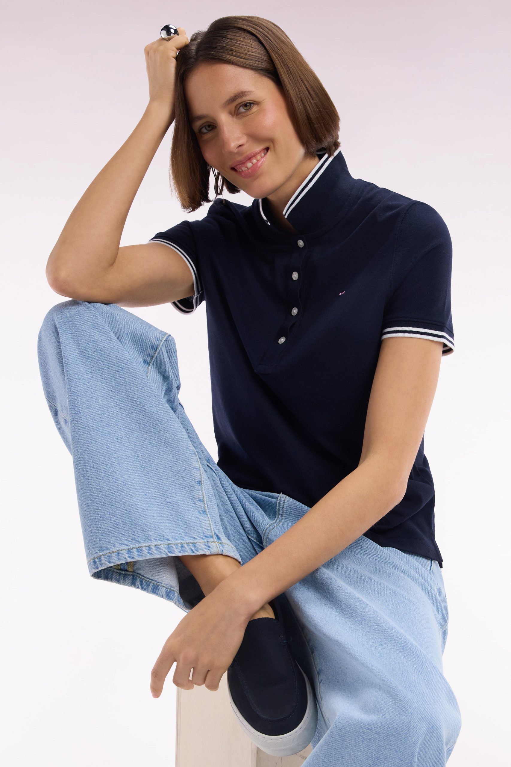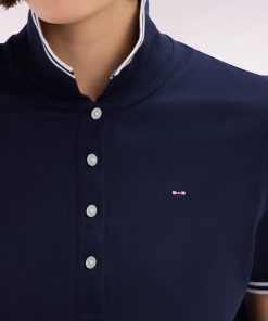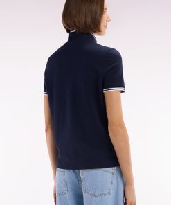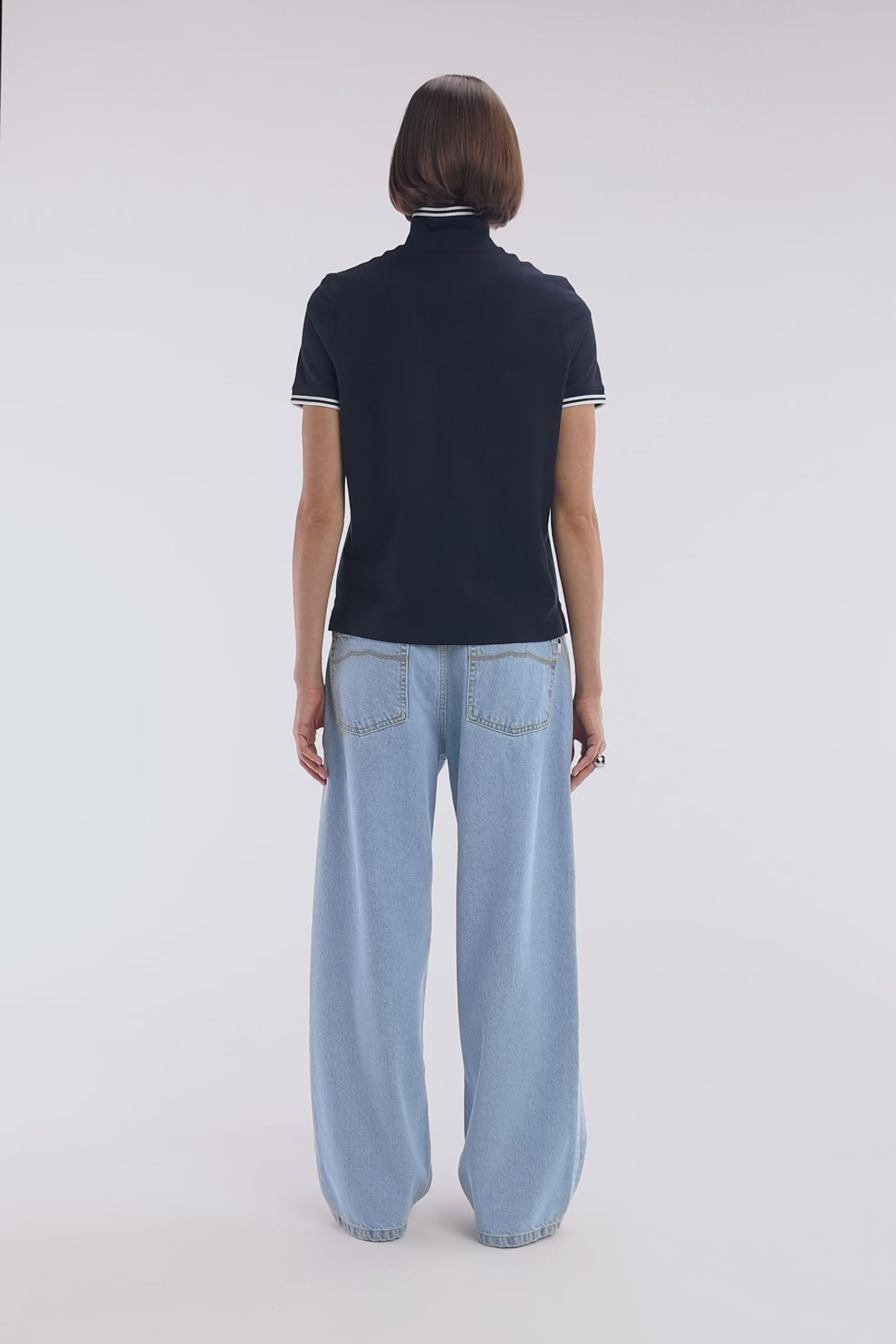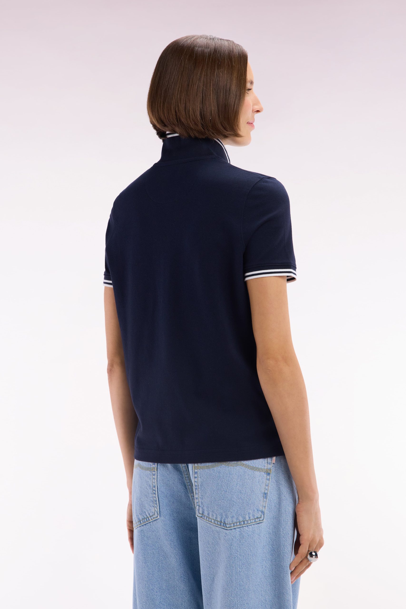 Ce polo à manches courtes en piqué 100% coton Pima incarne l’essence du style sport-chic de notre Maison française. Décliné dans trois coloris intemporels, bleu ciel, blanc ou marine, il s’impose comme un incontournable du vestiaire féminin. Avec ses finitions rayées au col et aux manches et son délicat nœud papillon brodé, ce polo femme à la coupe droite allie confort et élégance décontractée. Confectionné à partir de coton Pima péruvien, éthique et durable, il garantit une tenue impeccable et un confort optimal, saison après saison.