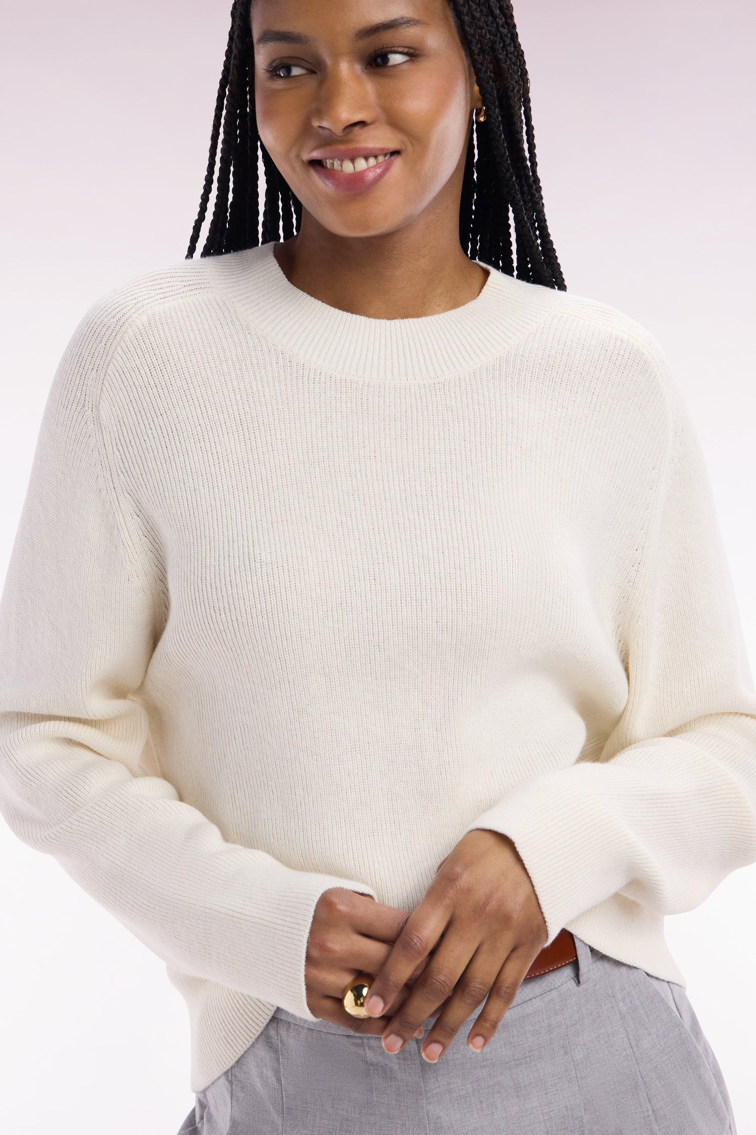 Ce pull femme à la coupe décontractée combine élégance et confort grâce à son mélange de lin et coton, idéal pour la mi-saison. Sa maille subtilement texturée apporte une touche de modernité, tandis que ses finitions côtelées soulignent son allure décontractée. Une pièce essentielle pour un vestiaire léger et raffiné porté avec un jean comme avec un pantalon à jambes larges. Modèle intemporel proposé en coloris écru ou bleu marine.