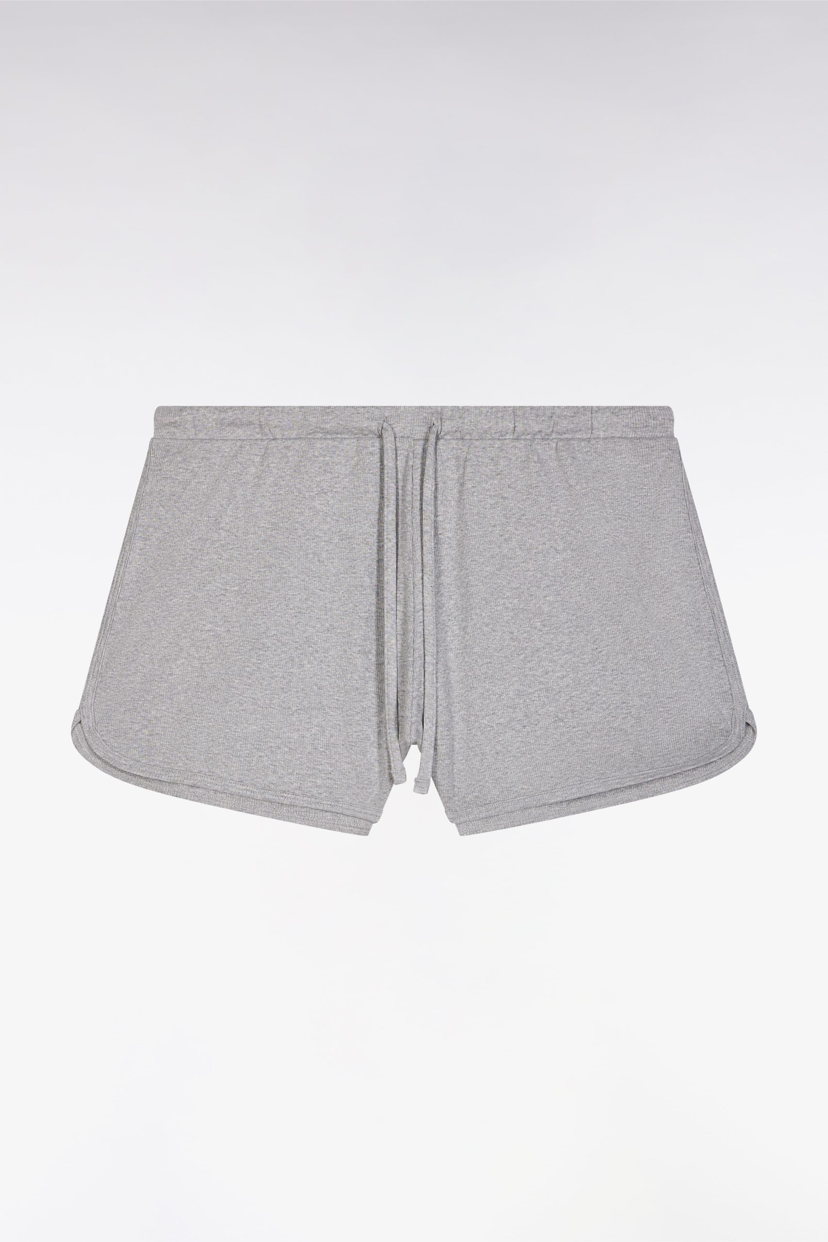 Élégance minimaliste et confort se rencontrent avec cet ensemble composé d’un débardeur en coton côtelé blanc et d’un short à taille élastiquée avec cordon de resserrage, décliné en gris ou marine. Un pyjama féminin parfait pour les nuits d’été ou les moments de détente à la maison.