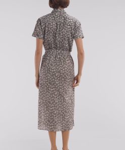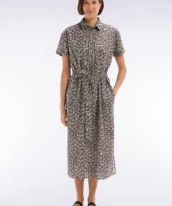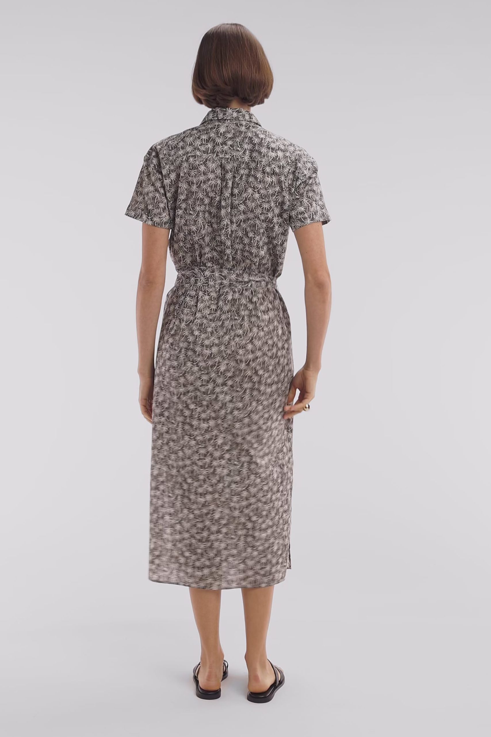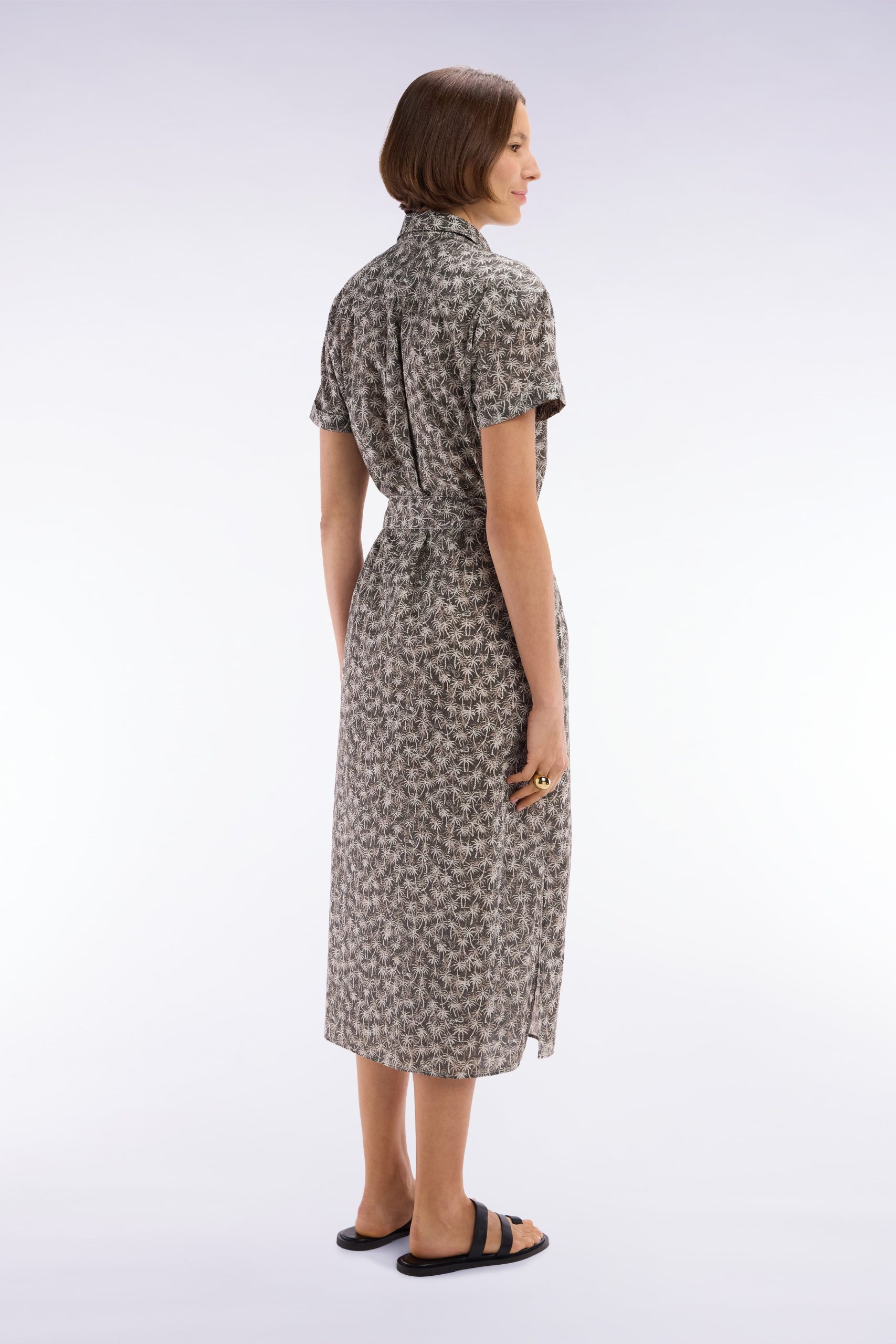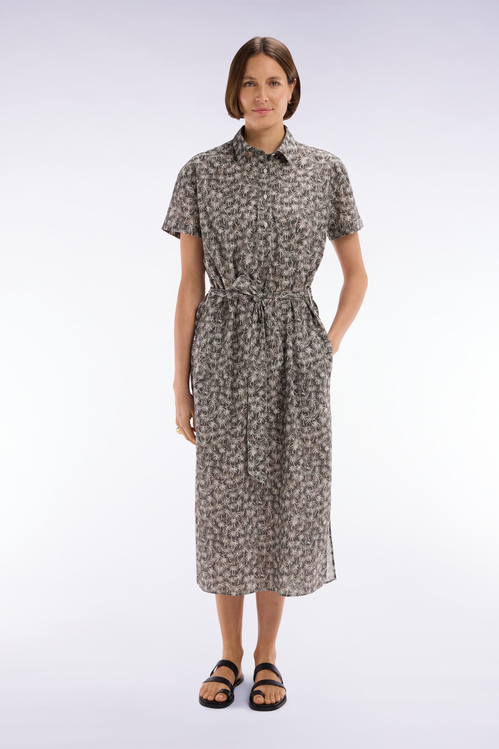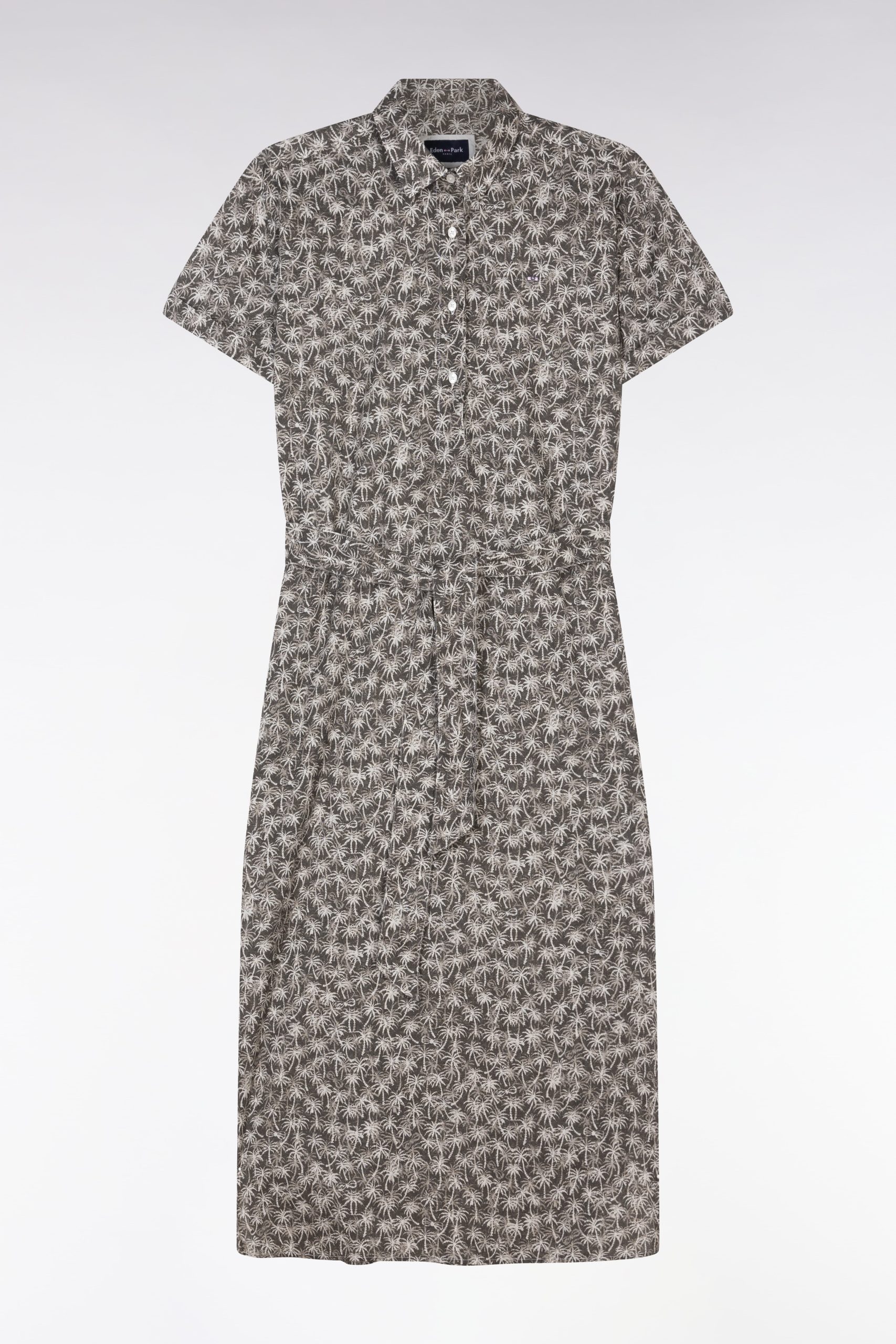 Cette robe chemise à manches courtes en coton kaki est une ode à l’été avec son imprimé palmiers, délicat et tendance, véritable star de la saison dans notre collection. Sa coupe décontractée et fluide assure un confort optimal, tandis que sa ceinture intégrée flatte subtilement la silhouette. Confectionnée dans une matière légère et respirante, elle est idéale pour des journées estivales élégantes et modernes. À porter avec des sandales minimalistes pour une allure décontractée ou avec des mocassins pour un style plus affirmé et chic.