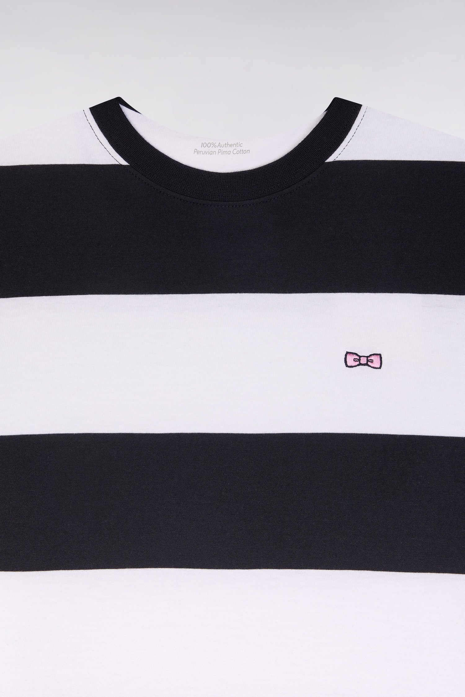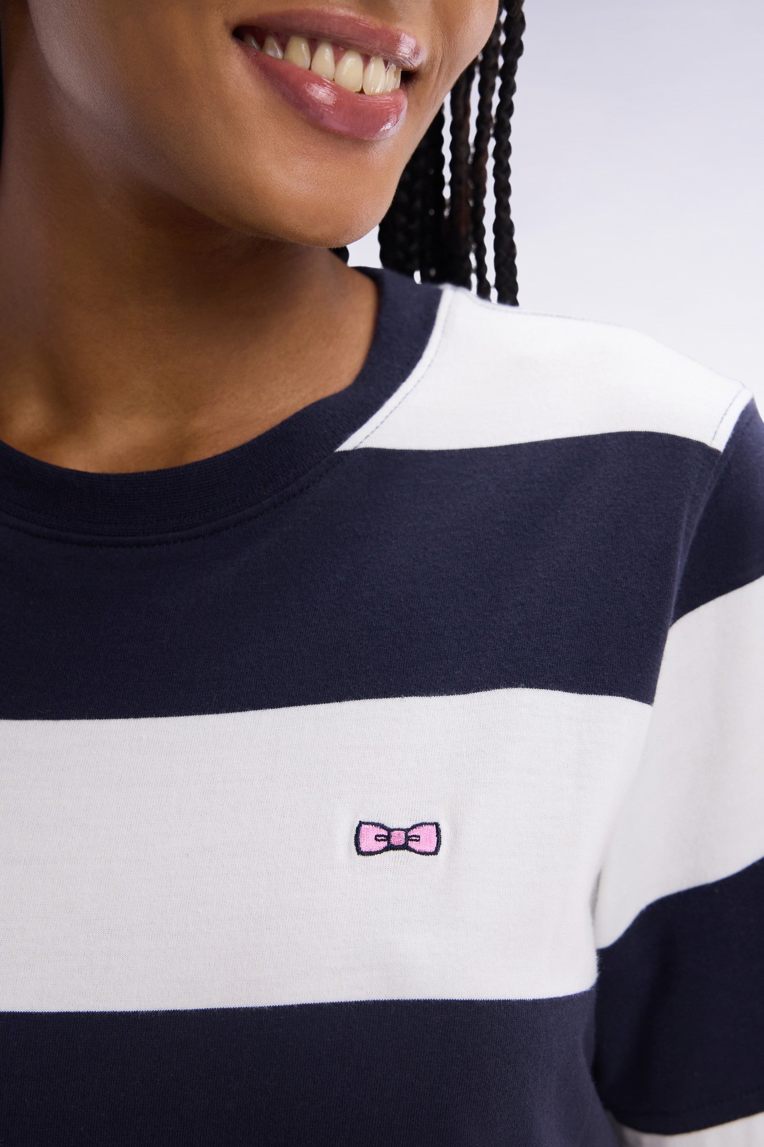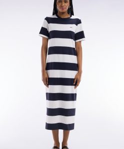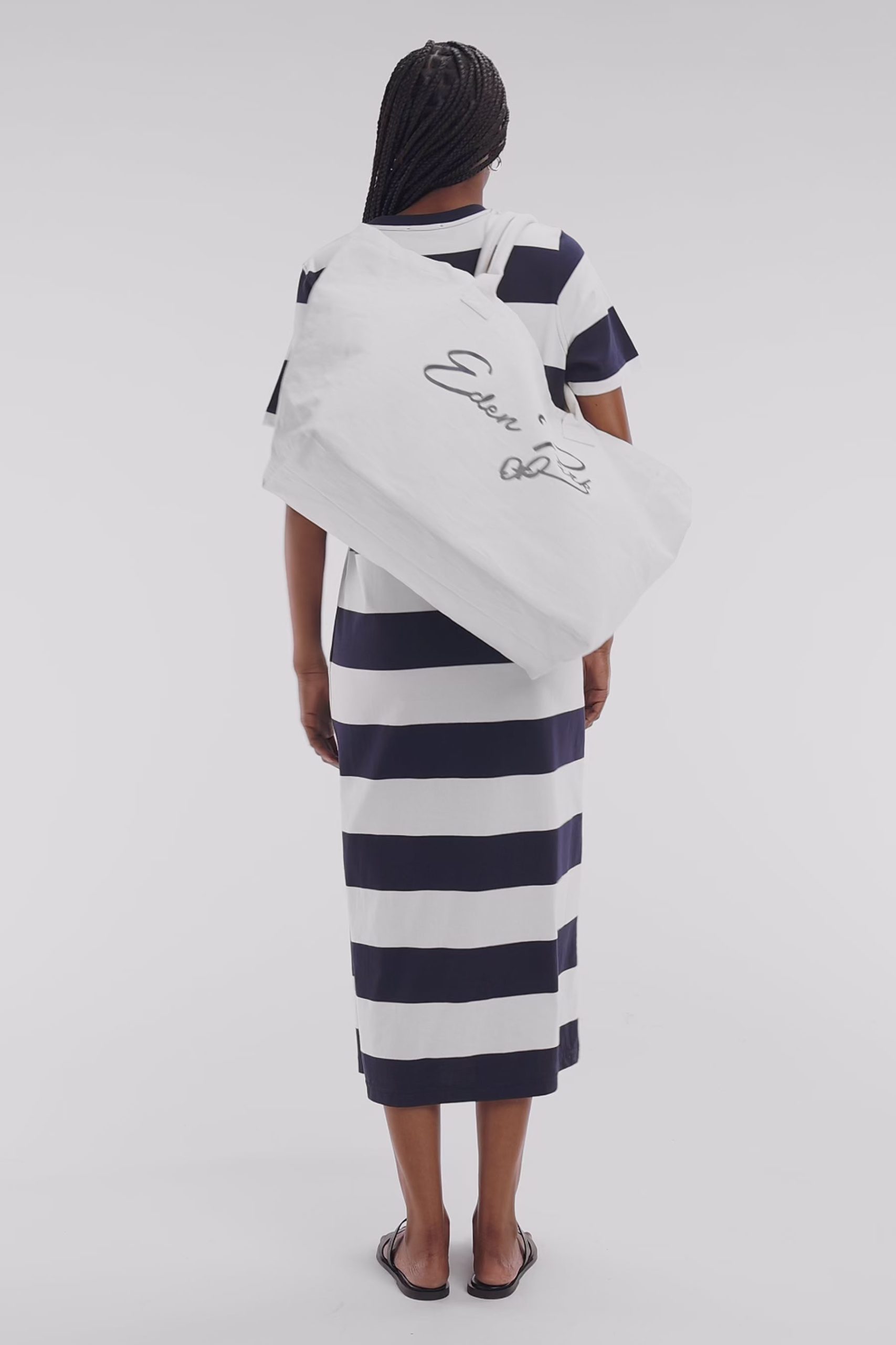Plus proches du cerclage des maillots de rugby que de la classique marinière, les rayures de cette robe en coton apporteront à vos tenues d’été une touche sport-chic et graphique. Pour sublimer votre quotidien, notre Maison a sélectionné un coton Pima péruvien écoresponsable, réputé pour sa douceur soyeuse et sa tenue exceptionnelle. Avec son col rond et ses manches courtes, cette robe T-shirt longue promet une silhouette tendance. À Porter avec des sandales comme avec une paire de baskets basses.