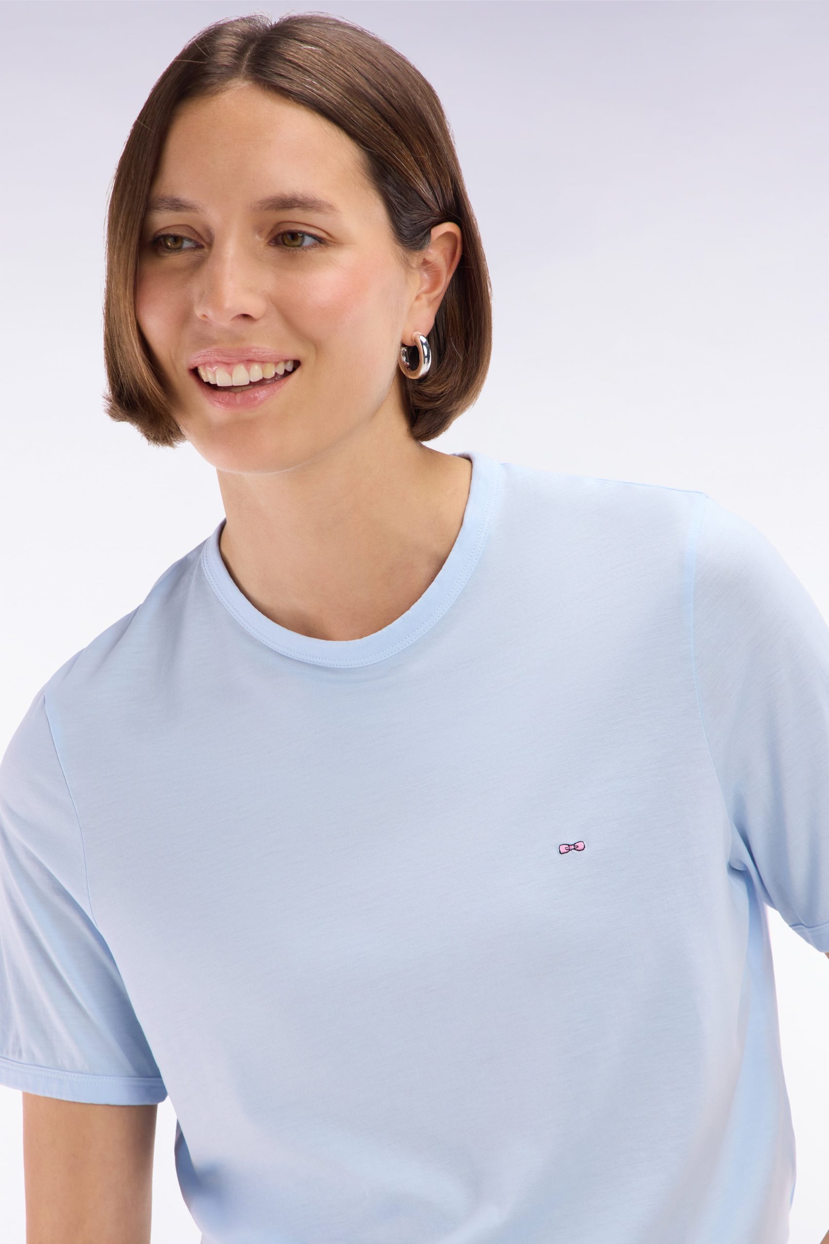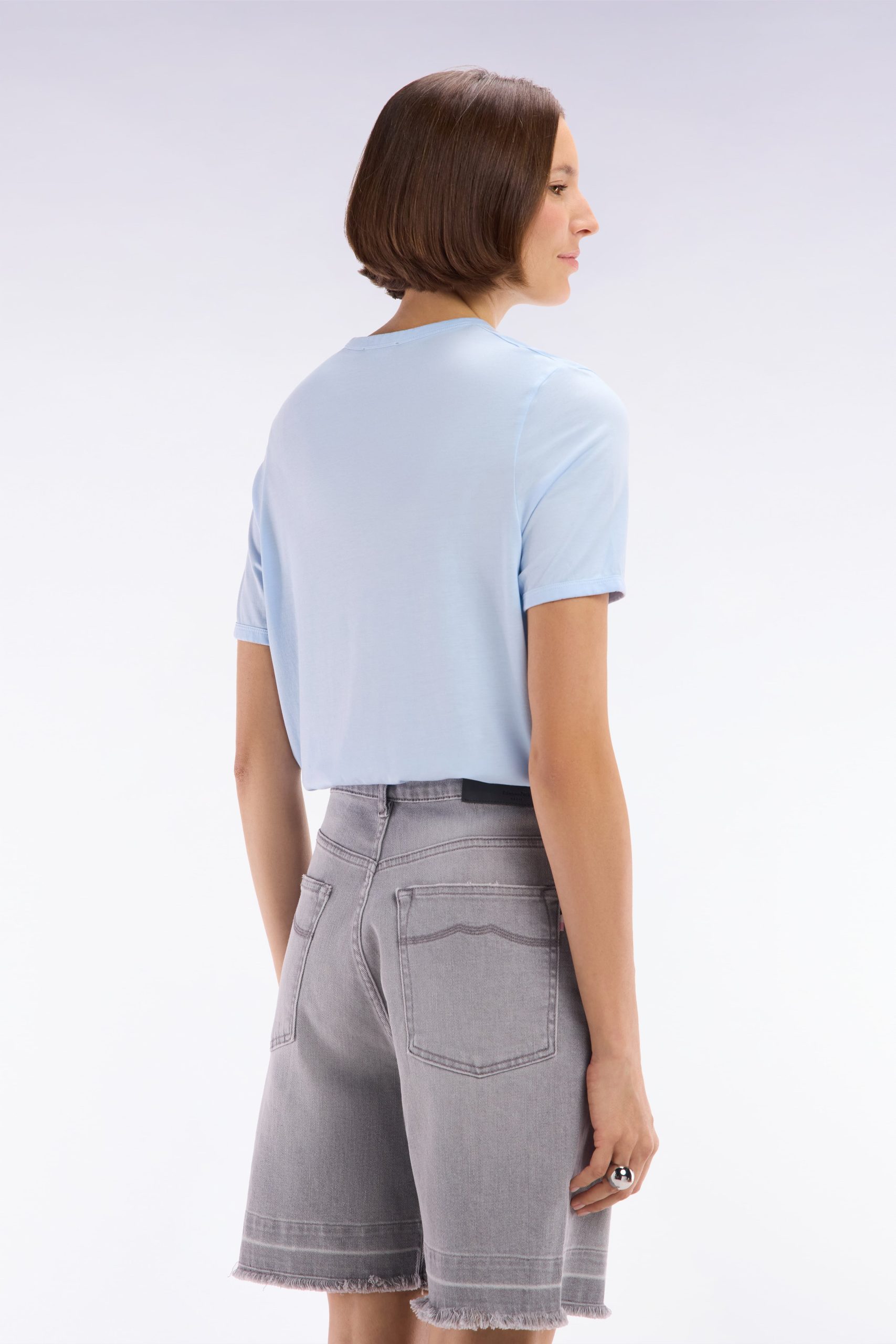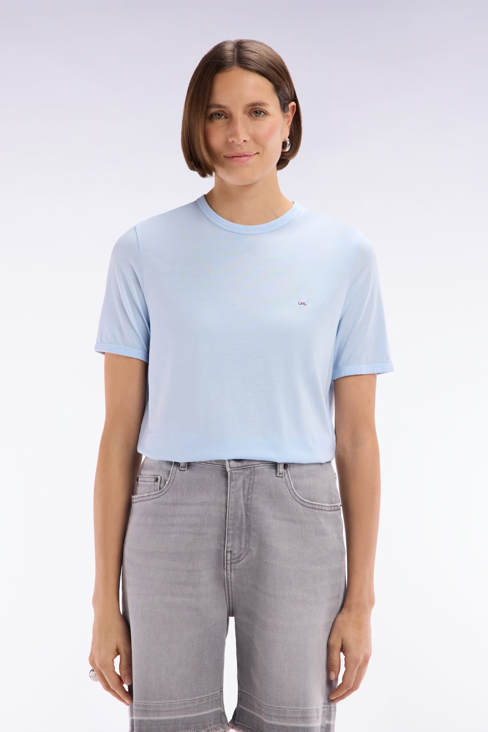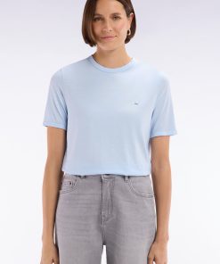 Confectionné dans un mélange de lyocell et de coton, ce t-shirt léger er respirant allie intemporalité et confort, idéal pour le printemps-été. Sa coupe droite, son col rond et ses finitions gansées à l’encolure et aux manches en font une pièce facile à porter en toute occasion.