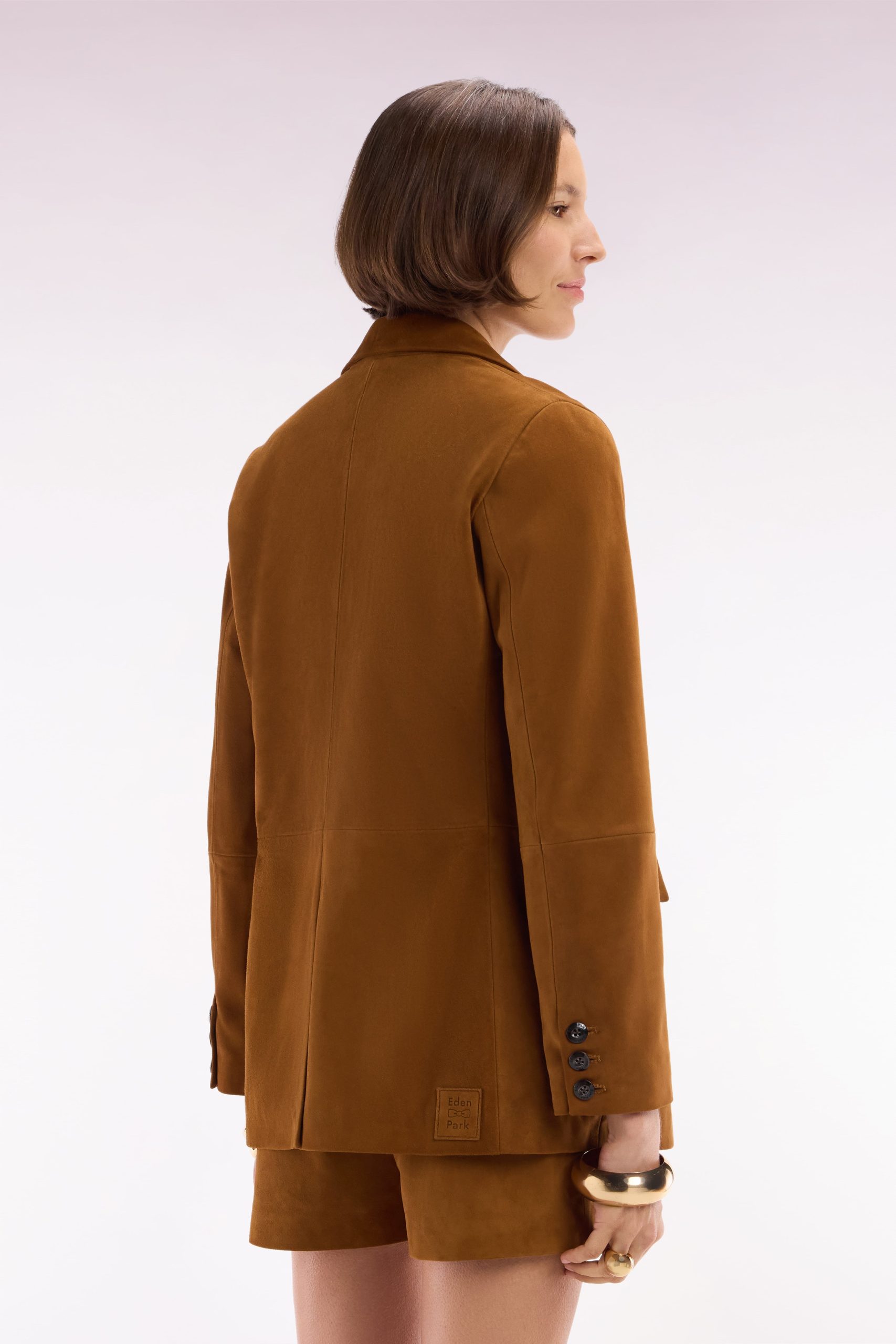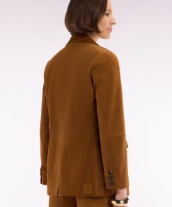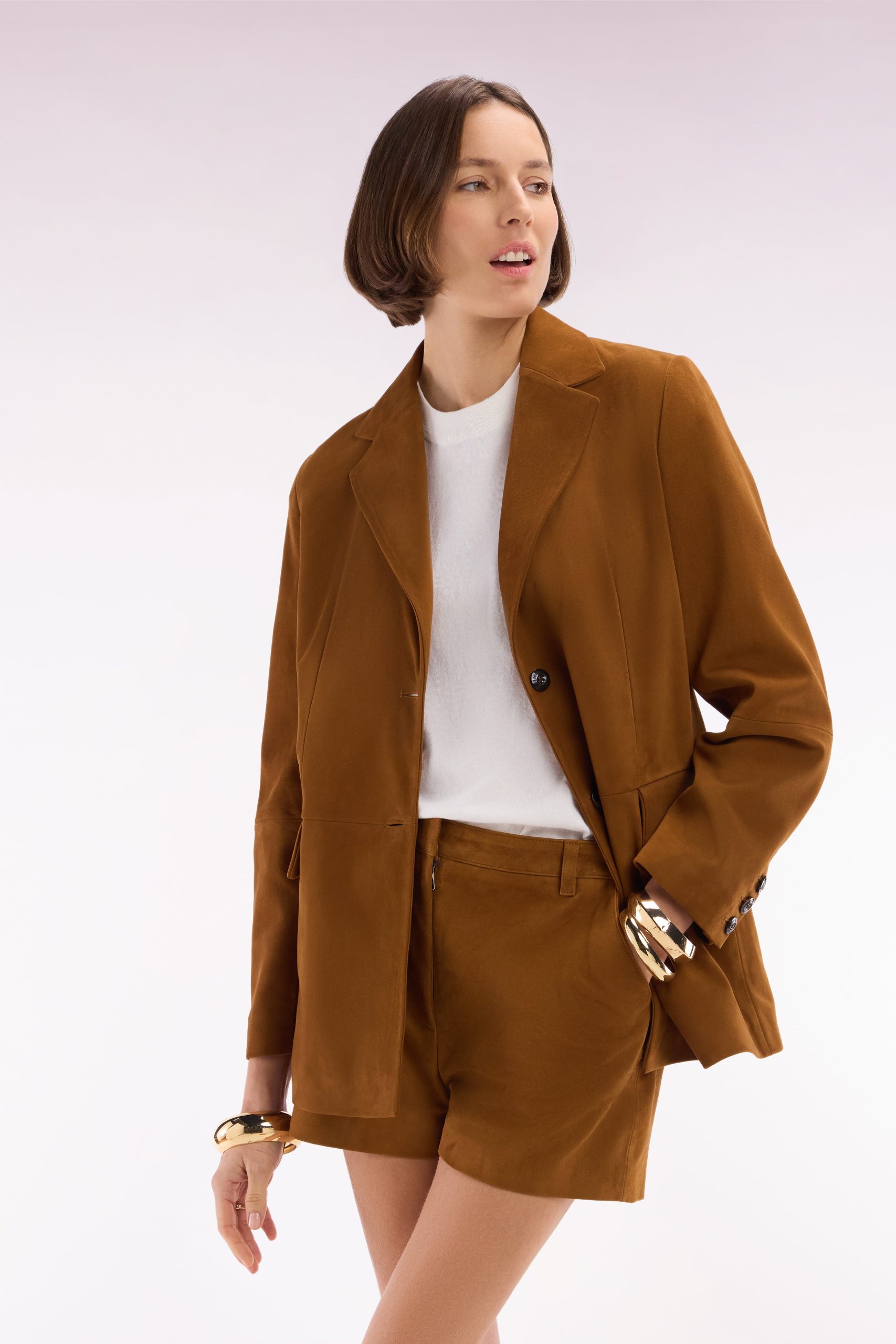 Essentiel du vestiaire de mi-saison, cette veste en cuir suédé marron revisite le blazer avec une touche d’élégance intemporelle et d’authenticité. Sa coupe soignée, pensée pour sublimer la silhouette féminine, s’adapte aussi bien à un jean décontracté qu’à un pantalon cargo pour un style audacieusement chic. Confectionnée dans un cuir d’exception, elle offre une douceur et une souplesse incomparables, tout en incarnant la durabilité et le raffinement. Les finitions impeccables, signatures du savoir-faire de nos ateliers, ajoutent une note de sophistication à cette pièce polyvalente. Une veste intemporelle qui traverse les saisons avec style et caractère.