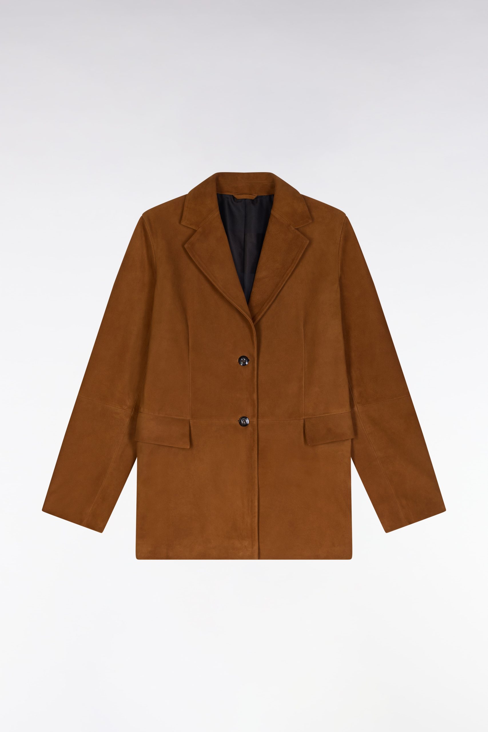 CROUTE DE CUIR DE CHEVRE FINITION VELOURS, DOUBLURE : 100% POLYESTER, DOUBLUER MANCHES : 51% POLYESTER, 49% ACETATE