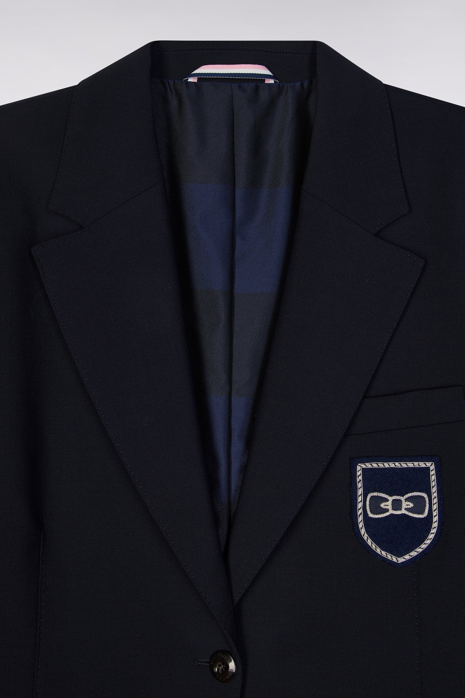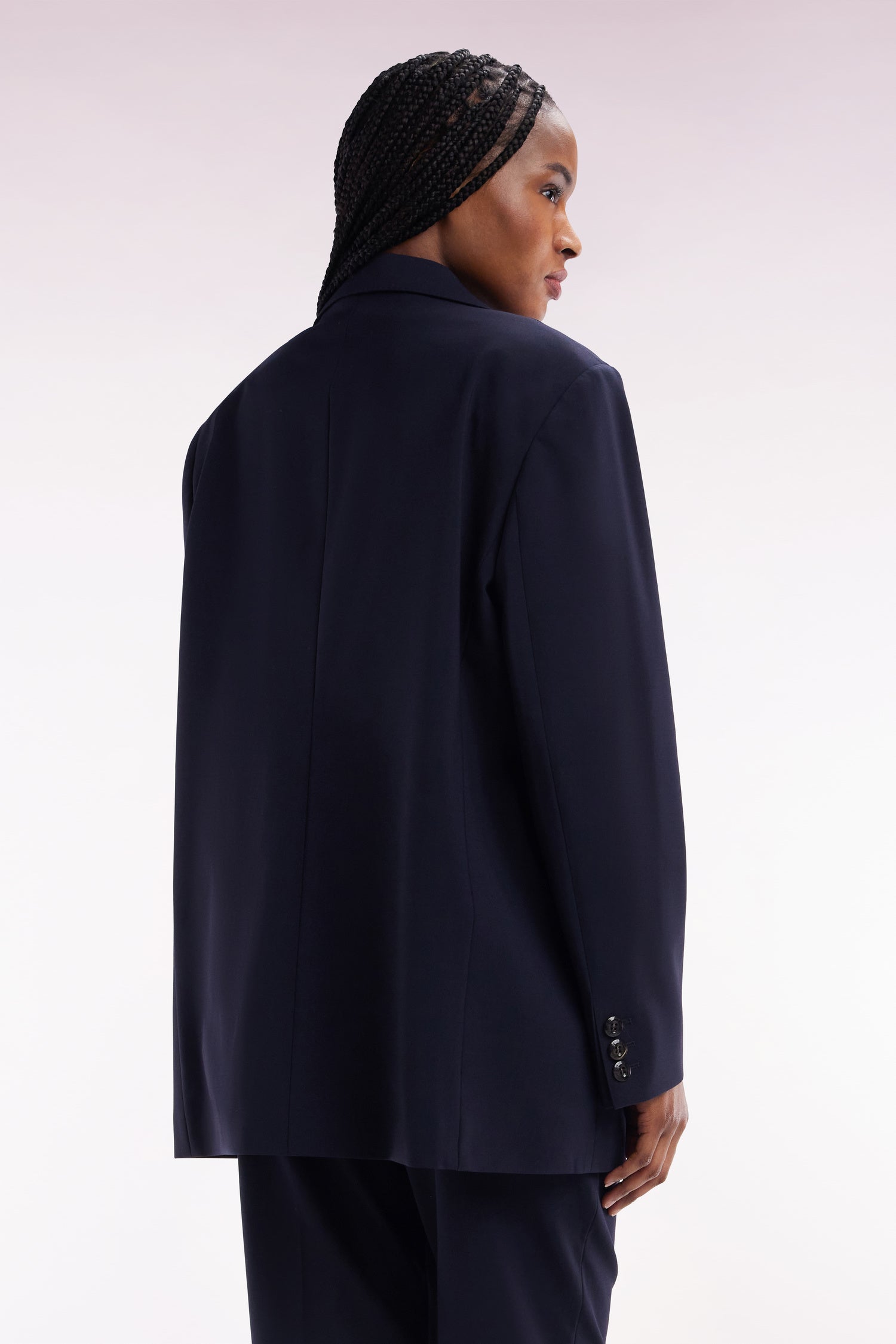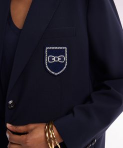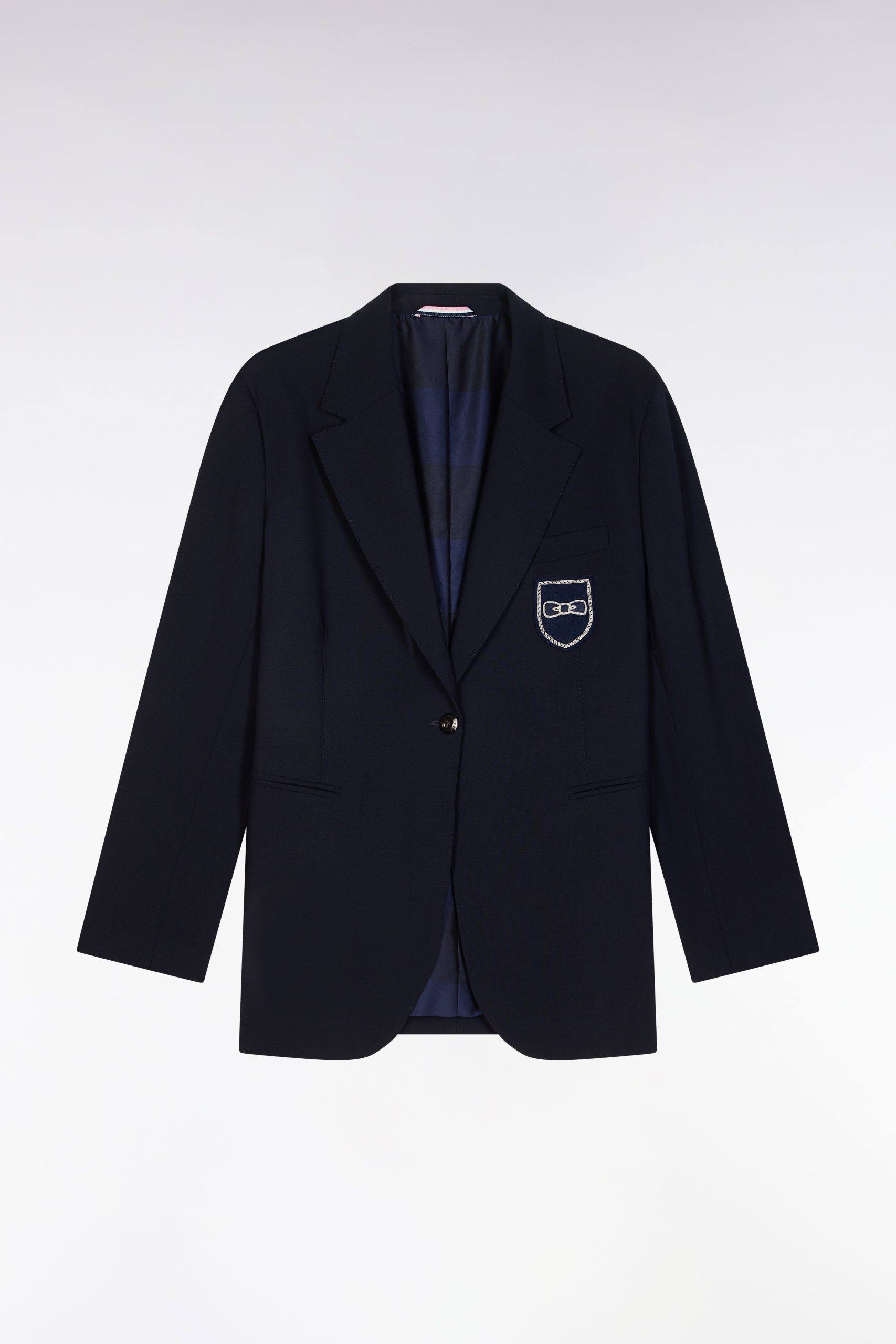 Ce blazer femme en laine vierge marine séduit par sa coupe Oversized, élégante et résolument contemporaine. Confectionnée avec soin, cette veste de costume arbore tous les détails identitaires de la Maison, à commencer par une doublure cerclée signature qui souligne son caractère distinctif. Sa construction en thermocollage garantit une tenue impeccable et facilite l’entretien, alliant ainsi style et praticité. Véritable pièce maîtresse du vestiaire féminin, ce blazer apporte une touche de sophistication intemporelle, aussi chic sur un jean que sur un pantalon plus habillé.