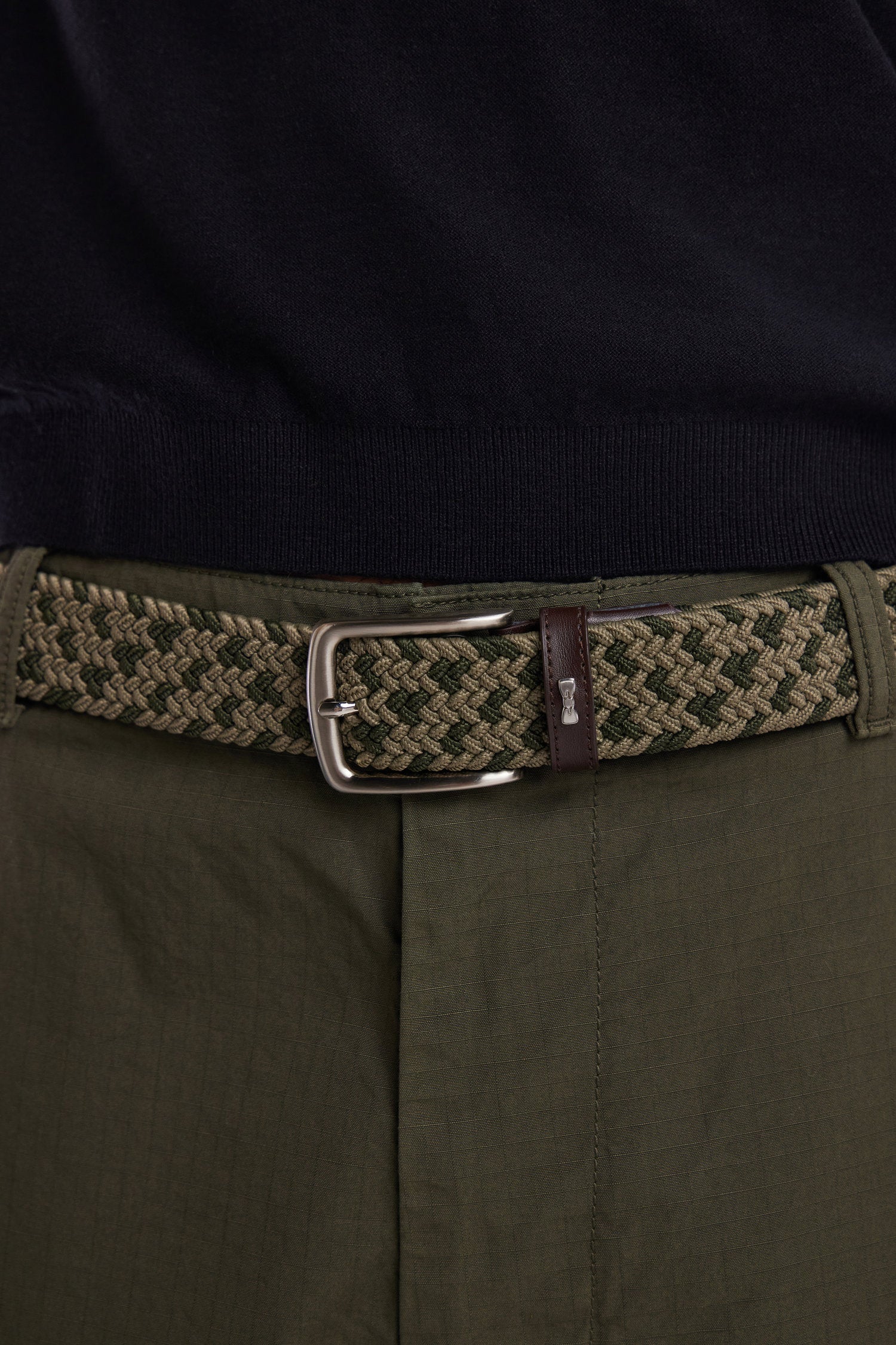 Cette ceinture élastiquée tressée en camaïeu de kaki apporte une touche tendance au vestiaire masculin Eden Park. Elle s’adapte facilement à votre morphologie et est rehaussée d’une boucle en métal, de finitions en cuir, et de l’emblématique nœud papillon, une touche French Flair pour un style moderne et raffiné.