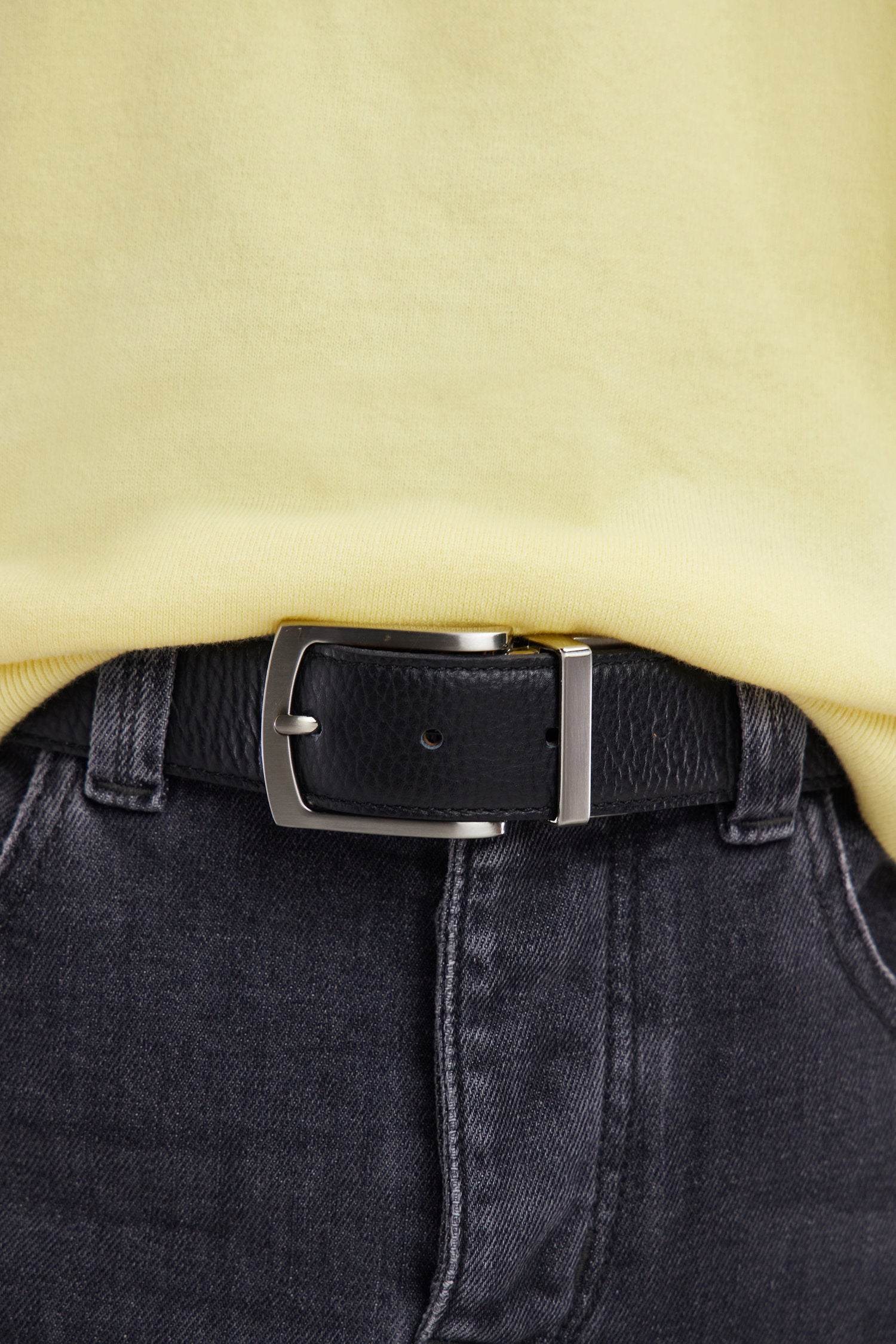 Cette ceinture en cuir bicolore et réversible, avec une face noire et une face marron, est l’accessoire versatile parfait pour s’adapter à toutes vos tenues. Dotée d’une boucle en métal élégante, cette ceinture masculine est disponible en quatre tailles pour un ajustement idéal.
