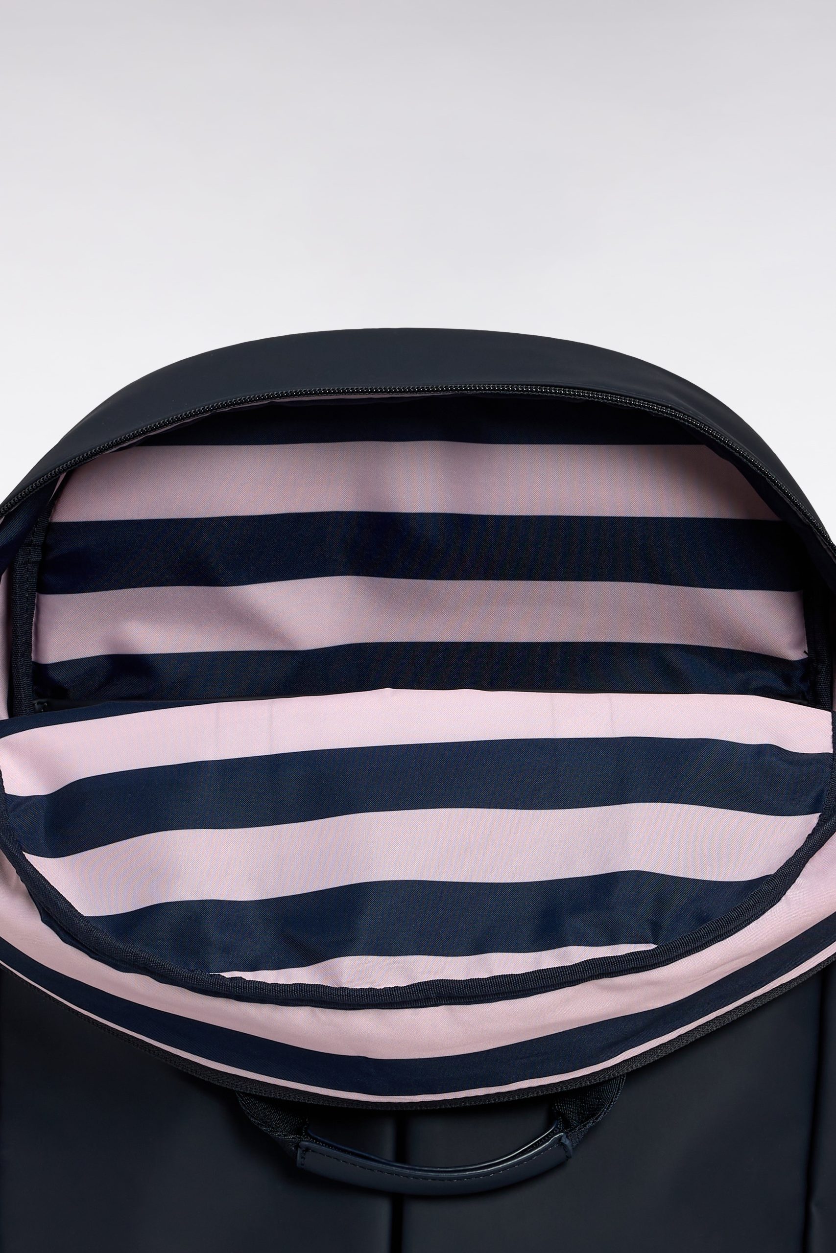 Fabriqué en gomme caoutchouc marine, ce sac à dos masculin associe robustesse et design contemporain. Idéal pour le quotidien ou les déplacements, il dispose d’un intérieur spacieux et bien organisé, ainsi que de poches fonctionnelles pour garder vos essentiels à portée de main. Son design épuré est sublimé par des détails soignés, notamment notre emblème nœud papillon, signature emblématique de notre Maison. Pratique et stylé, cet accessoire est conçu pour accompagner un mode de vie actif tout en conservant une allure élégante et moderne.