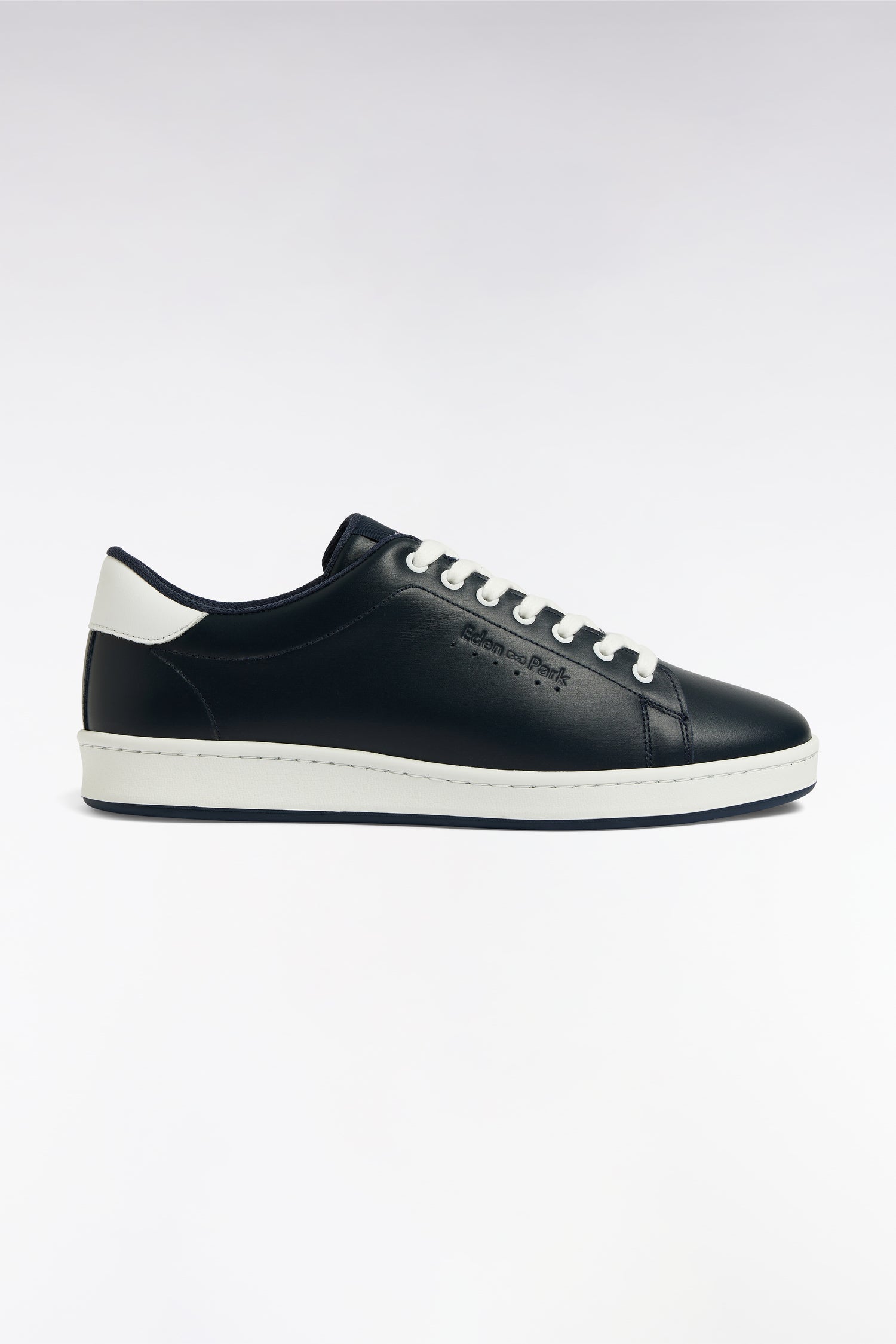 Ces baskets basses bicolores sont idéales pour apporter une note graphique et élégante à une silhouette du quotidien. Le cuir de vachette blanc ou noir est associé à une languette arrière embossée, blanche pour le modèle marine et vice versa. Avec leurs semelles blanches et leur embossage Eden Park discret associé à une perforation soignée, ces baskets veillent à parfaire votre allure.
