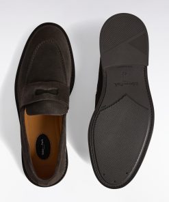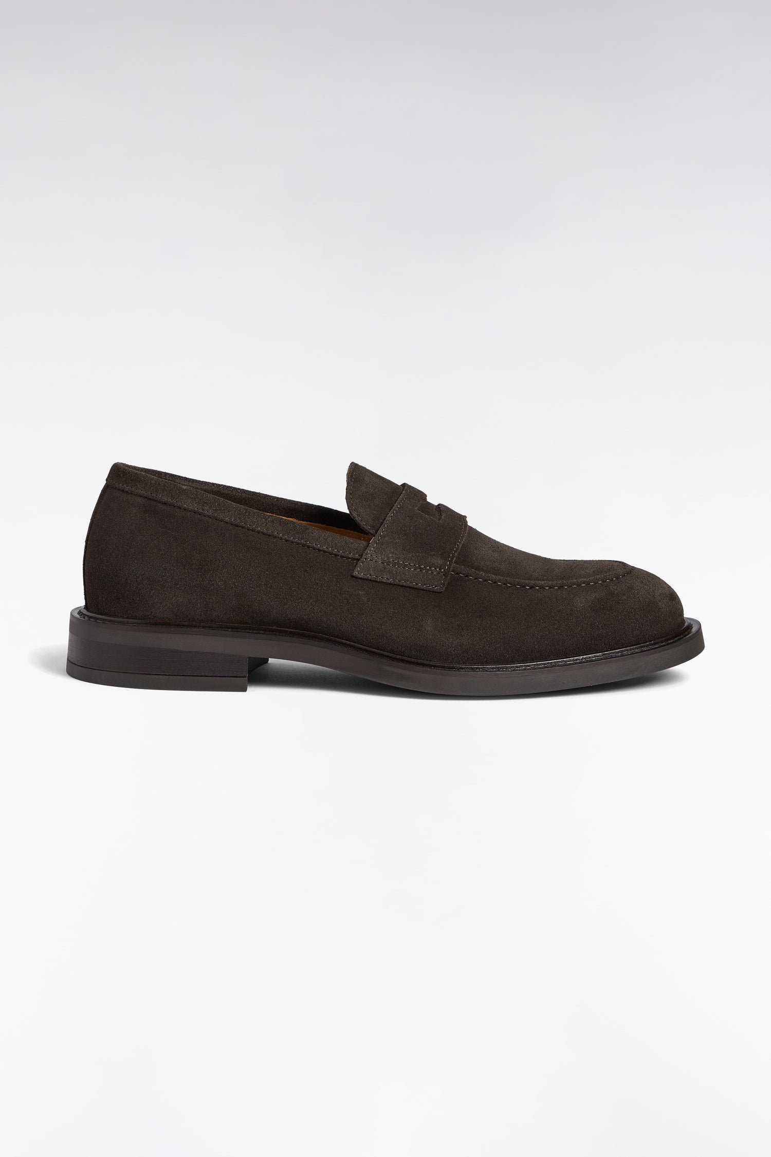 Ces mocassins pour homme en cuir suédé marron séduisent par leur texture douce et leur allure authentique. La silhouette classique de ces mocassins en nubuck marron est dynamisée par une semelle épaisse, tandis que la découpe sur le dessus évoque le nœud papillon emblématique de notre maison française. Un modèle confortable et élégant, parfait pour une allure sobre et maîtrisée, du matin jusqu’au soir