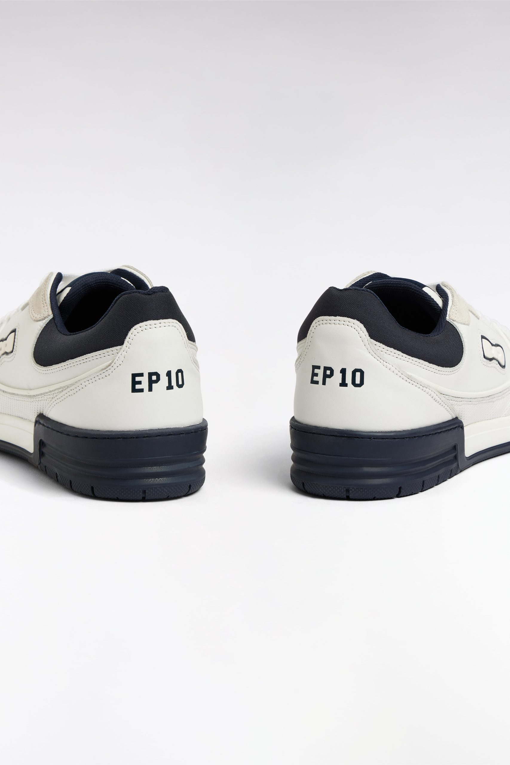 Les sneakers EP10 en cuir de vachette blanc et marine célèbrent l’élégance sport-chic avec une touche de streetwear. Leur découpe signature en forme de nœud papillon Eden Park et l’inscription EP10 en marine au talon rehaussent l’identité forte de ce modèle. Les languettes et semelles bicolores, subtilement contrastées en marine et blanc, ajoutent une dimension graphique. Polyvalentes et confortables, ces sneakers s’intègrent facilement à vos tenues décontractées, du chino au jean, tout en affirmant une signature stylistique unique à l’esprit Eden Park.