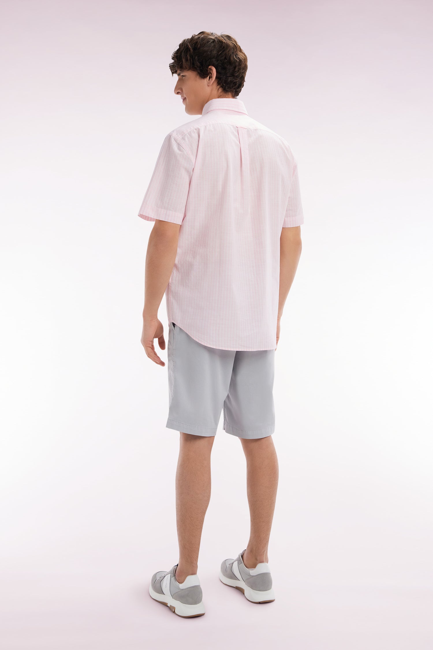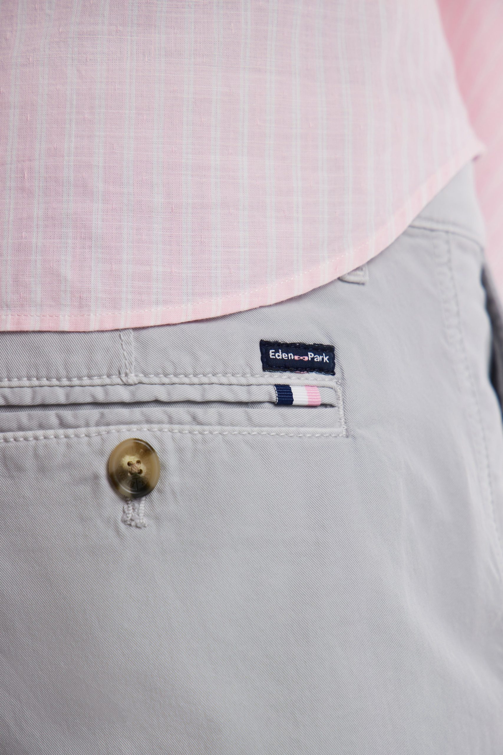 Ce bermuda chino en gabardine de coton stretch est parfait pour l’été. Avec ses poches côtés, ses poches dos double passepoil et son ruban ottoman tricolore brodé sur la poche arrière, il allie confort et élégance. Disponible en plusieurs coloris, ce bermuda au chic décontracté s’adapte à tous les styles.