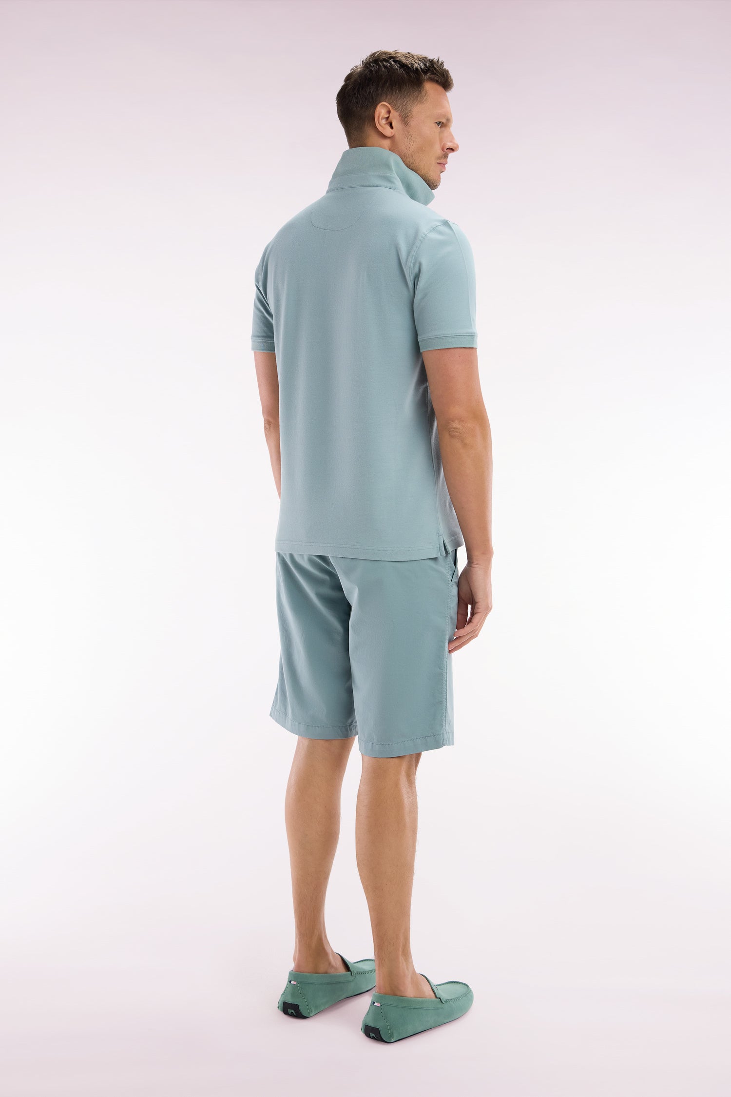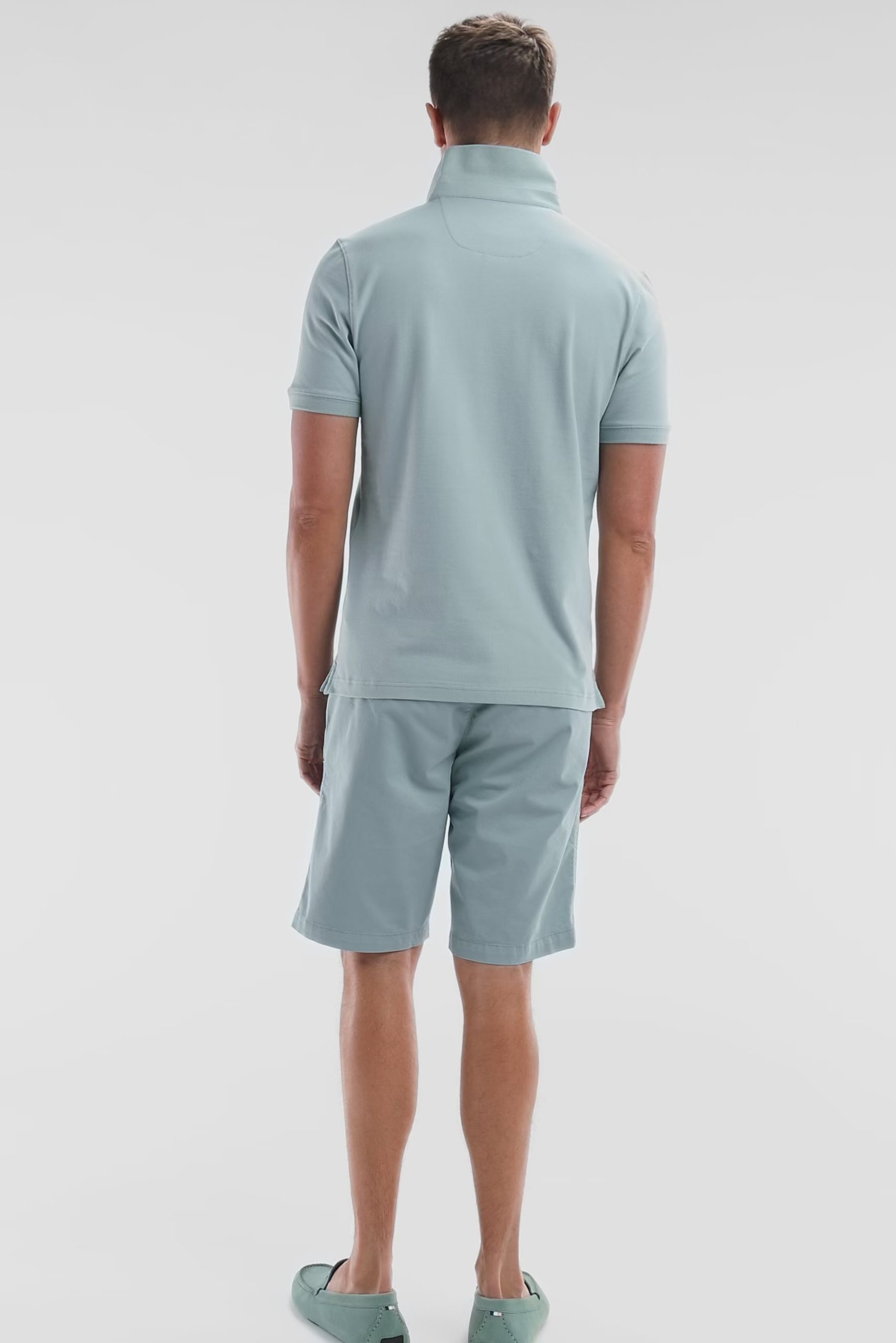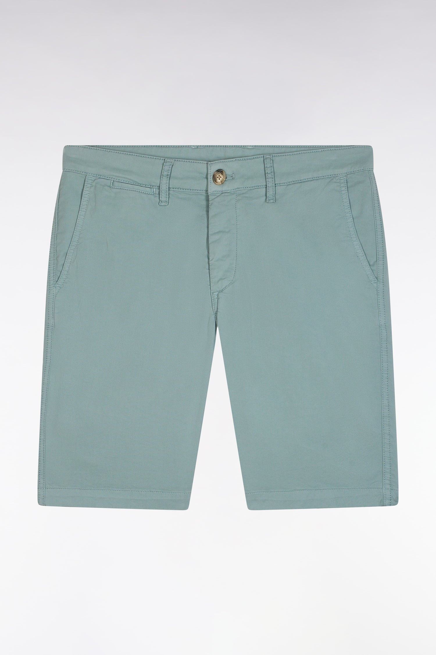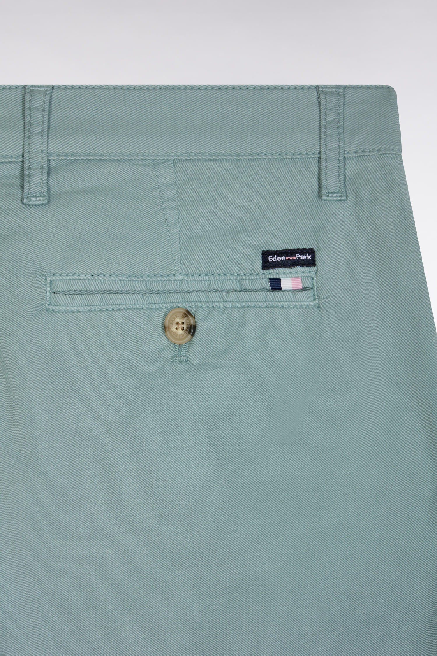 Ce bermuda chino en gabardine de coton stretch est parfait pour l’été. Avec ses poches côtés, ses poches dos double passepoil et son ruban ottoman tricolore brodé sur la poche arrière, il allie confort et élégance. Disponible en plusieurs coloris, ce bermuda au chic décontracté s’adapte à tous les styles.
