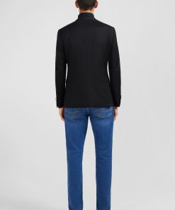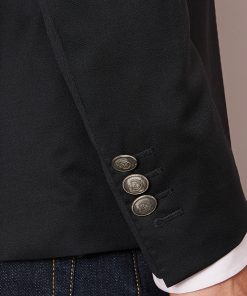 Élégant, ce blazer possède une coupe slim qui met en valeur la silhouette. La doublure en toile satinée contrastante est imprimée de l’emblématique nœud papillon rose en continu