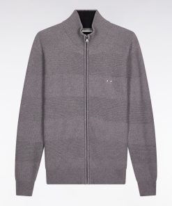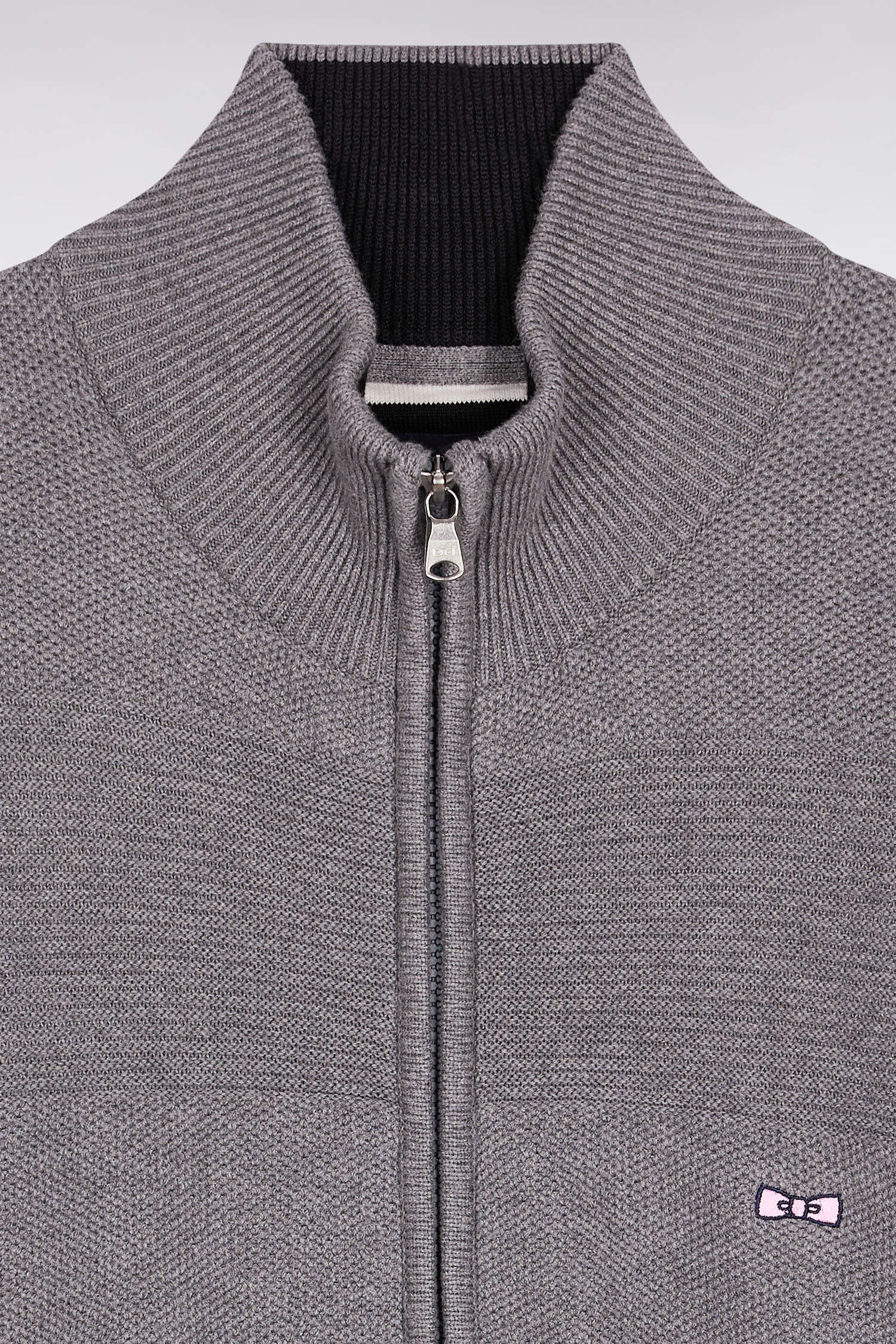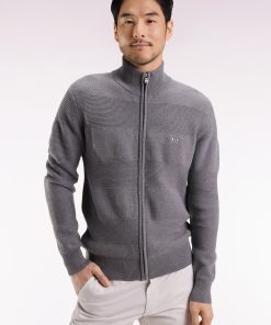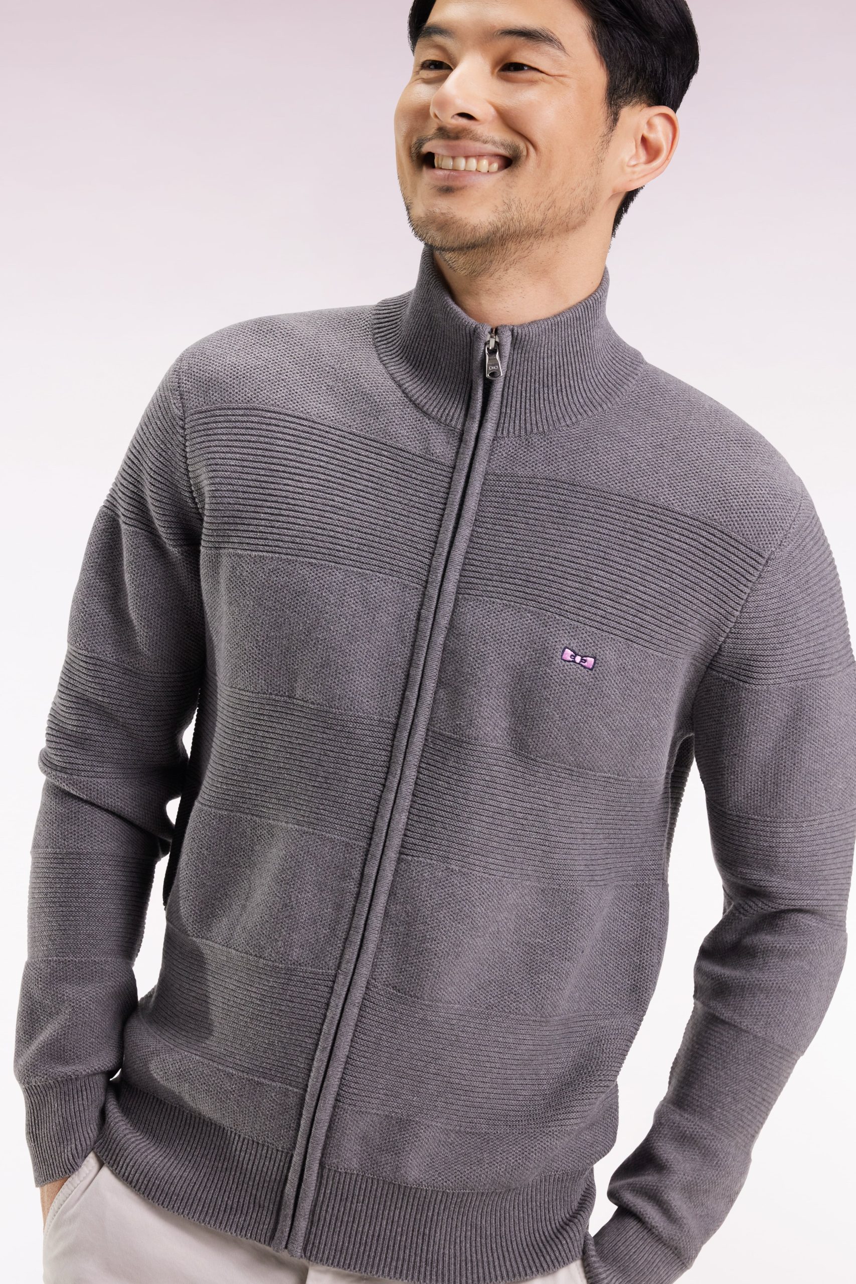 Ce cardigan zippé en coton tricoté séduit par ses jeux de points qui apportent en trompe-l’œil un effet de rayures rugby. Le col montant et la broderie poitrine soulignent l’attention aux détails chère à Eden Park. Ce cardigan col camionneur vous est proposé dans nos coloris signature
