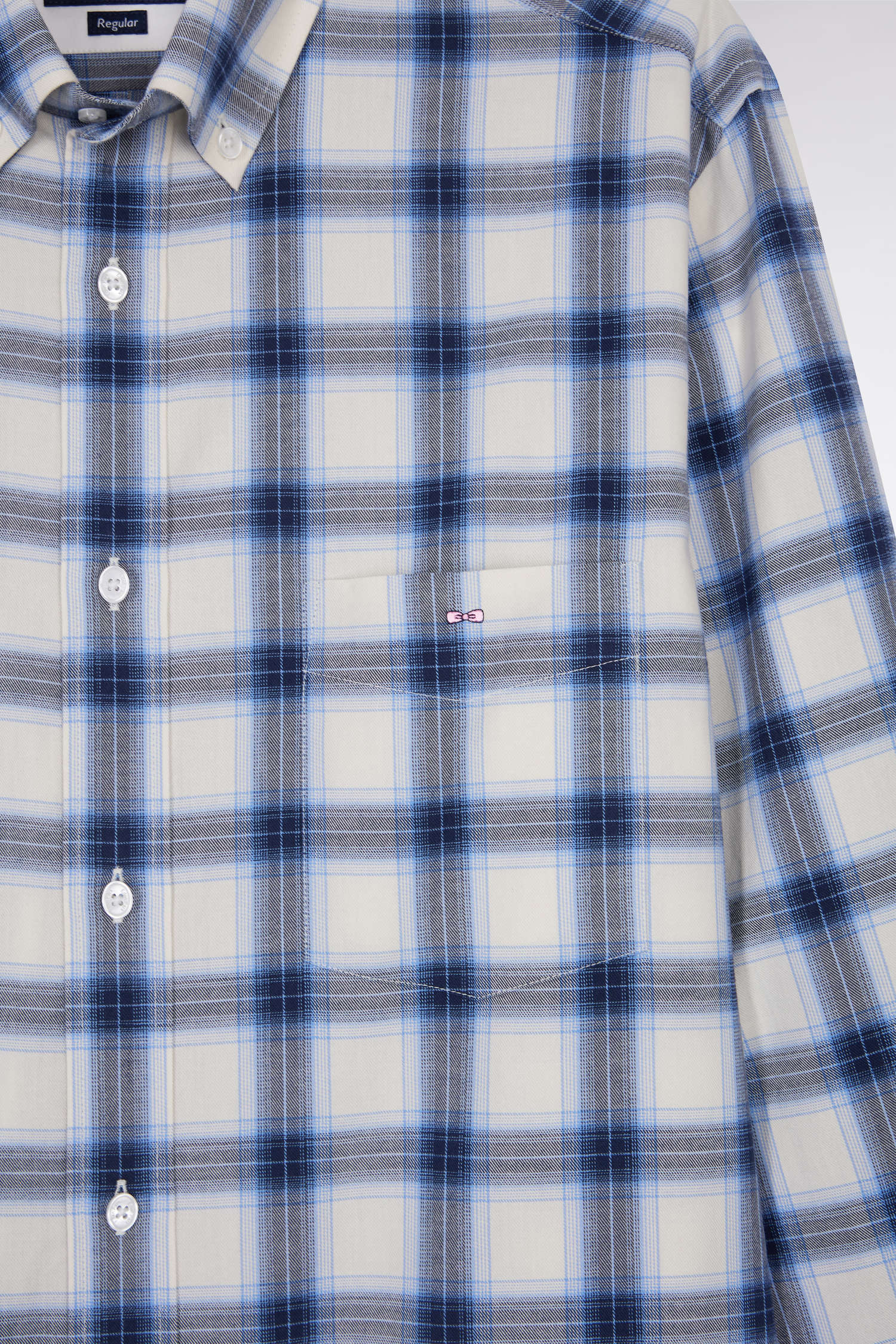 Intemporel du vestiaire masculin, cette chemise à carreaux en coton doux séduit par son confort et ses finitions soignées. Déclinée en bleu ciel, gris ou rose, elle se distingue par sa coupe droite facile à porter et son col boutonné qui structure la silhouette tout en mettant en valeur le port de tête. La poche poitrine brodée de l’emblème nœud papillon signe discrètement son appartenance à la notre maison française