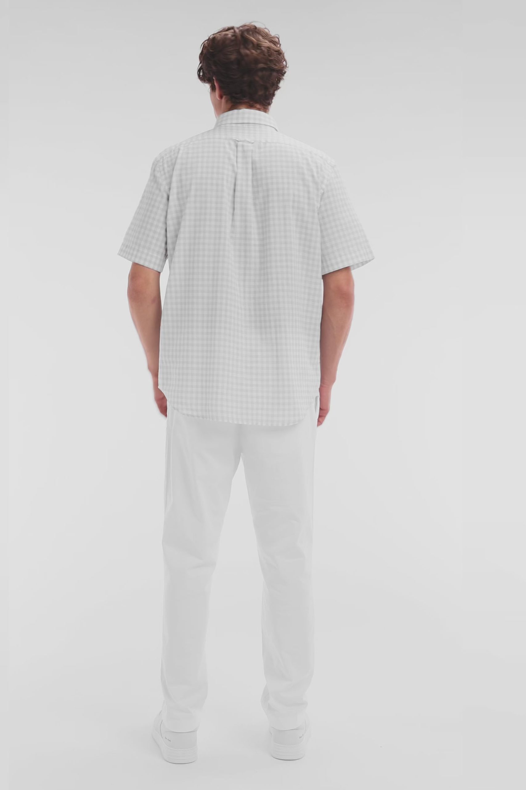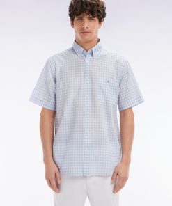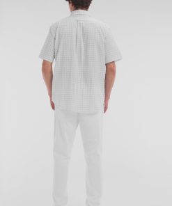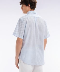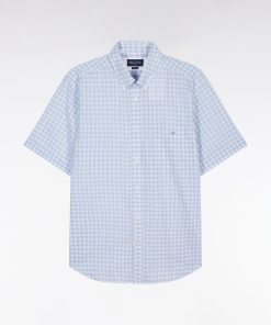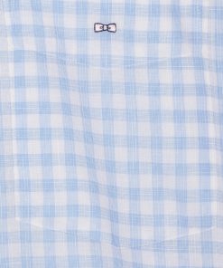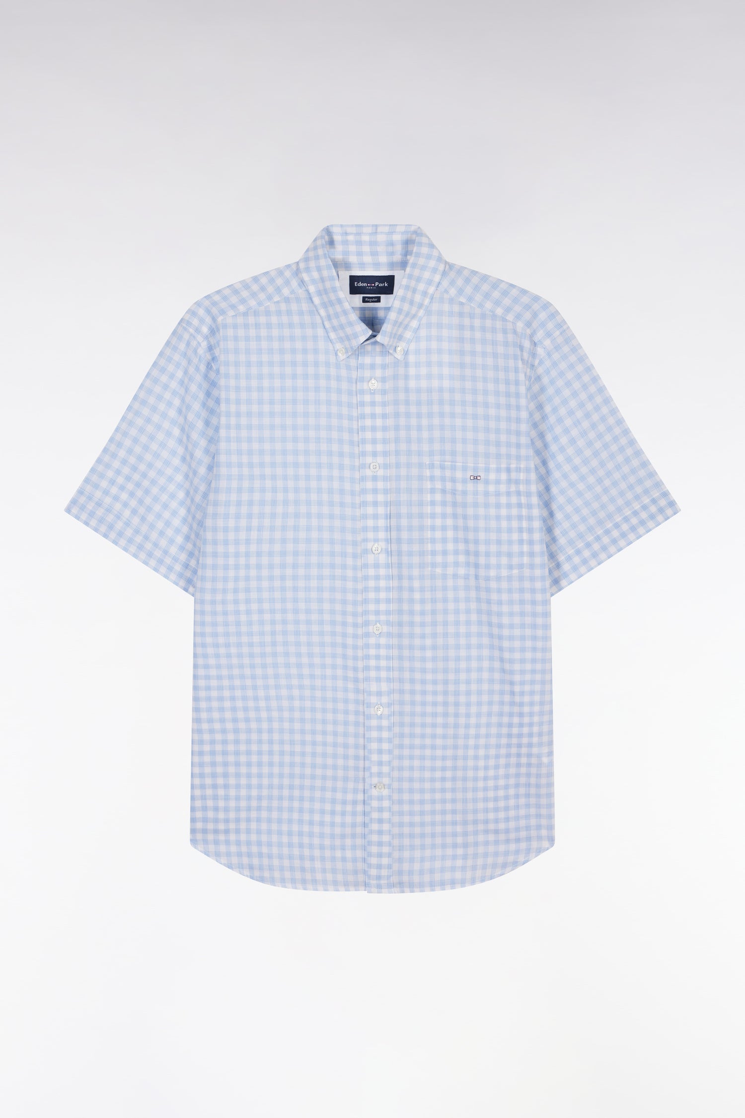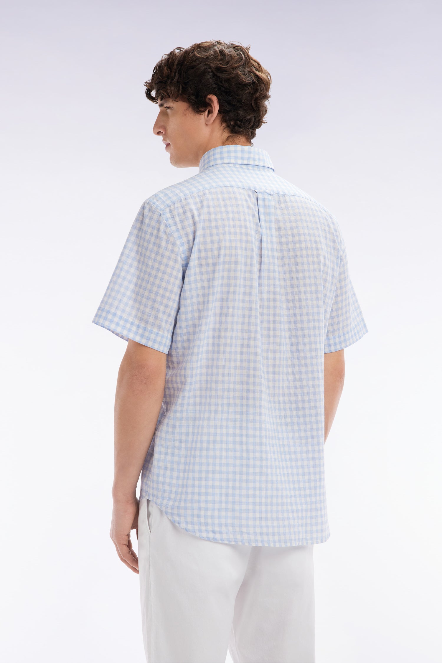 Léger et frais, notre tissu italien à carreaux vichy est conçu pour accompagner vos journées ensoleillées avec élégance. Cette chemisette à coupe droite offre un confort optimal grâce à son coton doux, son pli d’aisance au dos et son col à pointes boutonnées, idéaux pour une allure soignée sans effort. Déclinée en bleu clair ou foncé, elle se distingue par sa poche poitrine brodée du nœud papillon emblématique, signature raffinée de la Maison. Une pièce intemporelle qui incarne un chic décontracté parfait pour la saison printemps-été.