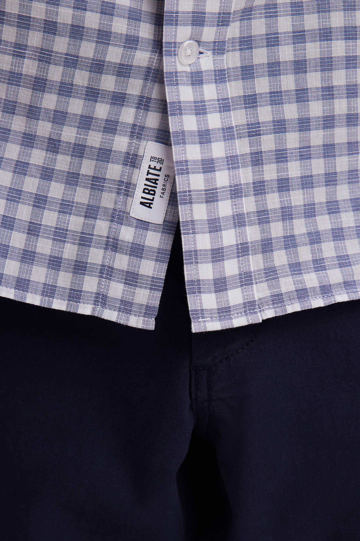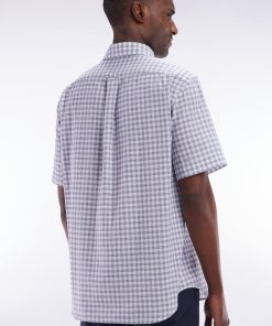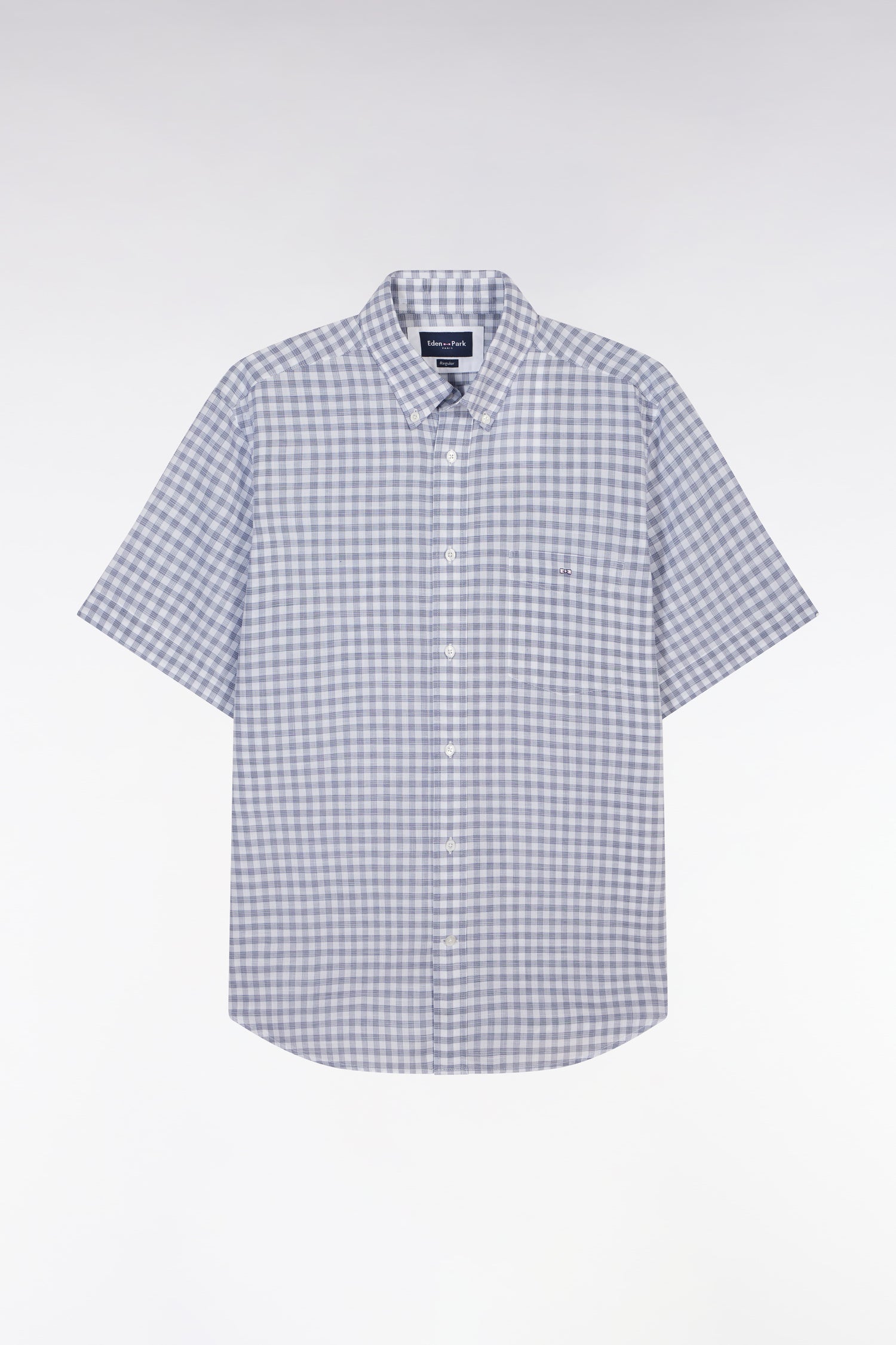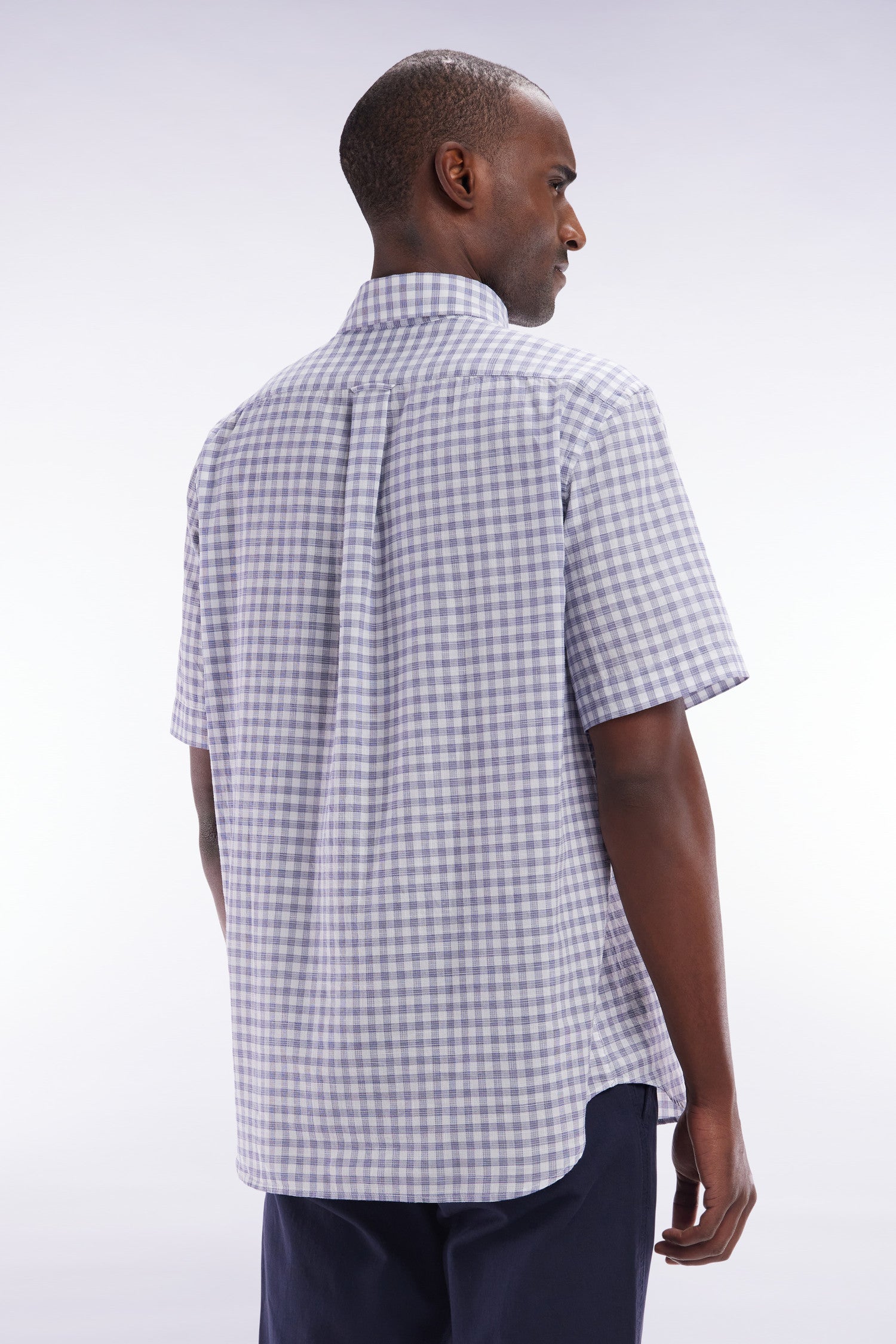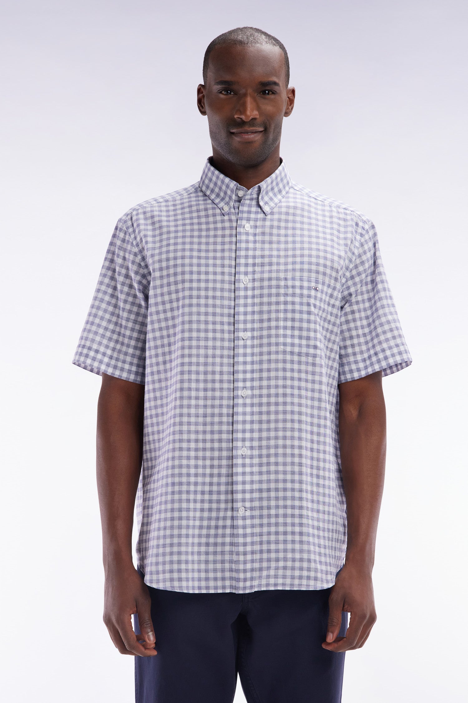 Léger et frais, notre tissu italien à carreaux vichy est conçu pour accompagner vos journées ensoleillées avec élégance. Cette chemisette à coupe droite offre un confort optimal grâce à son coton doux, son pli d’aisance au dos et son col à pointes boutonnées, idéaux pour une allure soignée sans effort. Déclinée en bleu clair ou foncé, elle se distingue par sa poche poitrine brodée du nœud papillon emblématique, signature raffinée de la Maison. Une pièce intemporelle qui incarne un chic décontracté parfait pour la saison printemps-été.