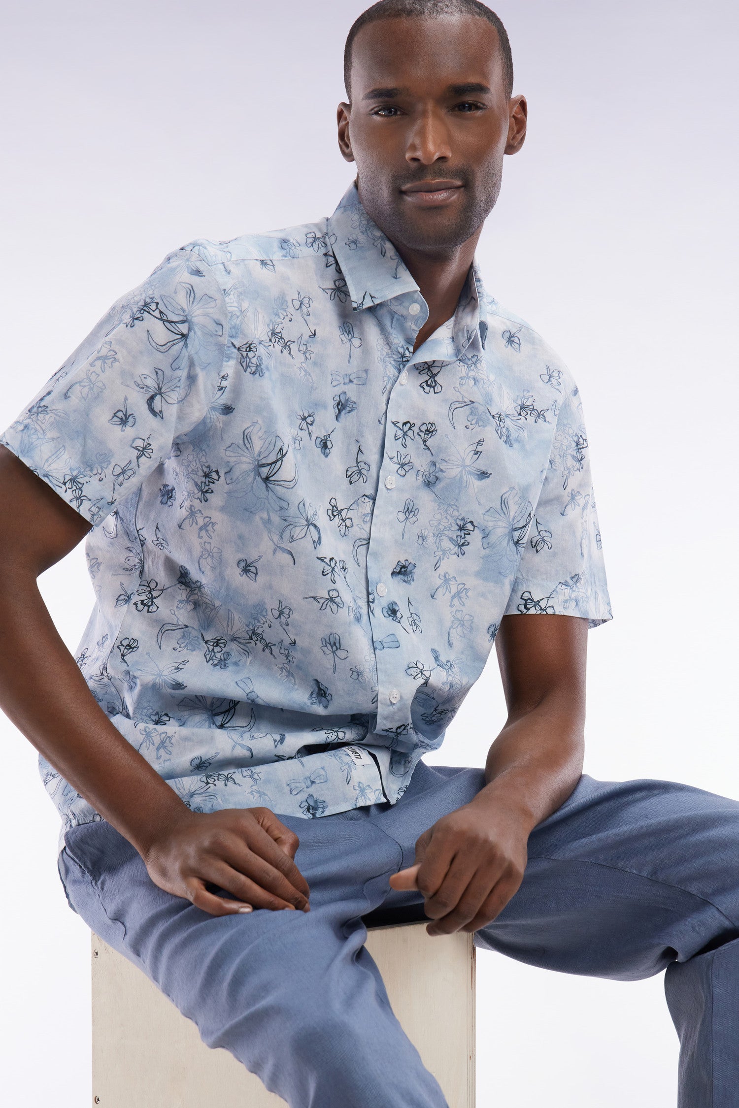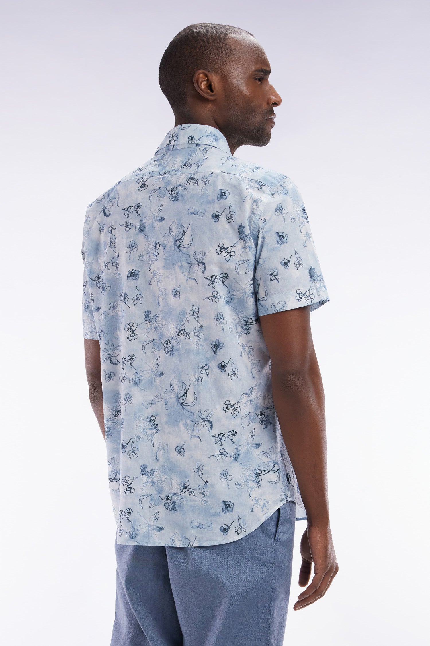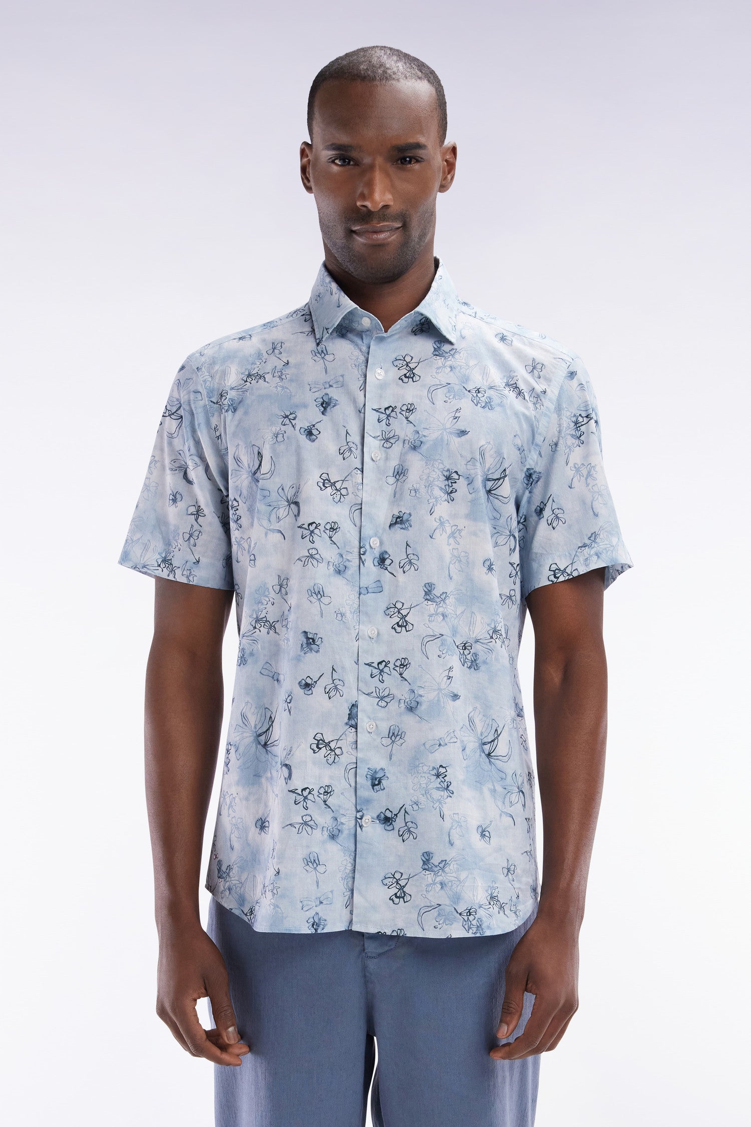 Cette chemisette bleu gris à la coupe ajustée séduit les hommes en quête d’élégance par son imprimé floral, travaillé avec raffinement. Ses effets de couleur ombrés ajoutent profondeur et élégance, faisant de cette pièce un incontournable pour une allure estivale résolument unique.