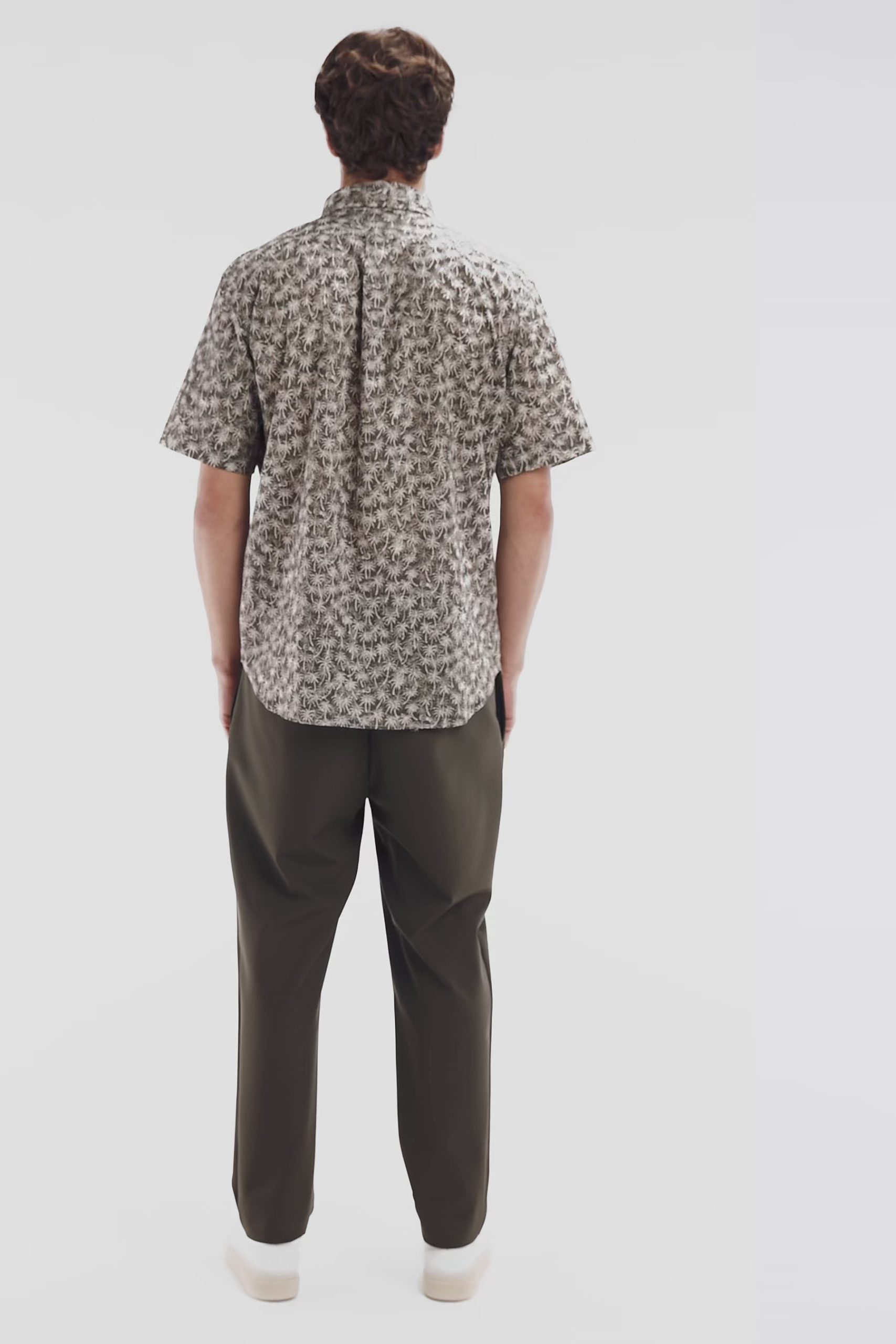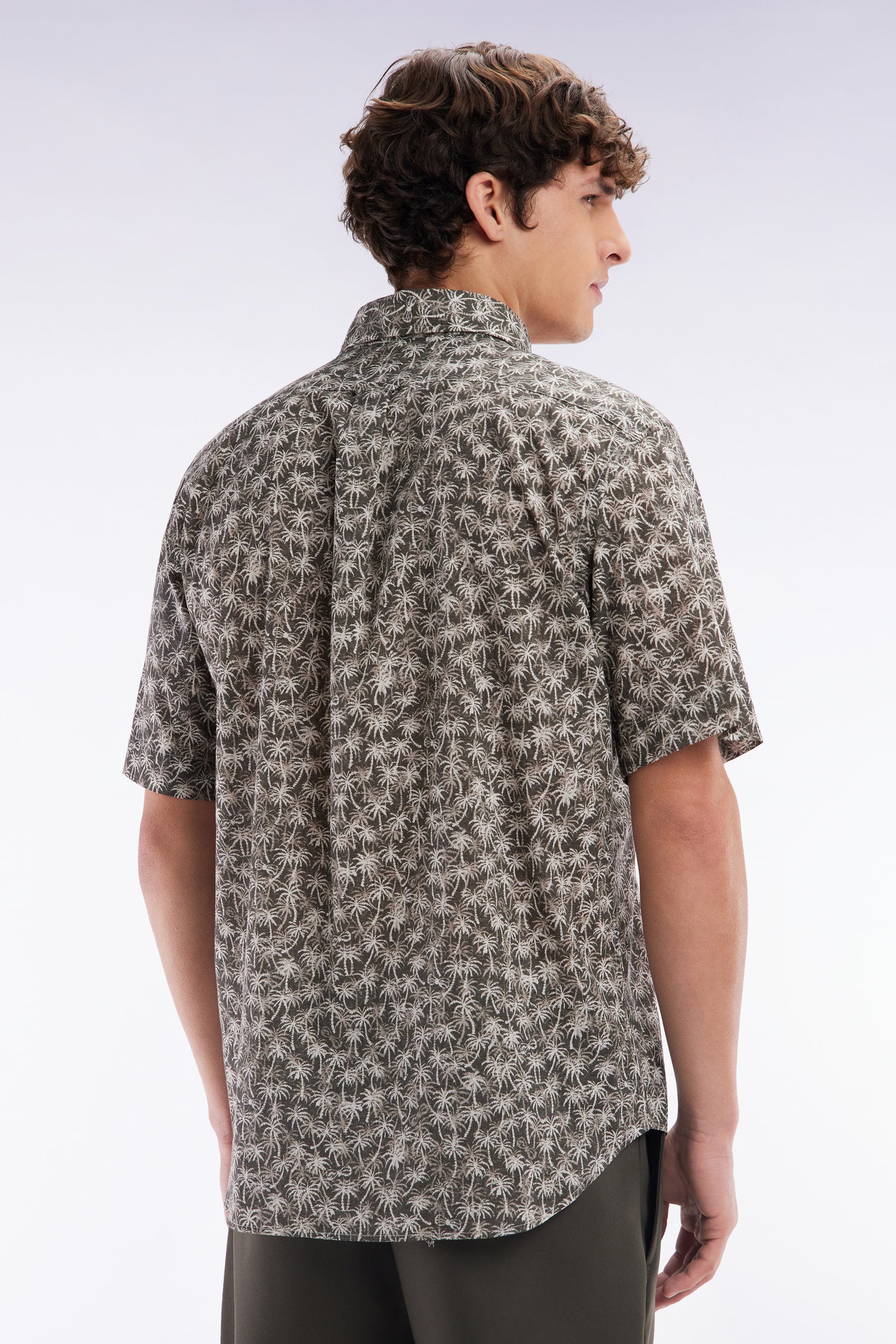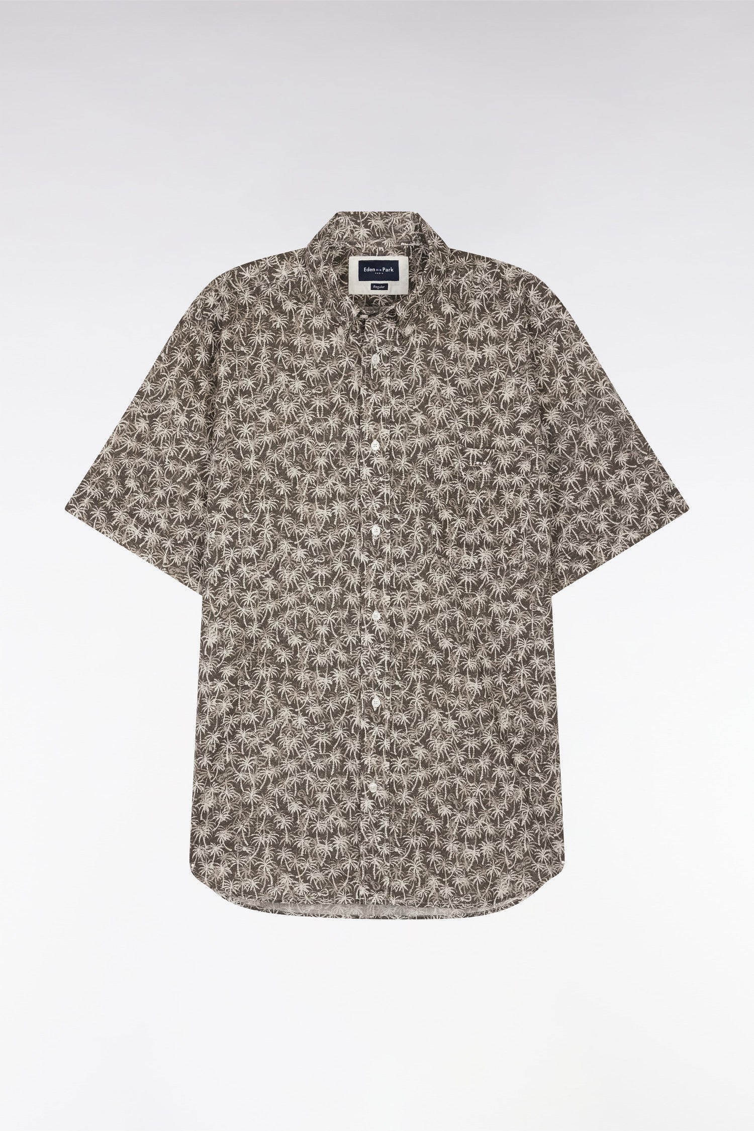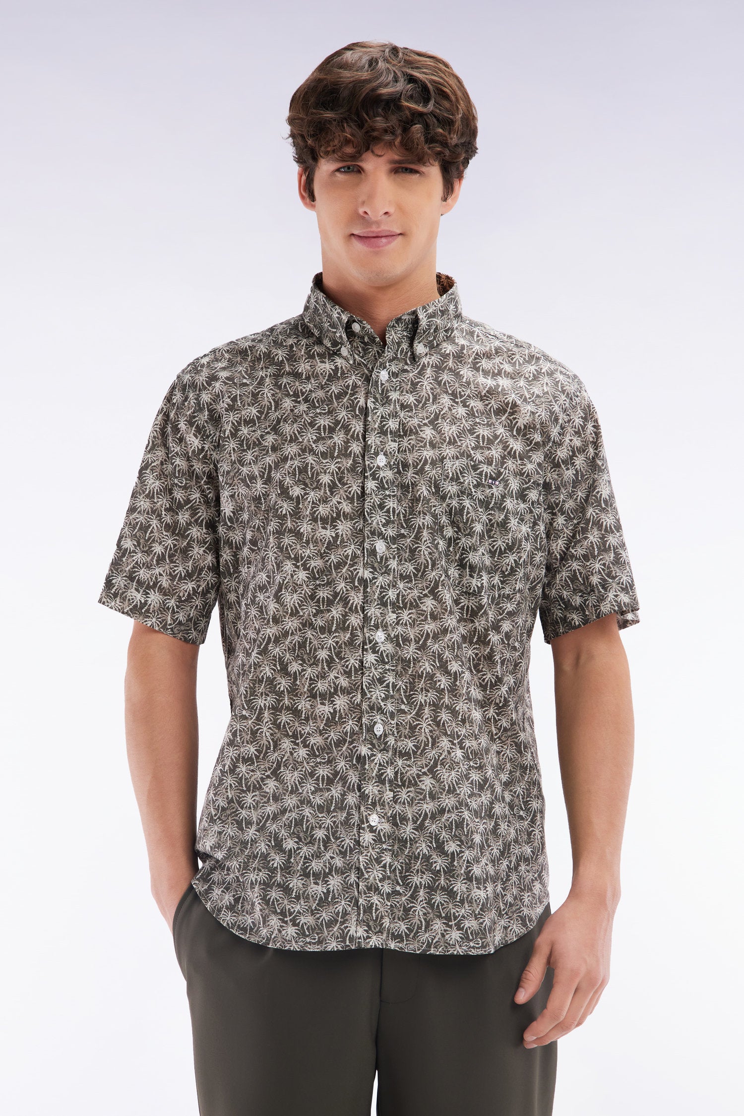 Avec son microimprimé palmiers, cette chemisette coupe droite apporte une touche légère et estivale au vestiaire masculin. Son col à pointes boutonnées et ses poches plaquées allient praticité et style. Déclinée en deux coloris, elle est parfaite pour une tenue décontractée, à porter aussi bien en ville qu’en bord de mer.