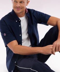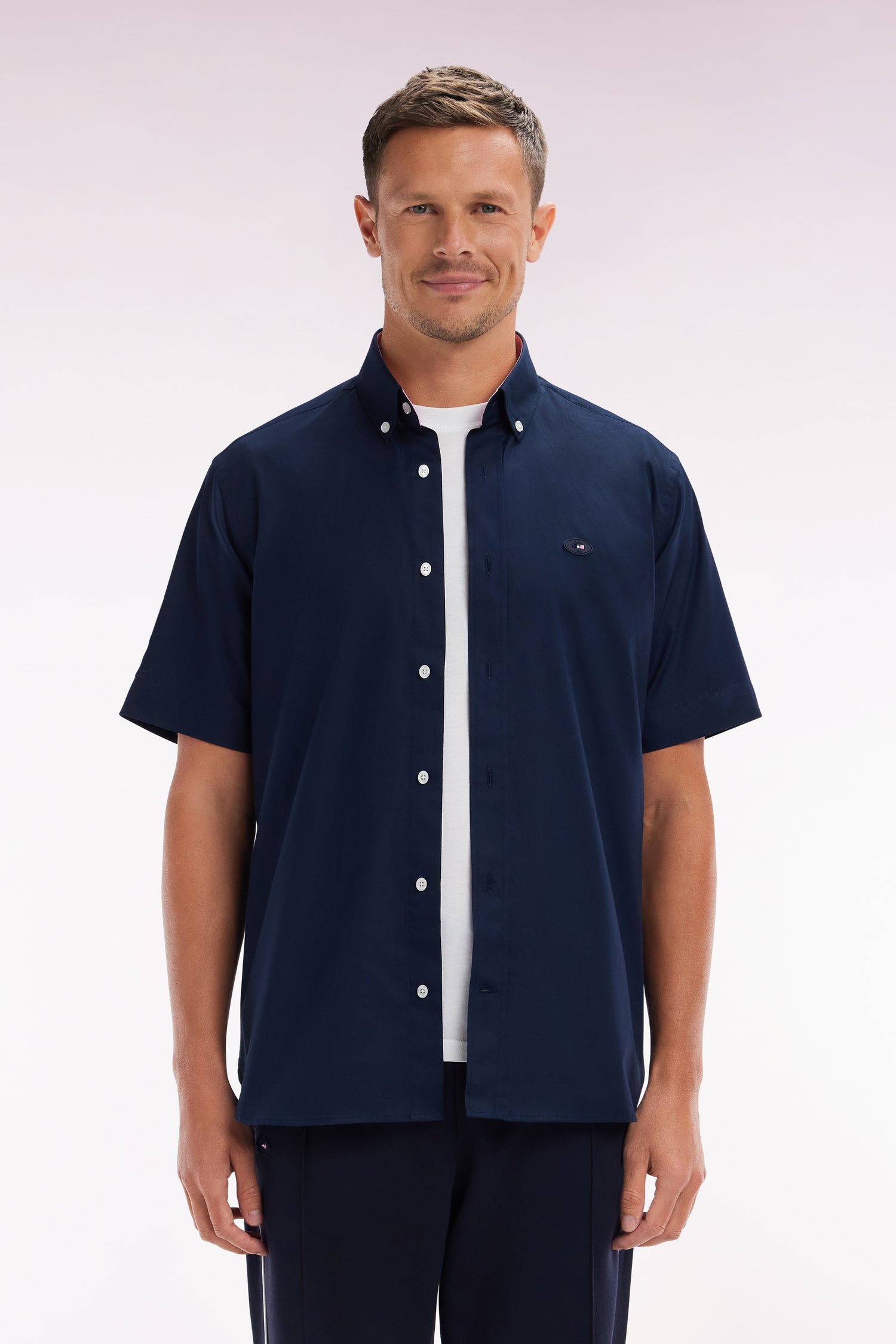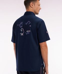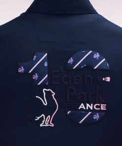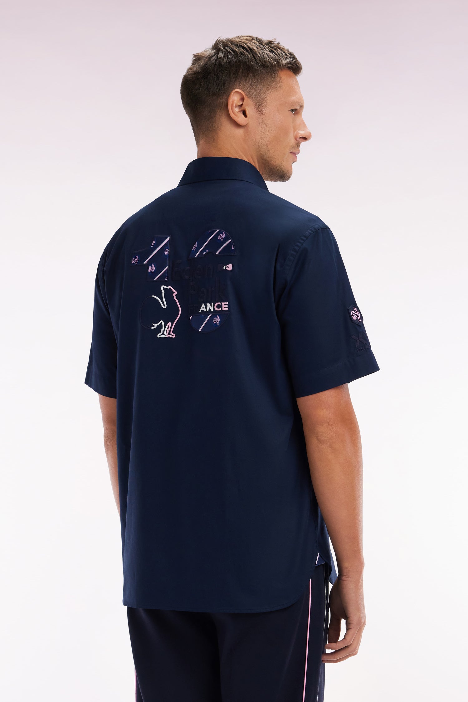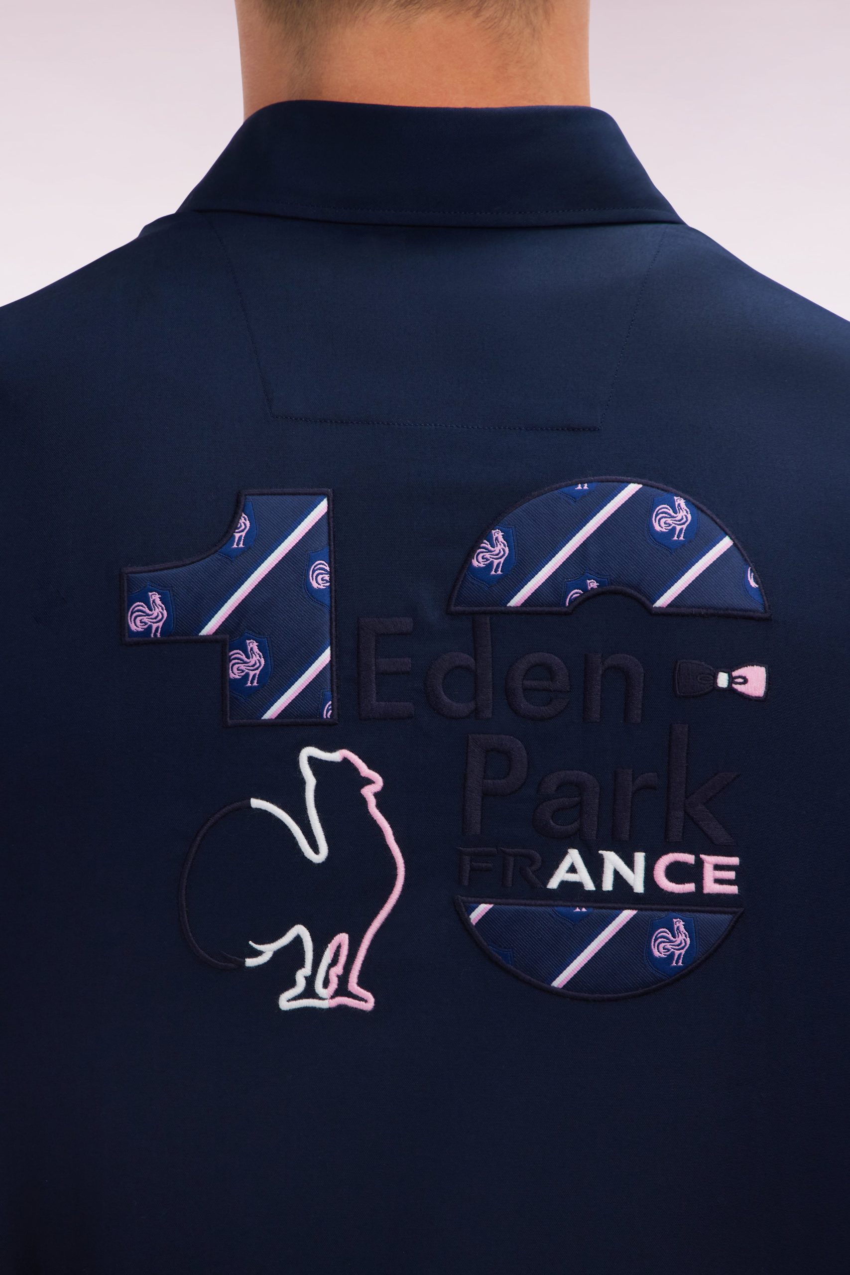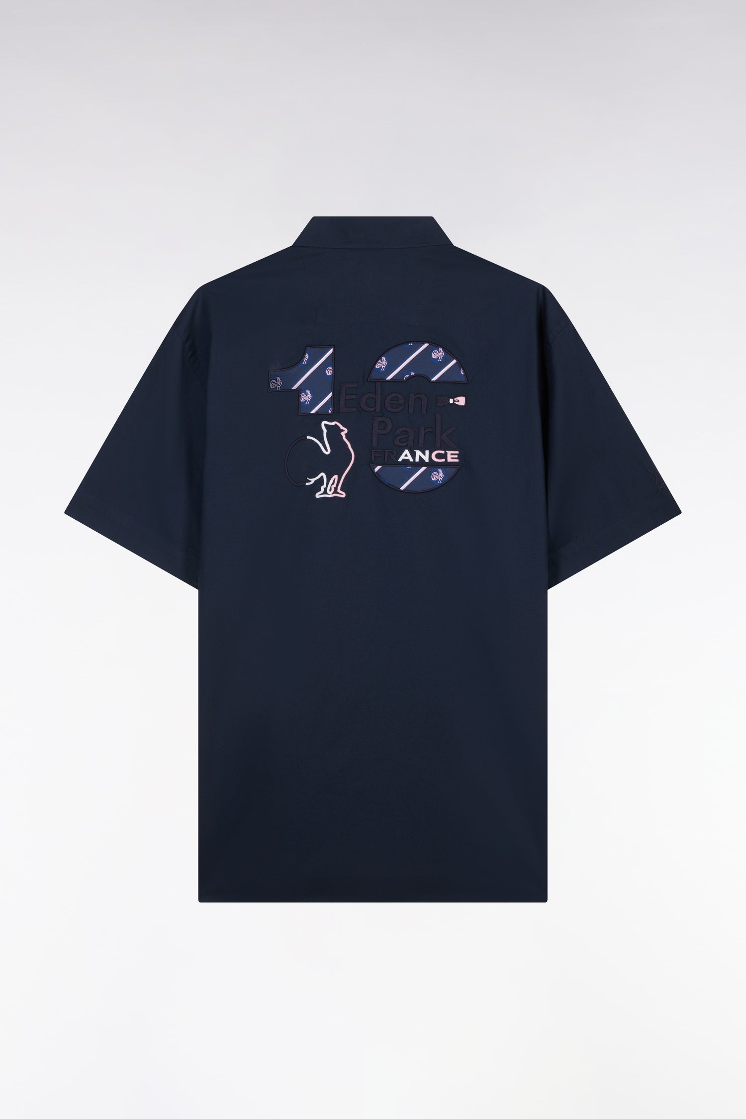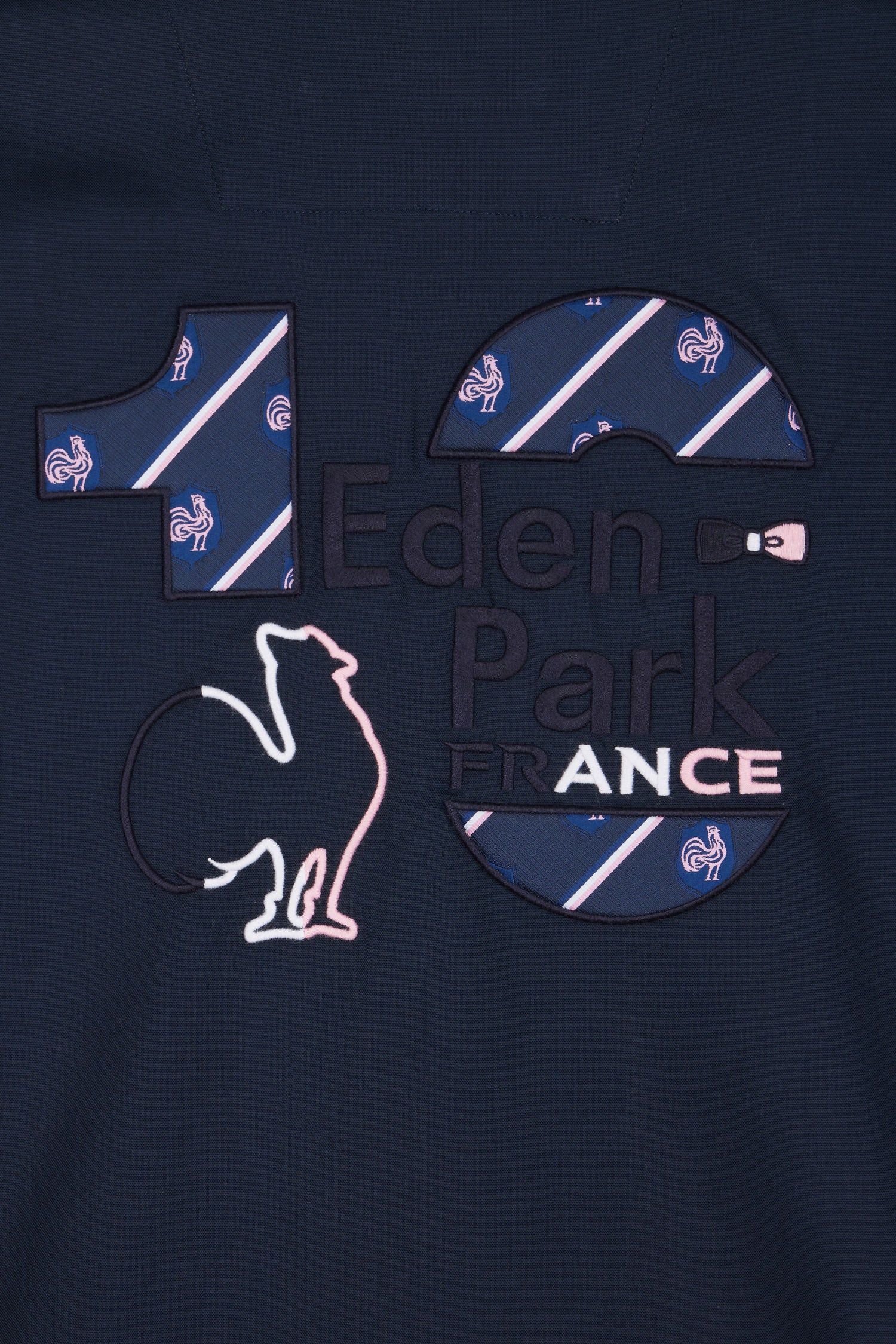 Cette chemisette en coton marine allie élégance et esprit sportif avec sa large broderie XV de France Eden Park dans le dos, sublimée par une application de tissu cravate. Dotée d’un col à pointes boutonnées et de finitions soignées, elle se porte aussi bien avec un chino qu’un jean pour une allure résolument chic et décontractée.