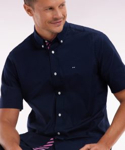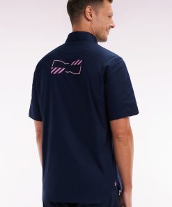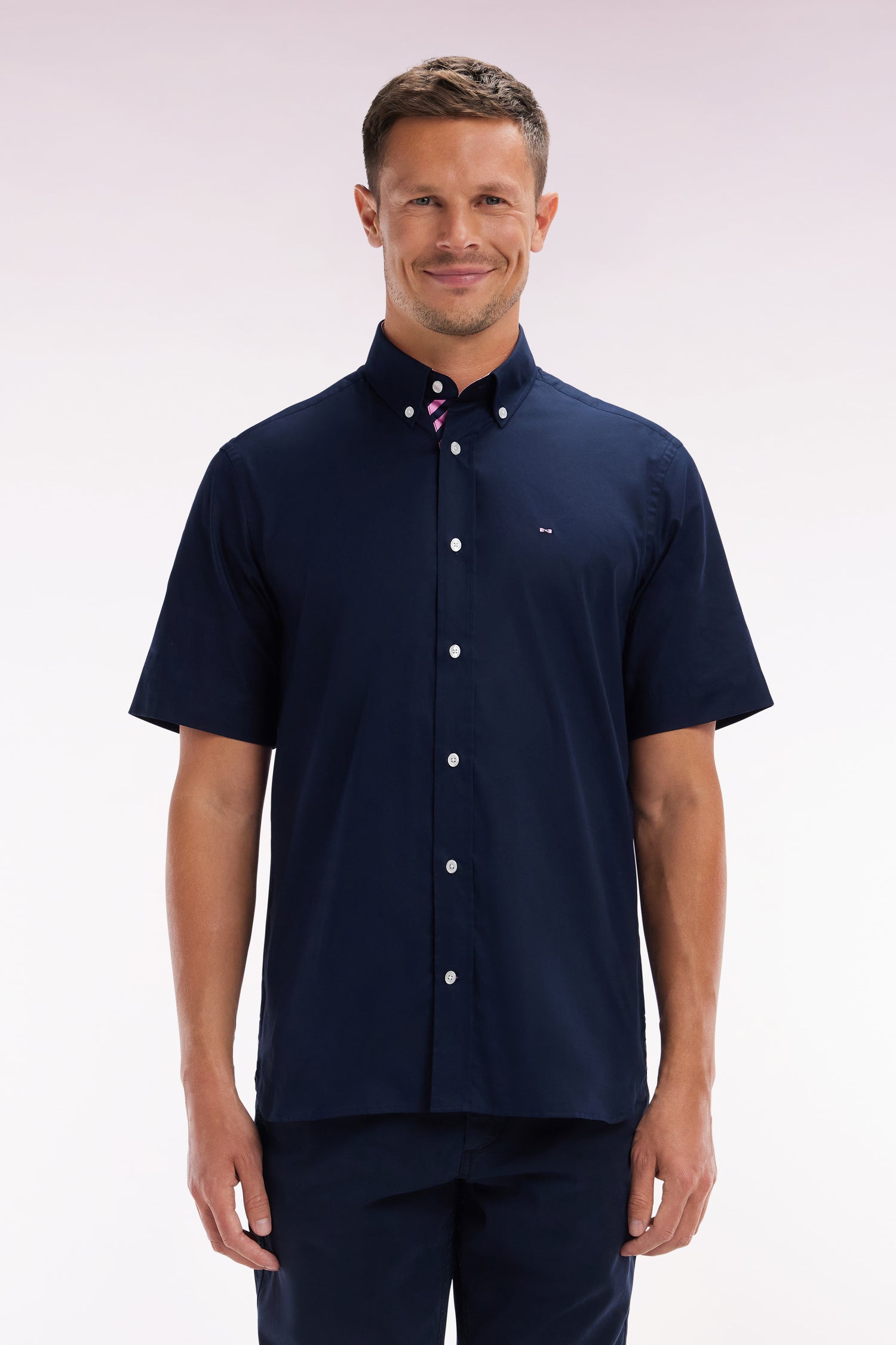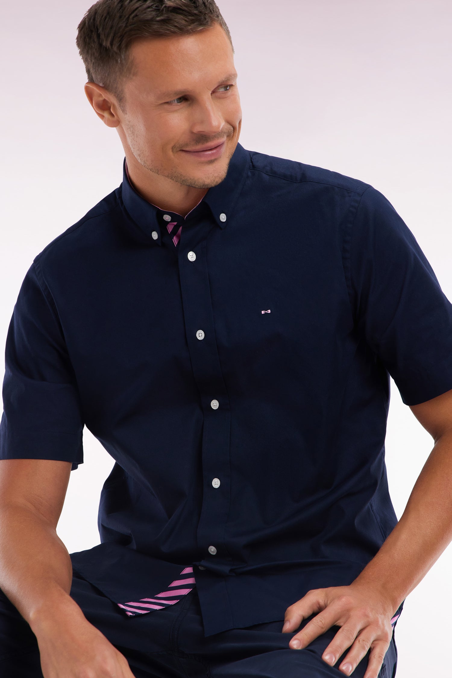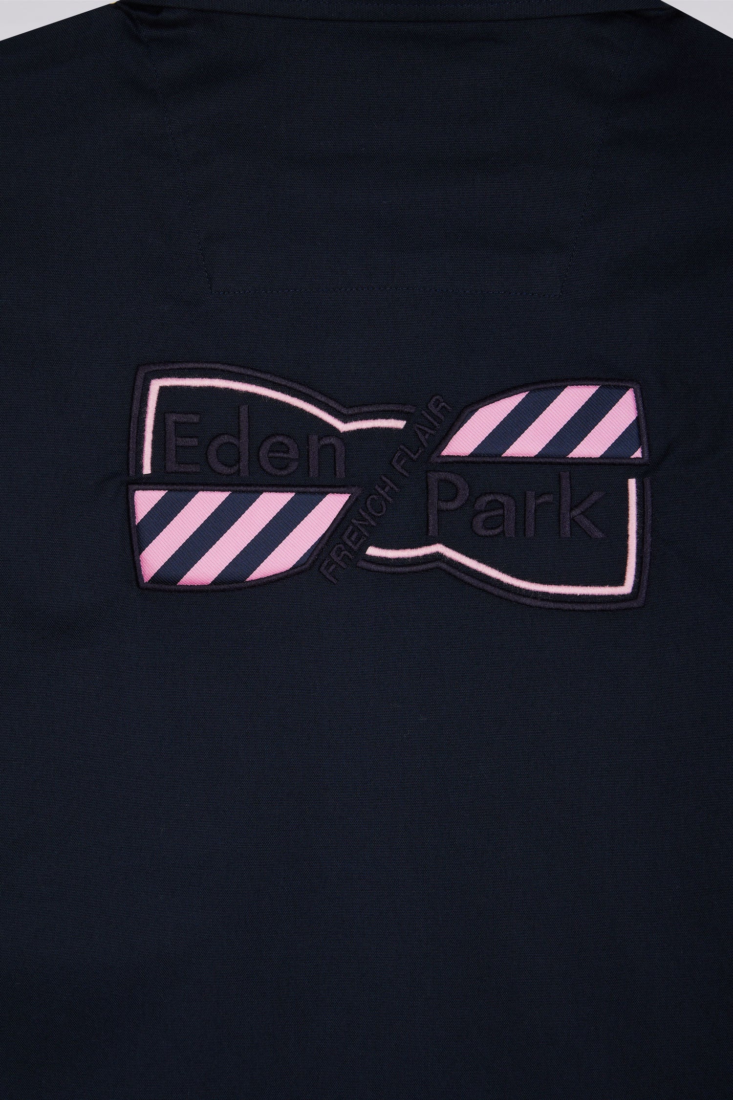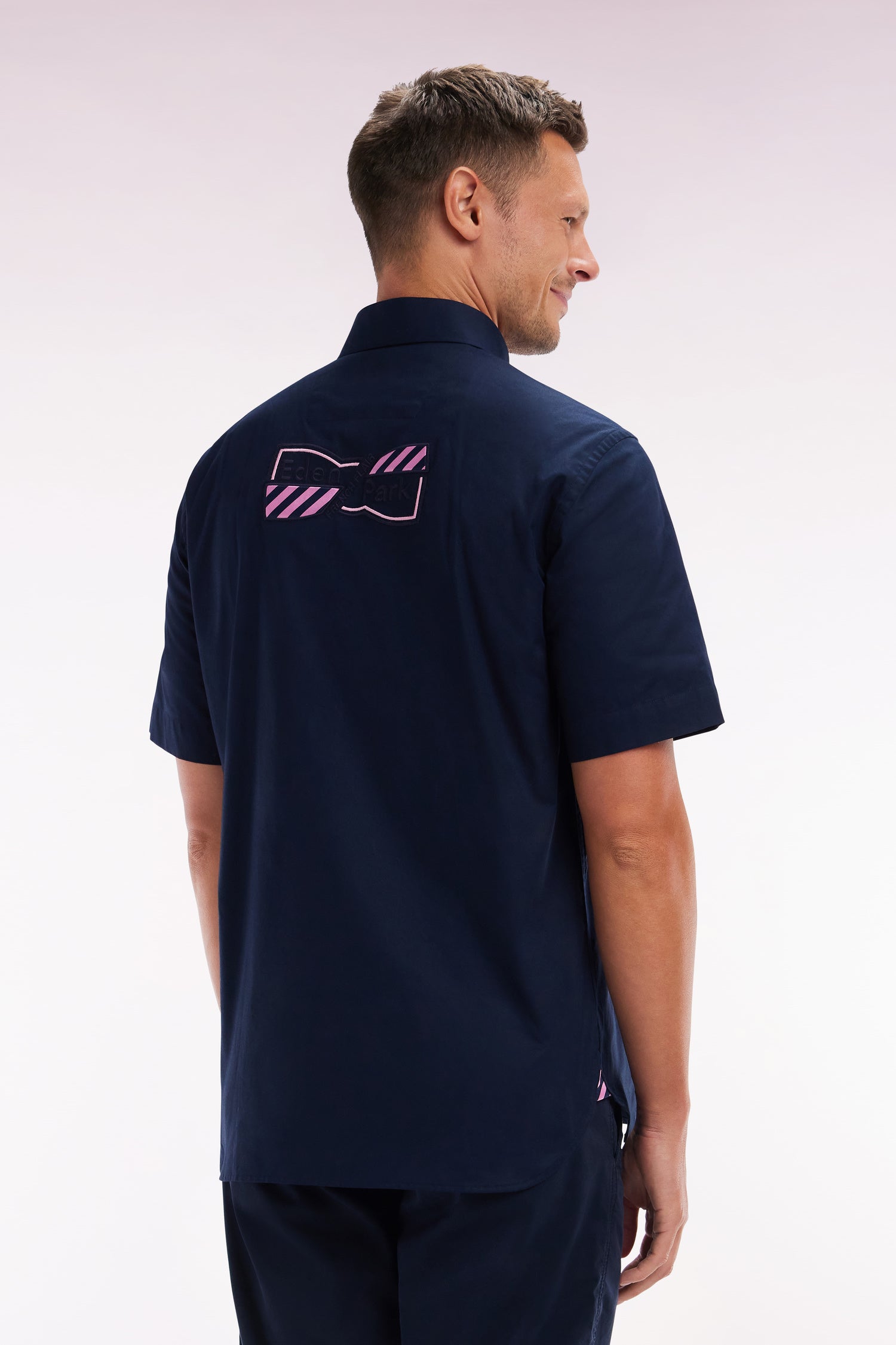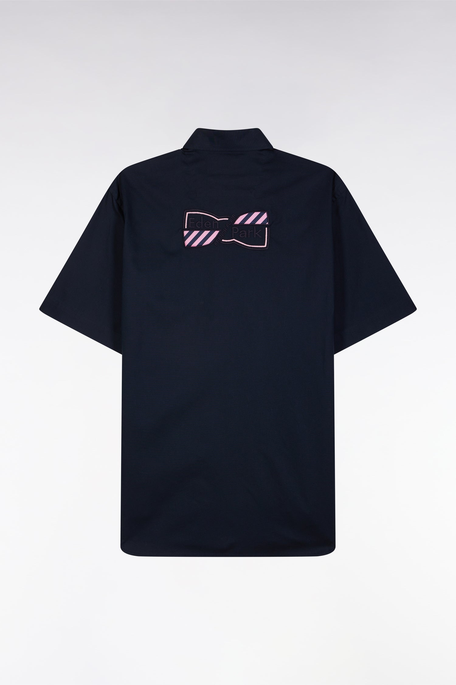 Cette chemisette en coton pinpoint, à la coupe droite, incarne parfaitement le style sport-chic de nos collections. Brodée d’un nœud papillon au dos, elle se distingue par ses touches élégantes, comme l’incrustation de tissu cravate rayé rehaussant la broderie et l’intérieur de la patte de boutonnage.