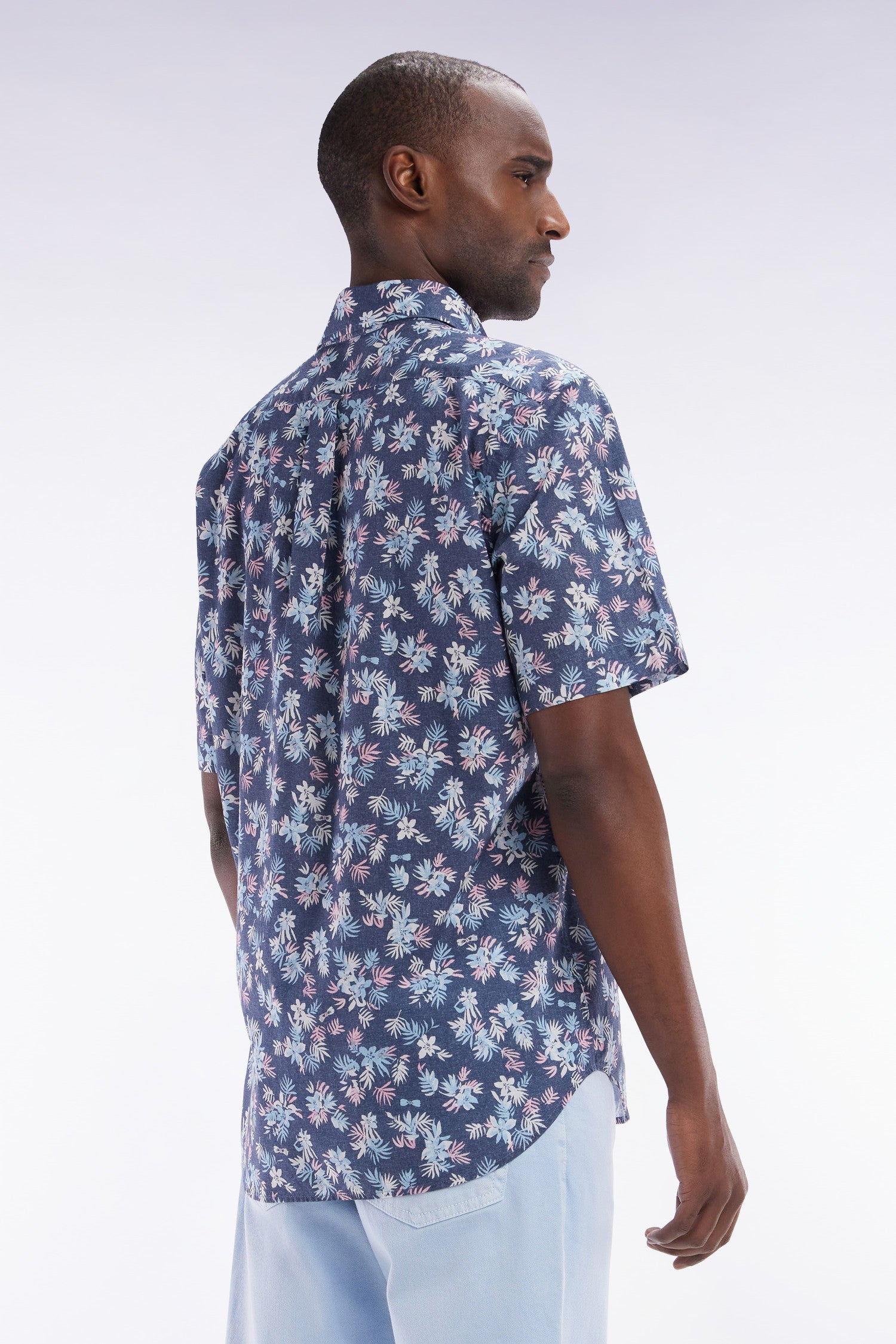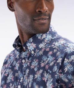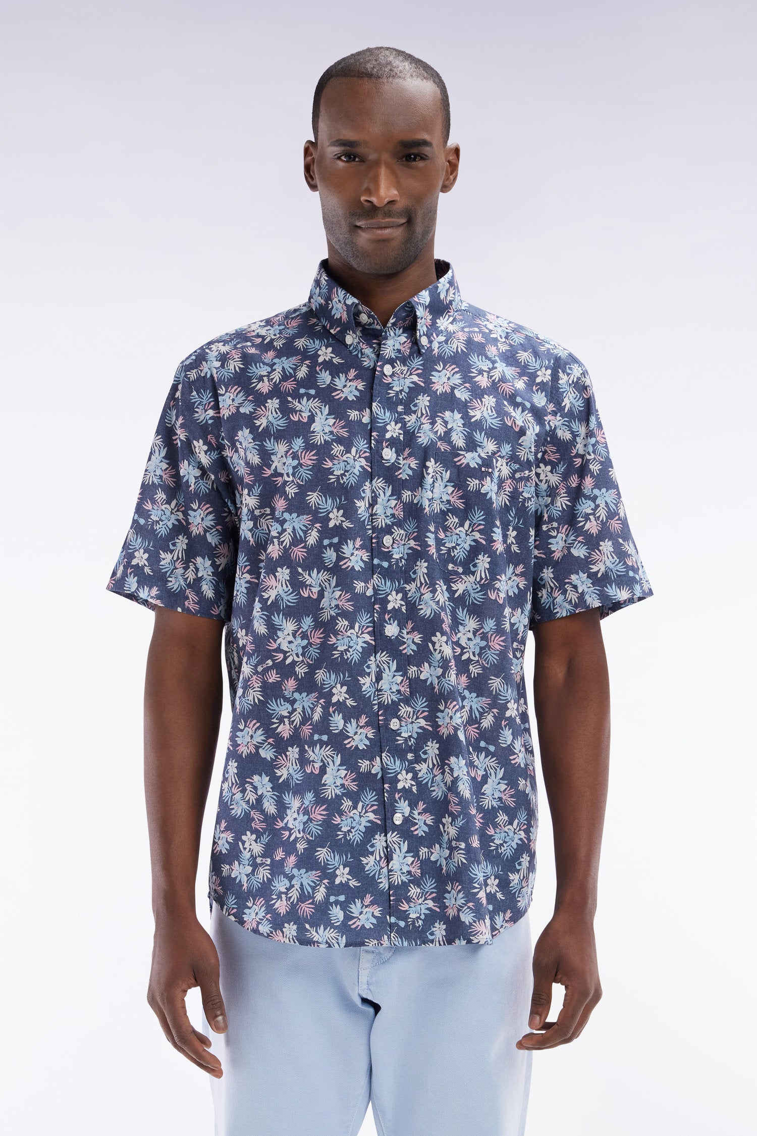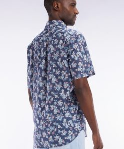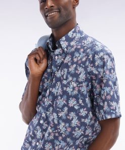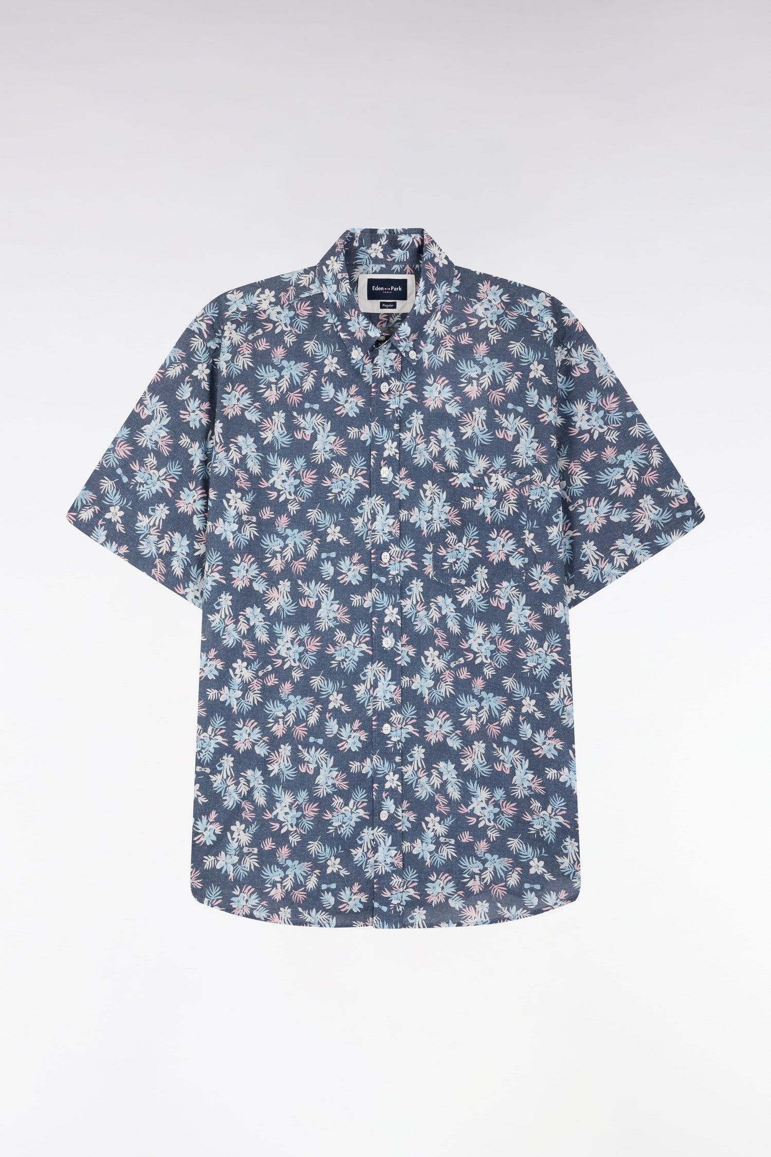Eden Park Homme Men’s Chemise À Manches Courtes En Coton Marine Imprimé Fleurs Coupe Droite