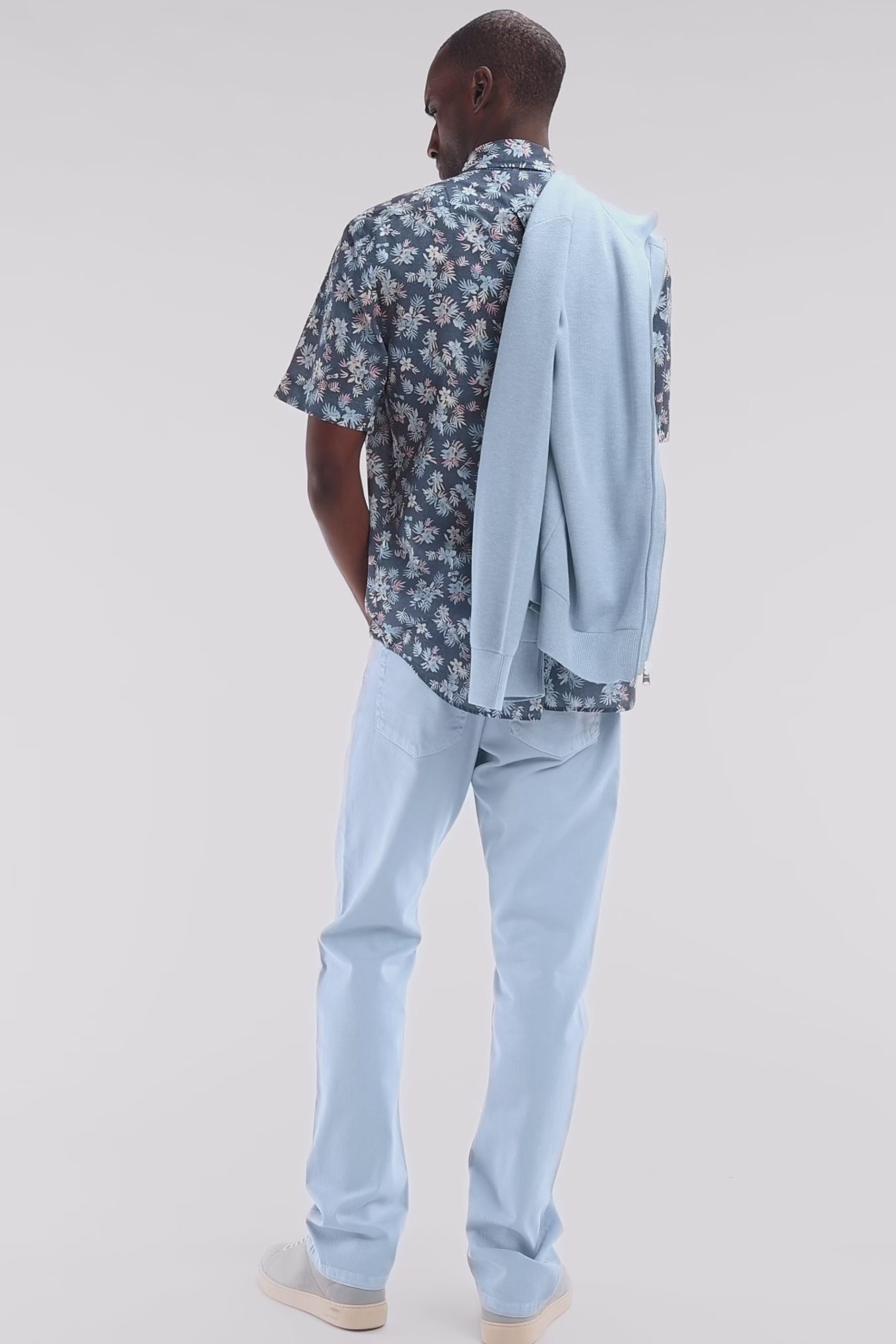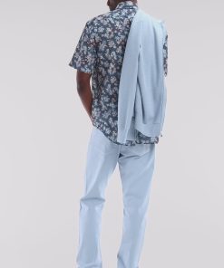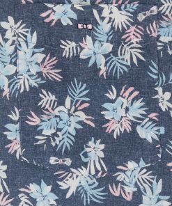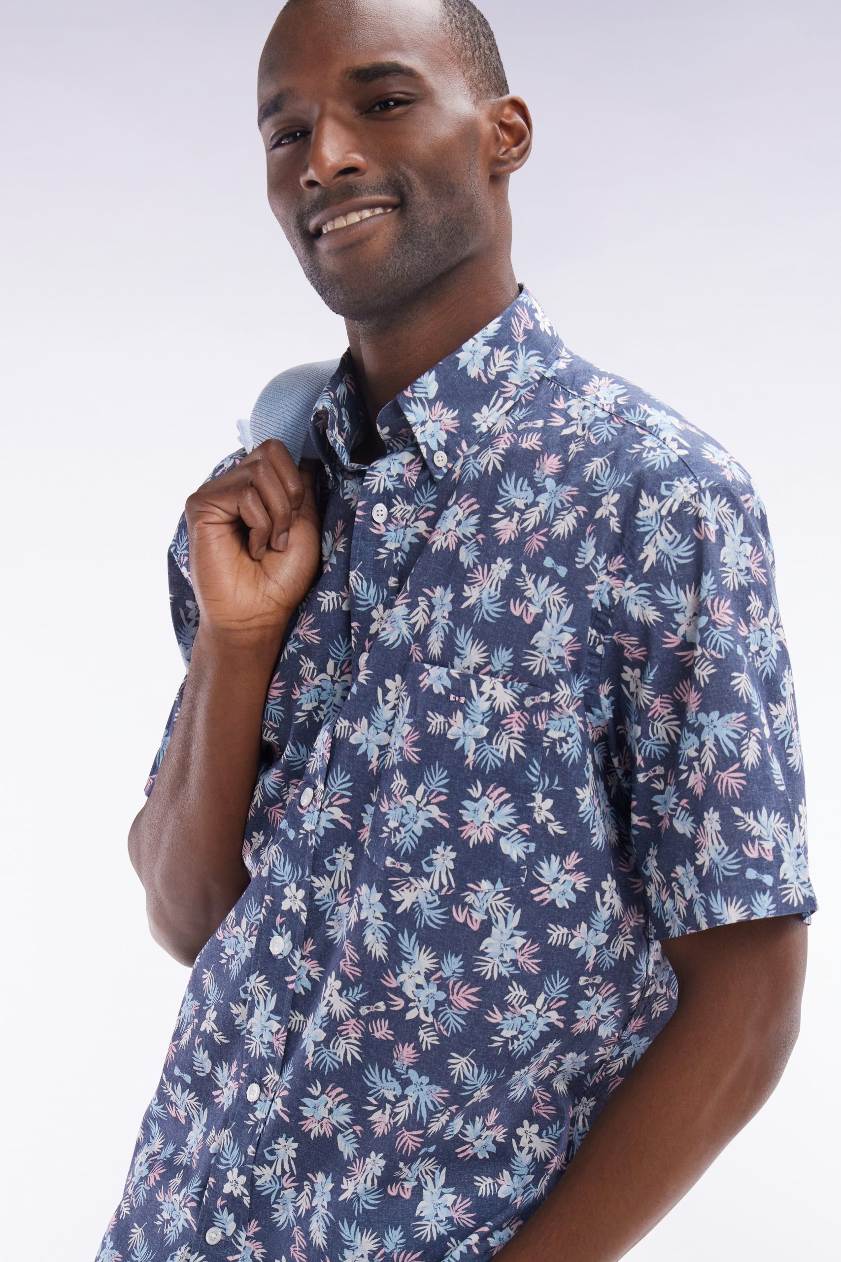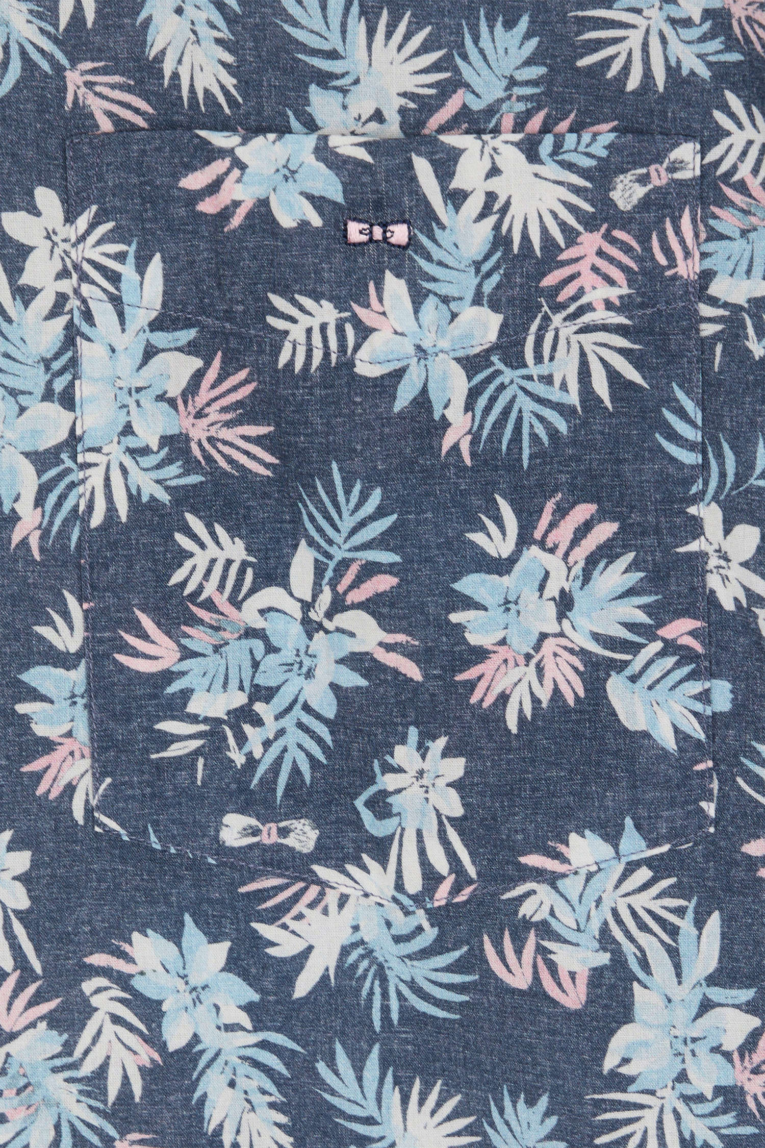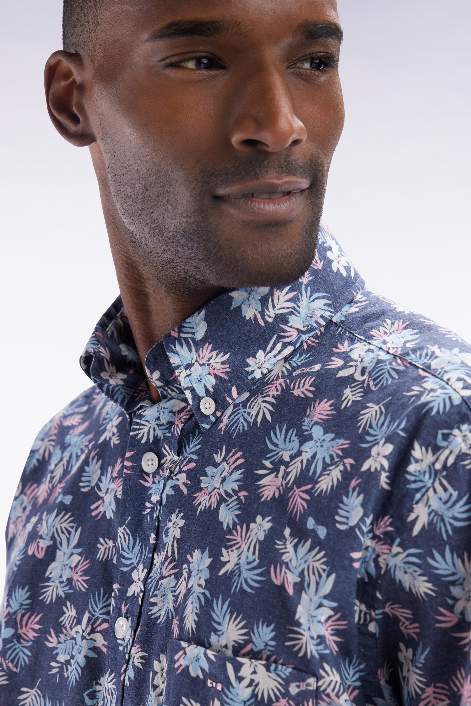 Eden Park Homme Men’s Chemise À Manches Courtes En Coton Marine Imprimé Fleurs Coupe Droite