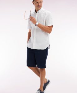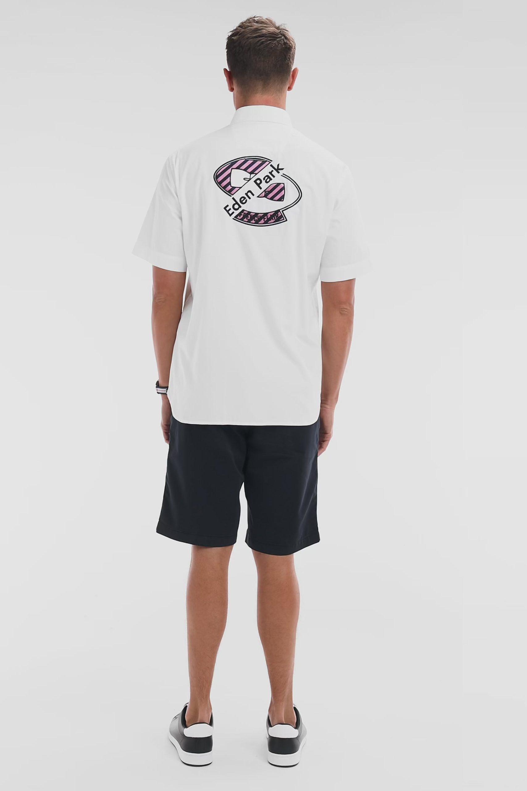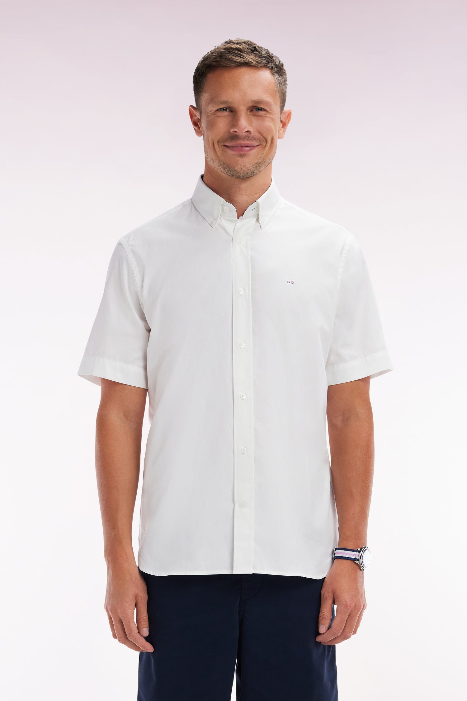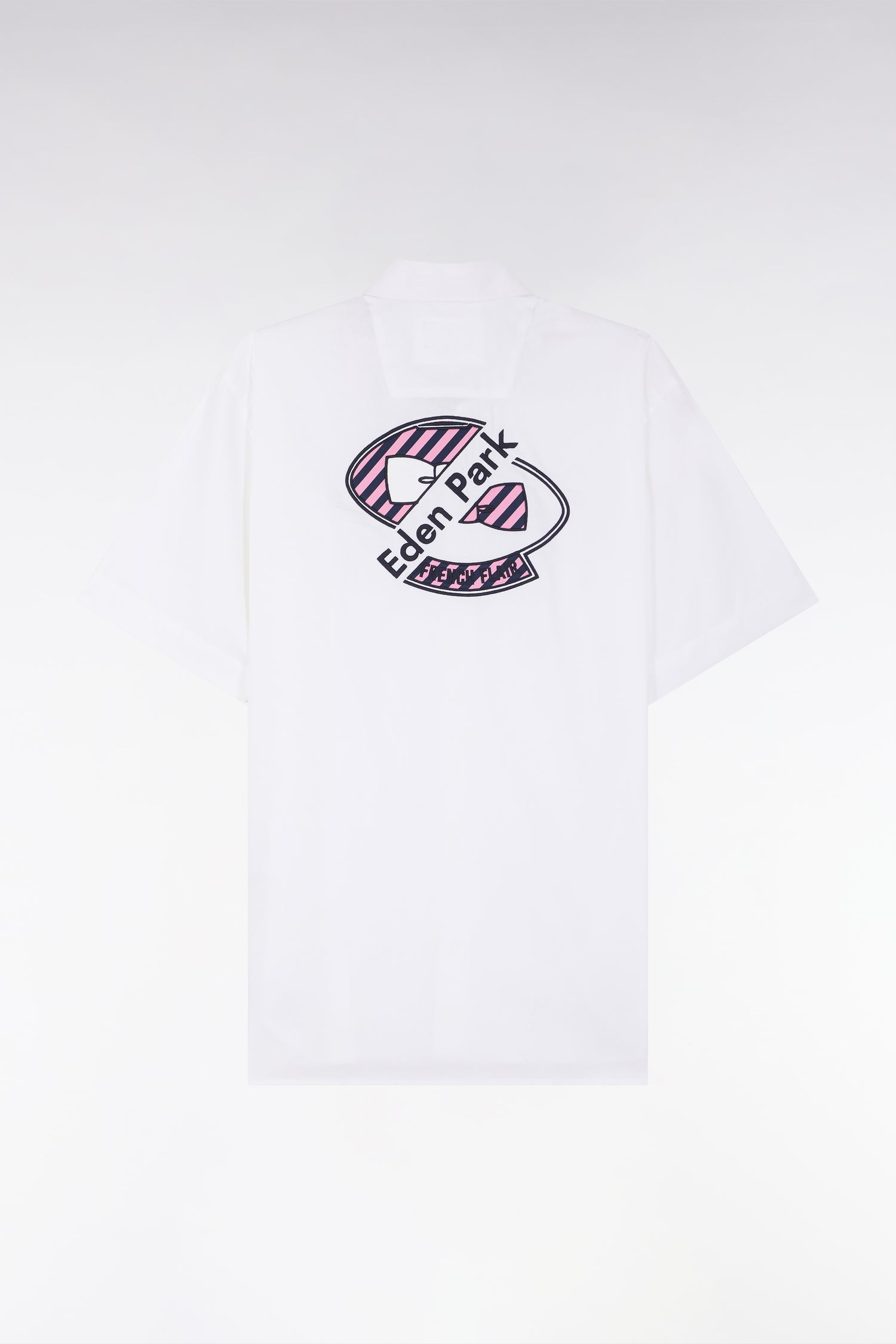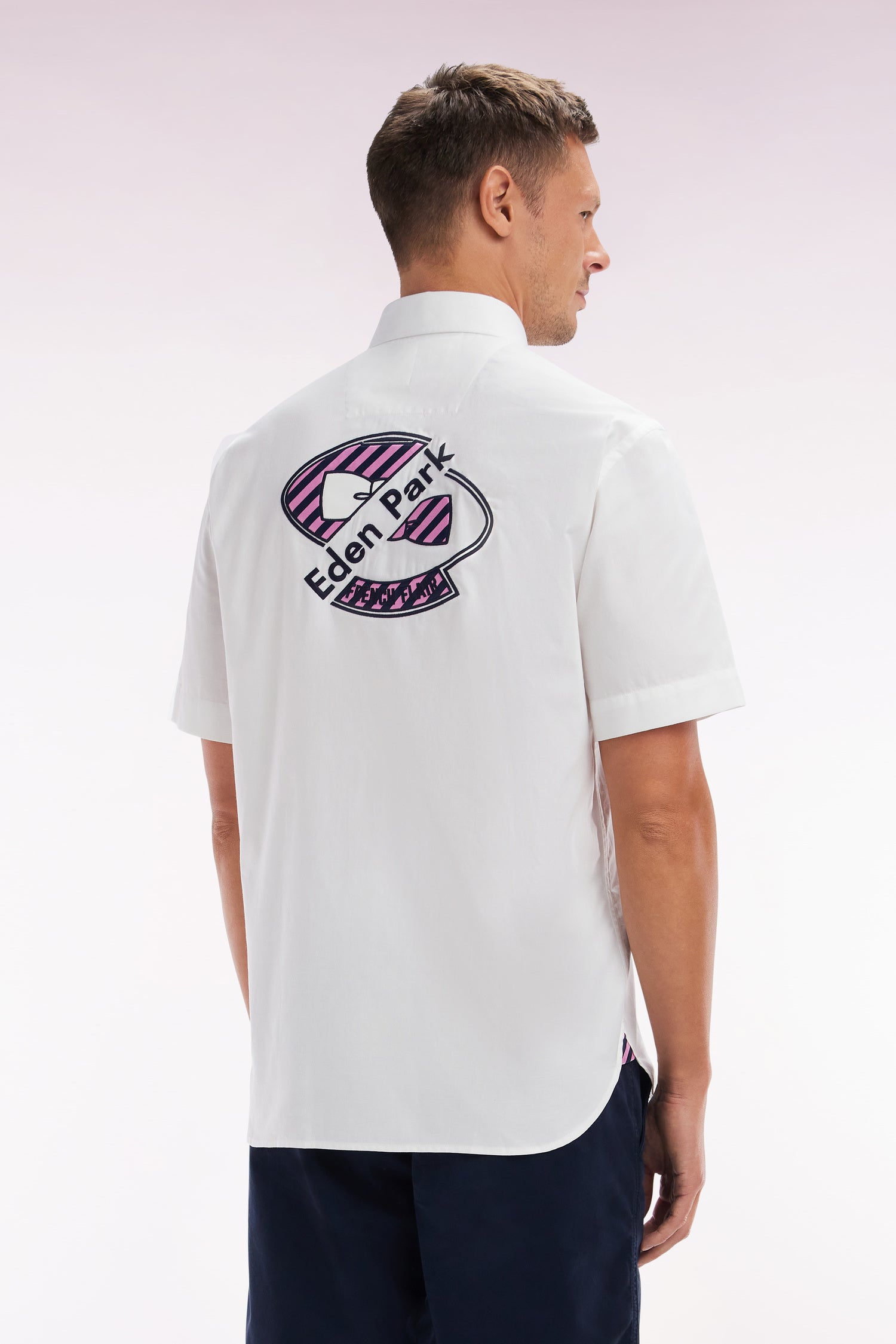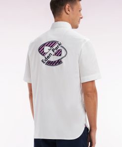 Eden Park Homme Men’s Chemise À Manches Courtes En Popeline De Coton Blanc Broderie Dos Cerc