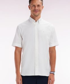 Eden Park Homme Men’s Chemise À Manches Courtes En Popeline De Coton Blanc Broderie Dos Cerc
