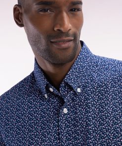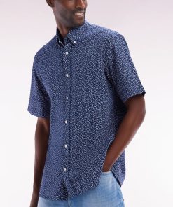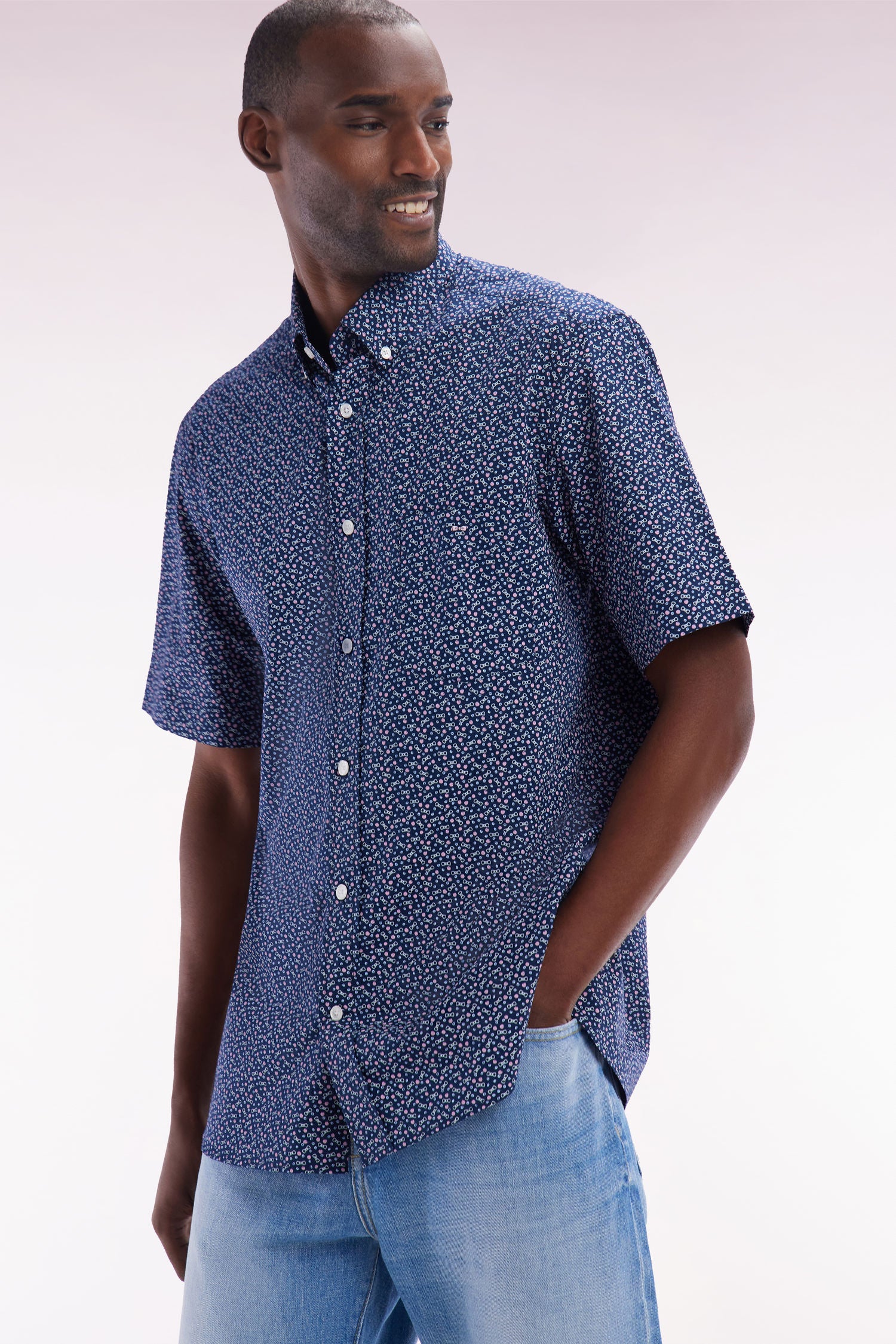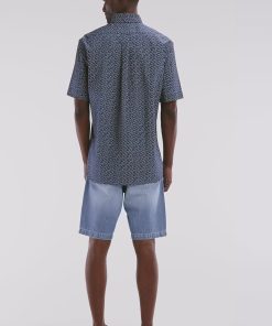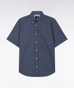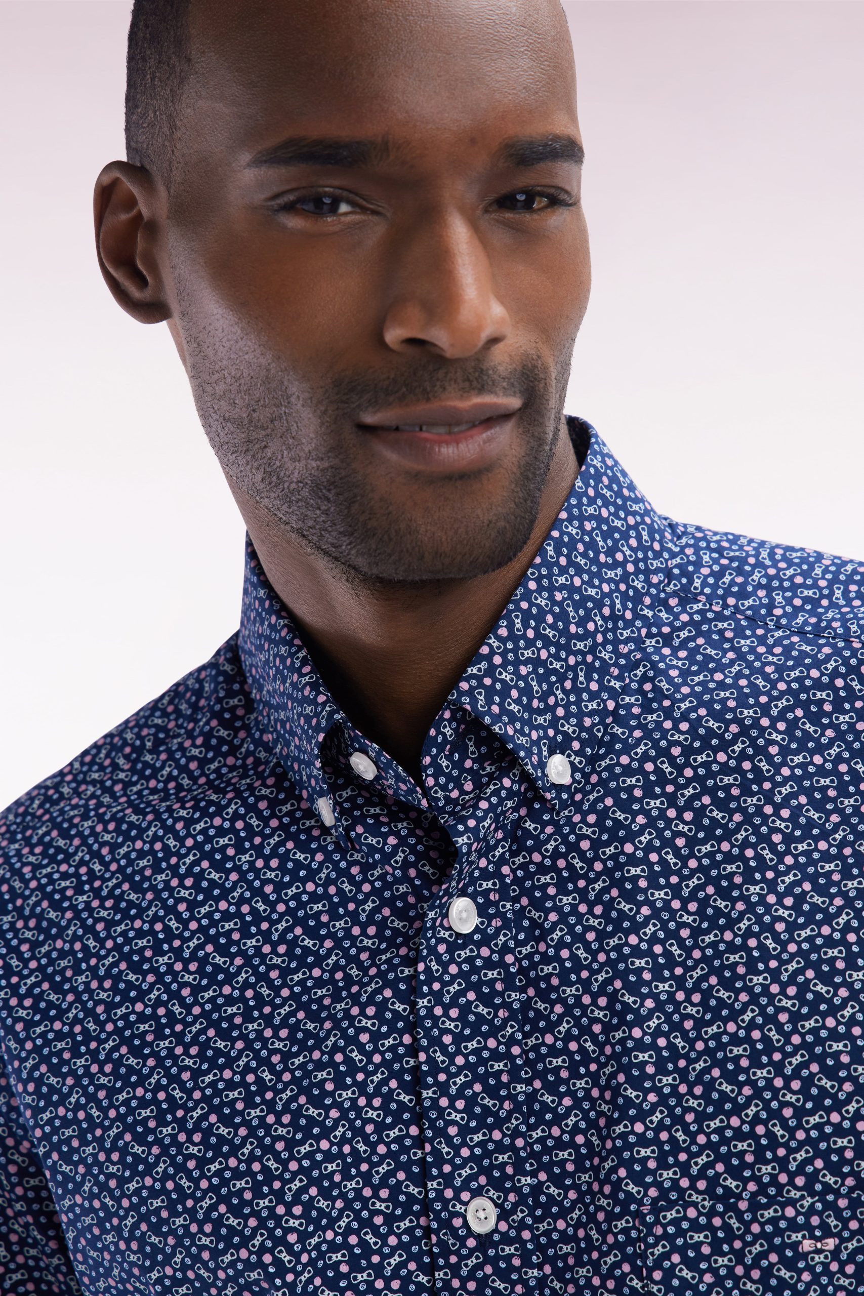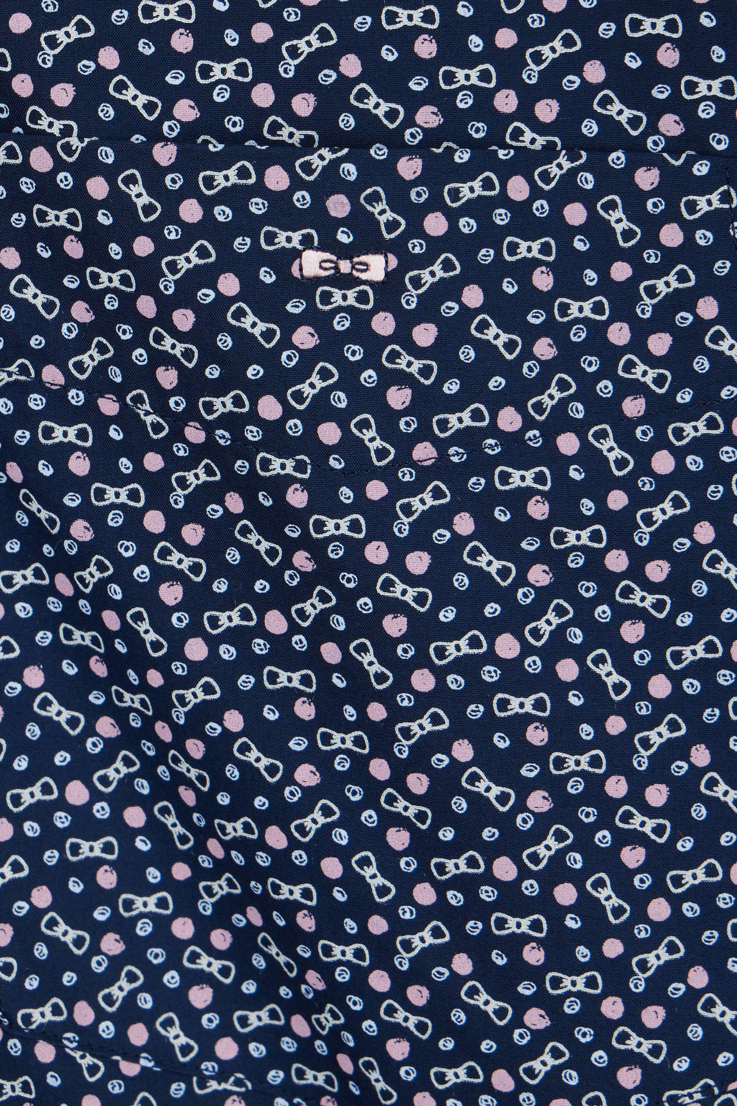 Cette chemise à manches courtes en popeline de coton, déclinée en écru ou marine, arbore un micromotif nœud papillon pour une touche emblématique. Avec sa coupe droite, ses poches plaquées, ses boutons rugby, et ses finitions en twill bleu sur les hirondelles et la bande de propreté, cette chemisette allie élégance et détails signatures typiques de notre Maison française.