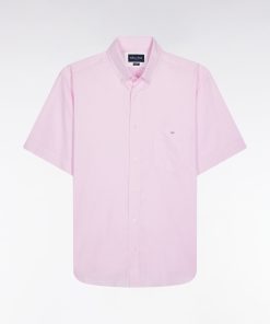 Eden Park Homme Men’s Chemise À Manches Courtes Rose Coupe Droite