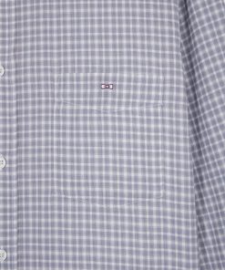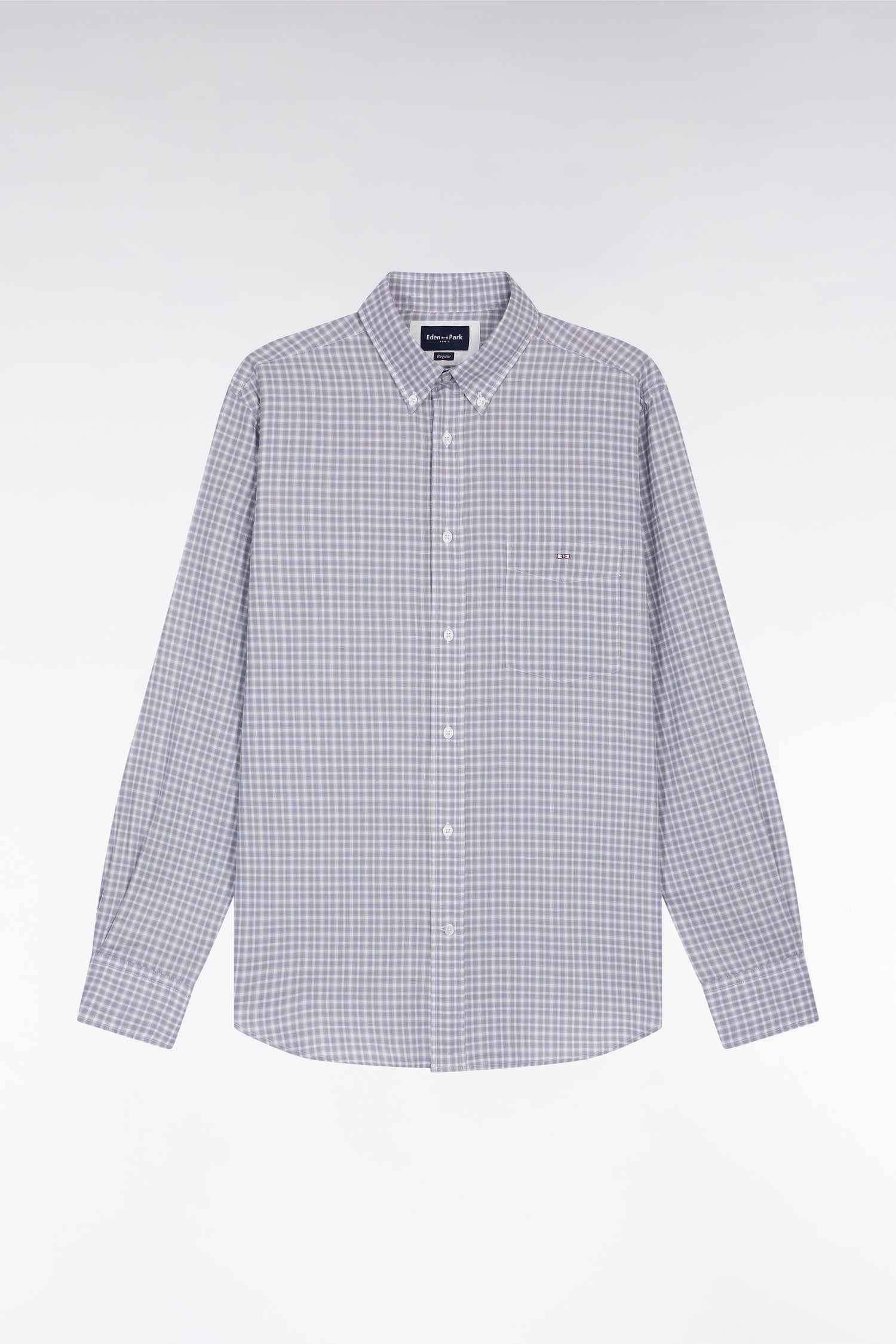 Eden Park Homme Men’s Chemise En Coton À Carreaux Gris Coupe Droite